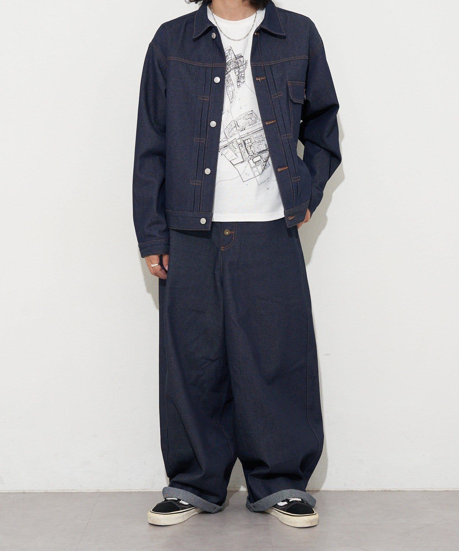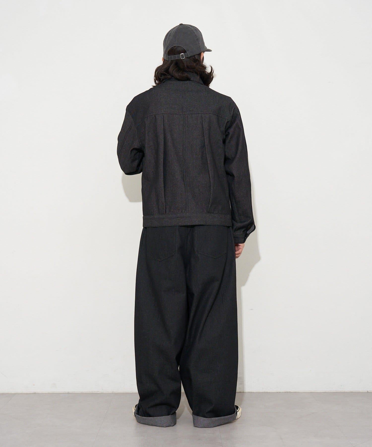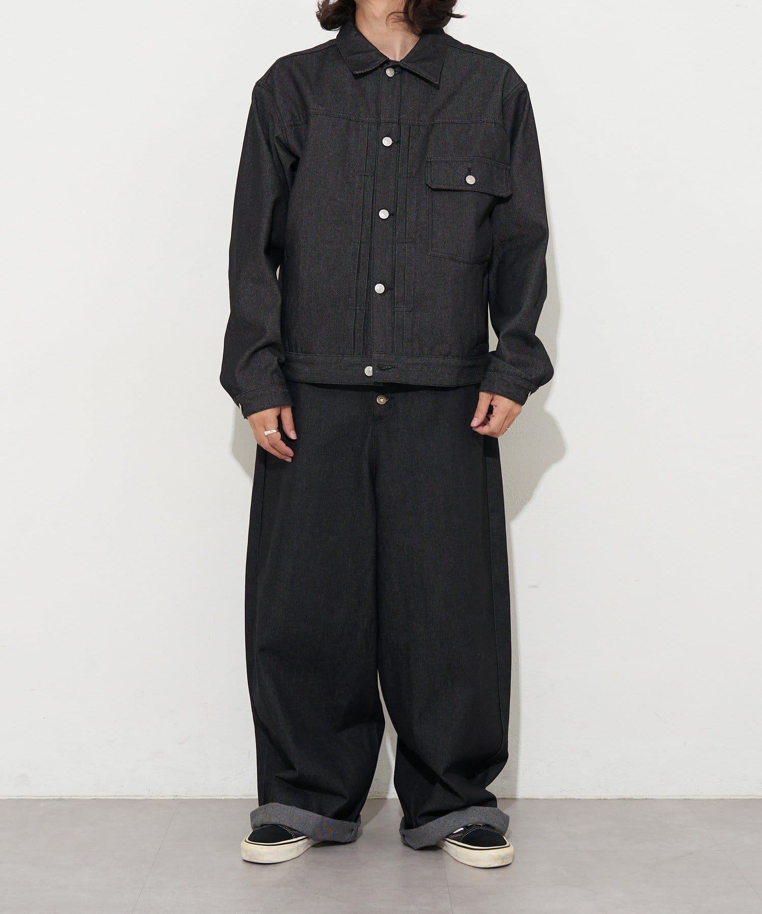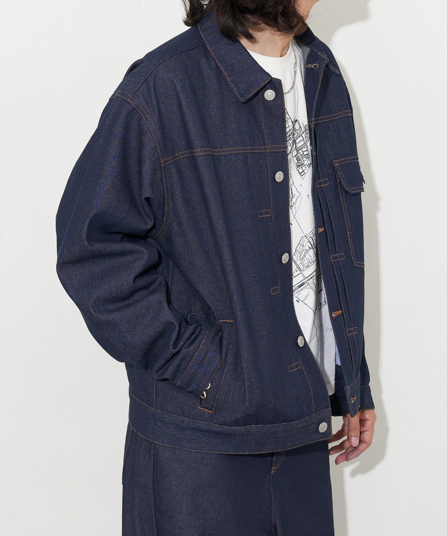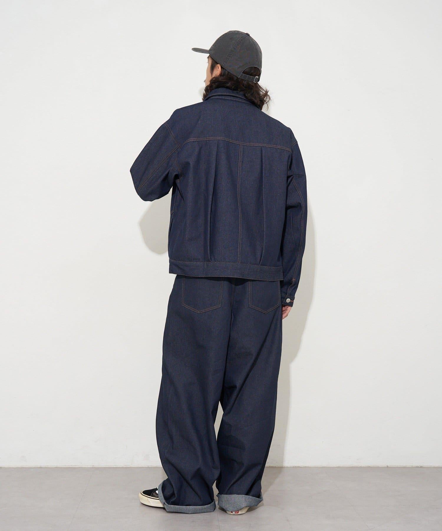 厚實的牛仔面料經過水洗,呈現出破舊的外觀和質感。