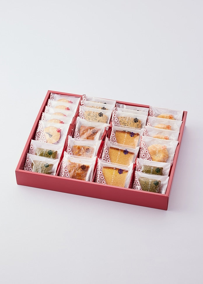 內容或固體含量和總數量 25塊(3塊瓦罐三號卡蘇特拉,3塊栗子曲奇,4塊綠茶曲奇,4塊核桃安之派,5塊紅薯加麗餅,6塊黑芝麻薄片曲奇),重量:約960克,盒子尺寸:長307×寬385×高57mm