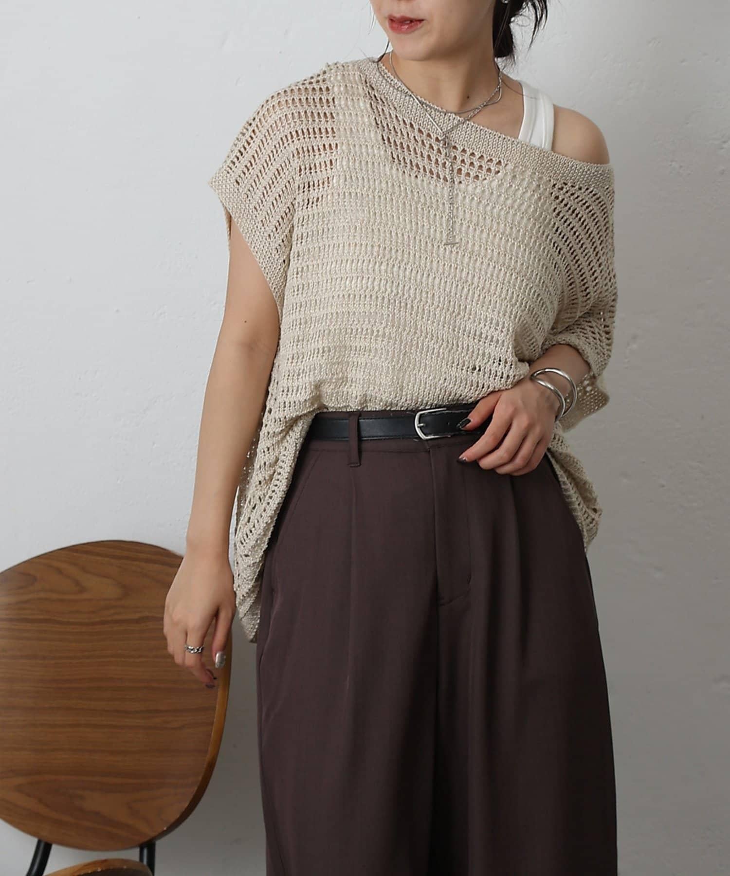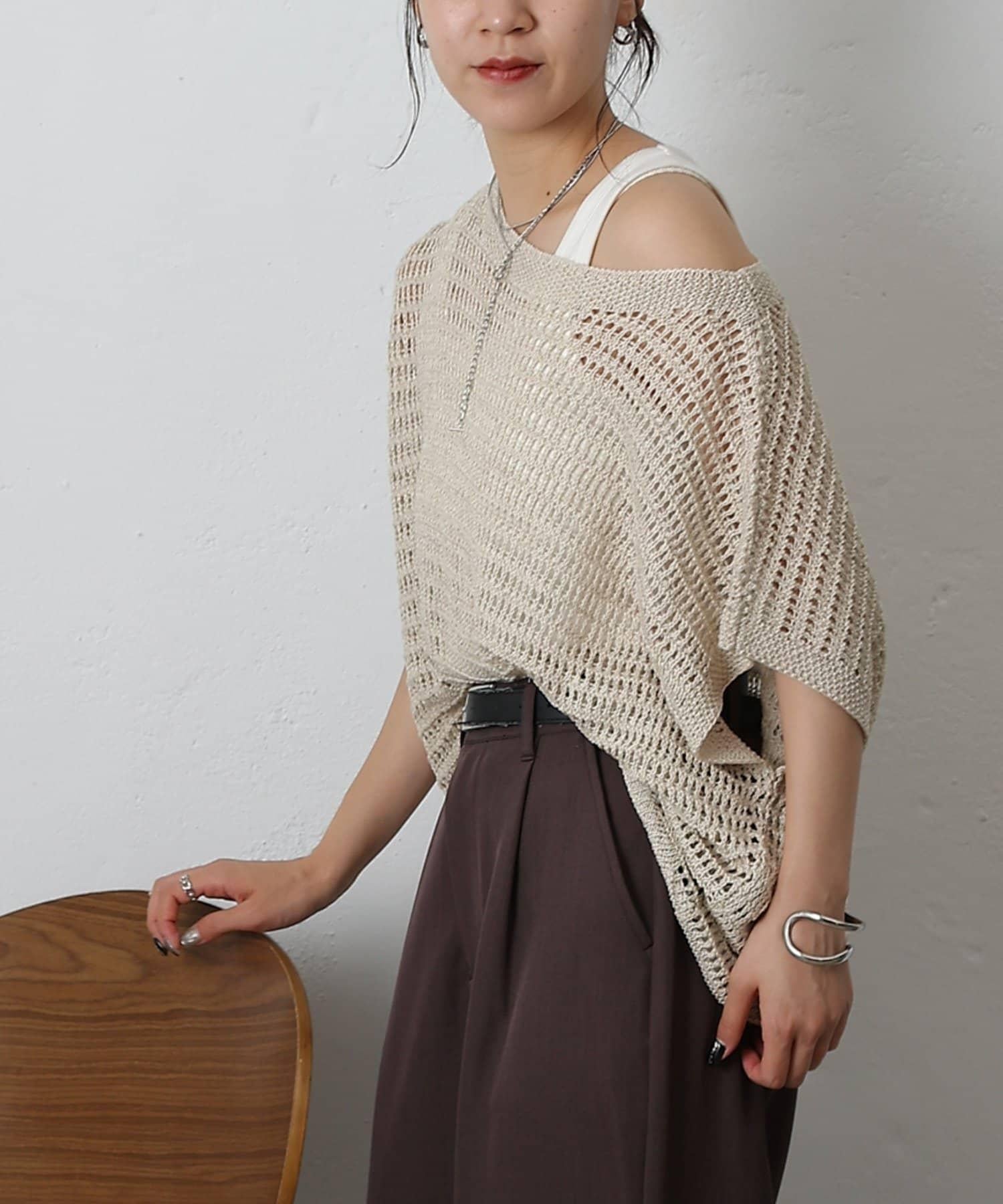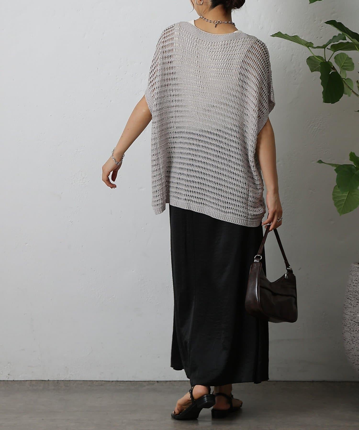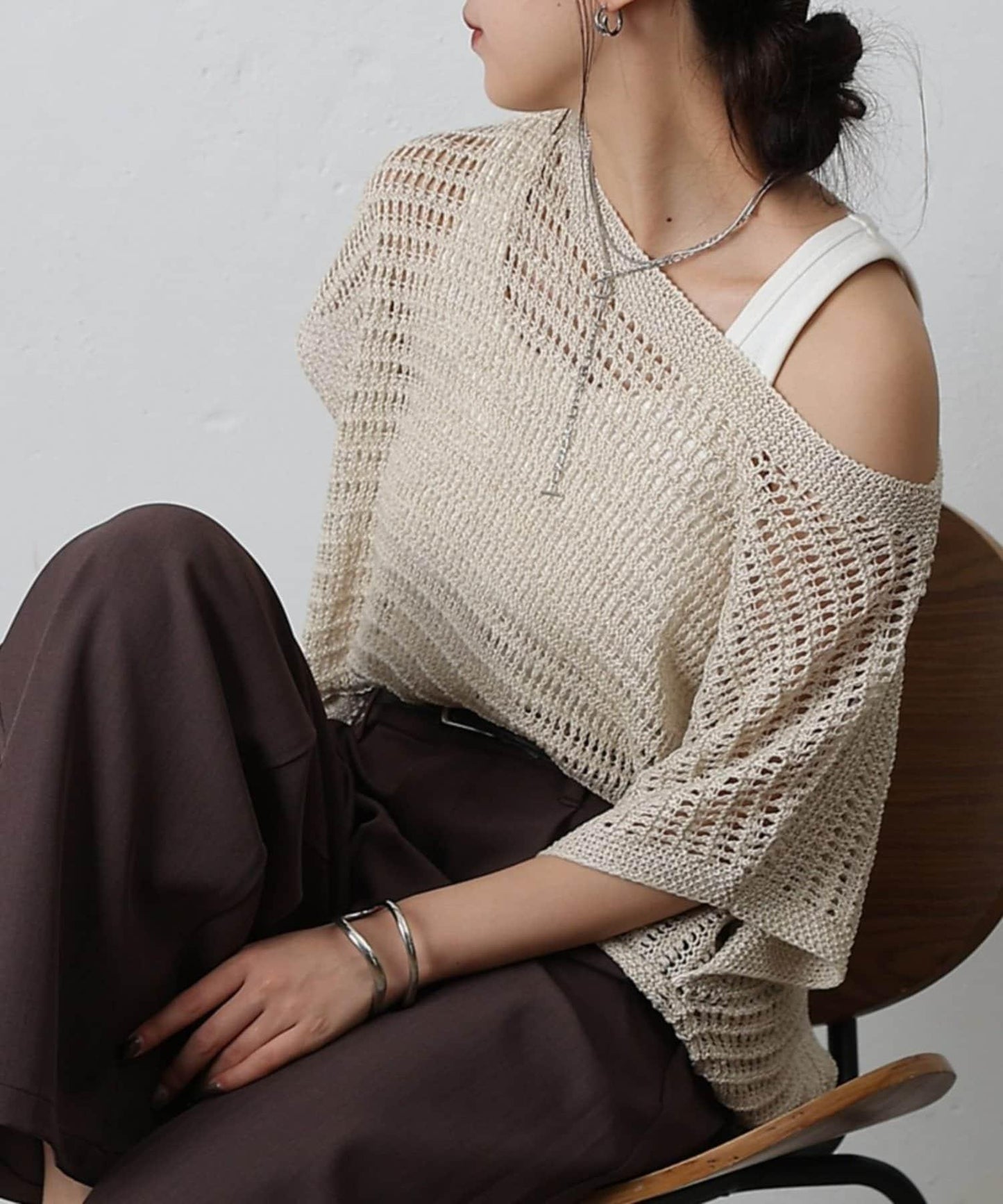 這款網眼針織套頭衫是您日常搭配的時尚之選。針織圖案給人一種輕鬆的感覺,並賦予其成熟的風格。透氣的網眼針織衫看起來很酷,非常適合即將到來的季節。它可以疊穿在背心或吊帶衫上,露出健康的肌膚,也可以疊穿在連衣裙或襯衫上,打造優雅的疊穿風格。肩部設計略低於肩部,遮住手臂,讓你看起來更苗條。自然的顏色充分利用了天然材料的質感,易於搭配。