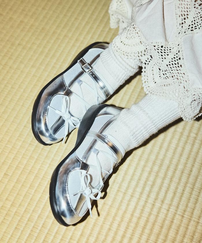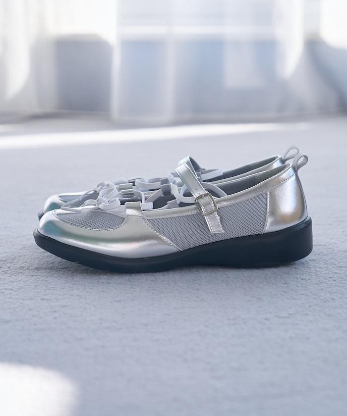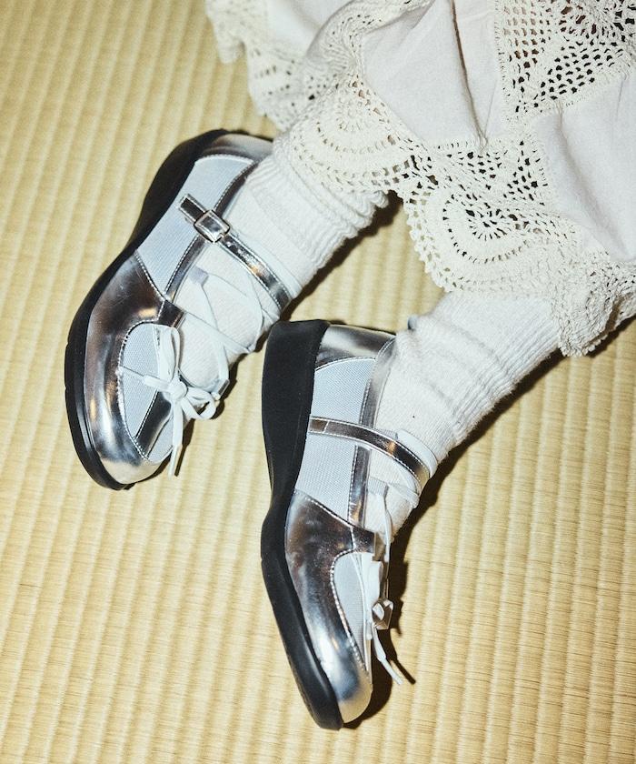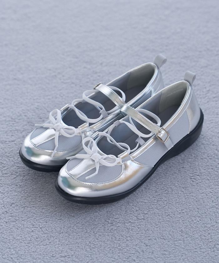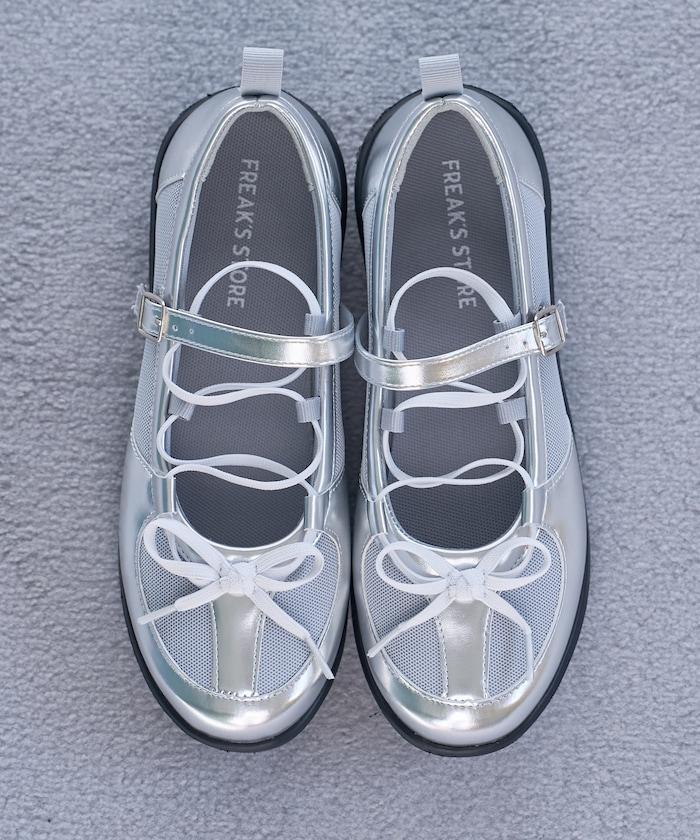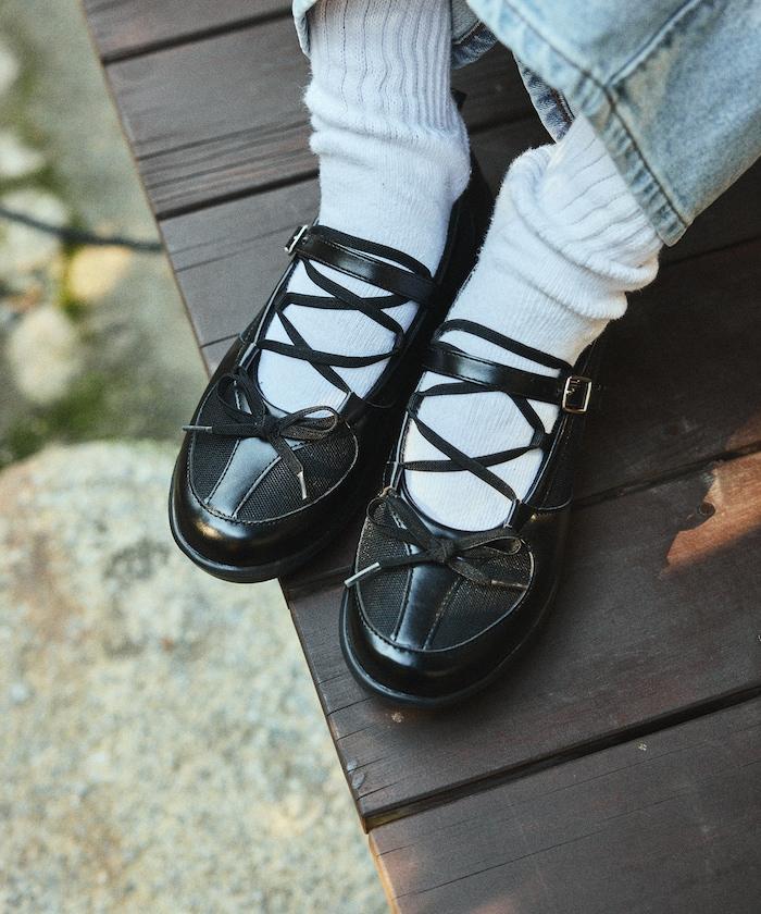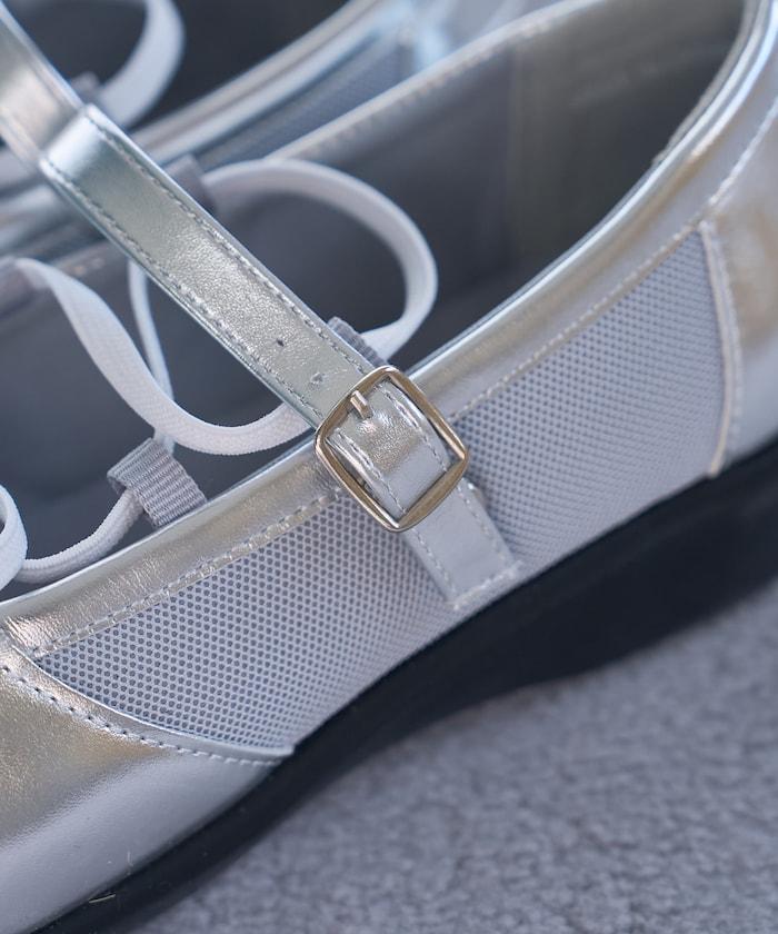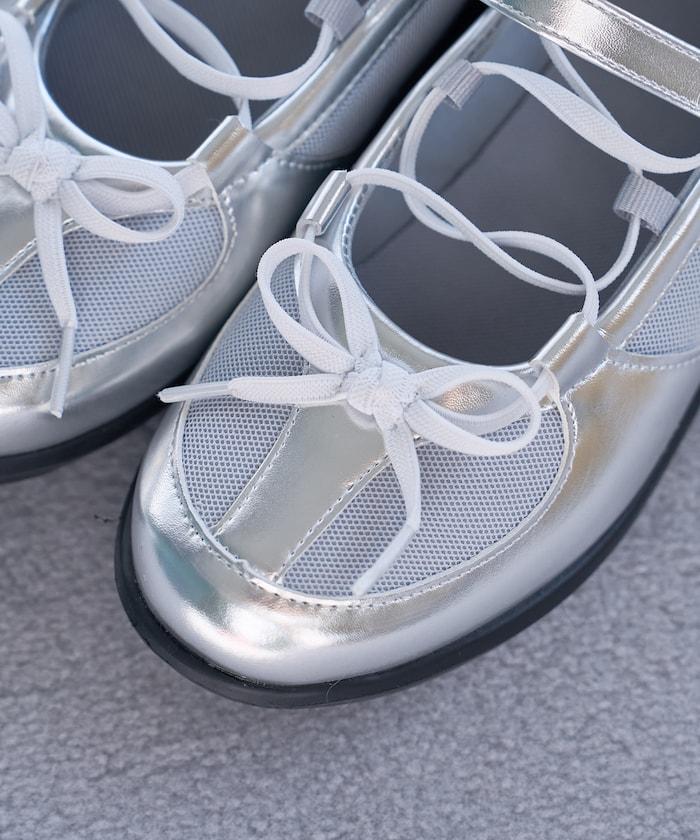 繫帶網眼芭蕾鞋