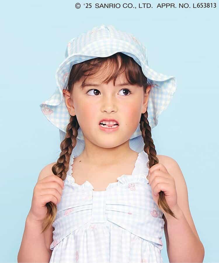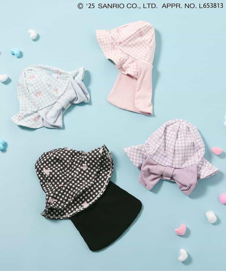 《美樂蒂》・《庫洛米》格子絲帶帶遮陽帽