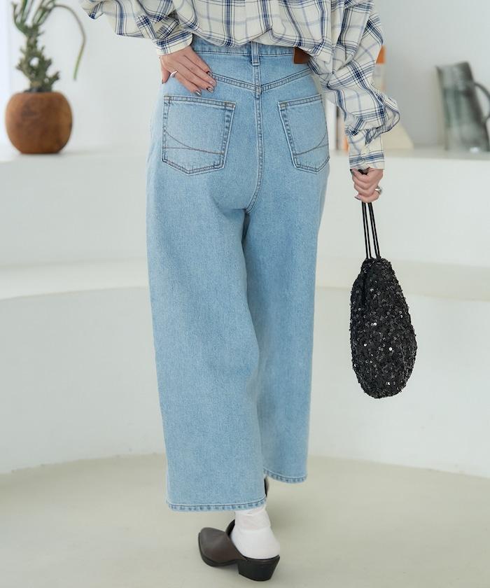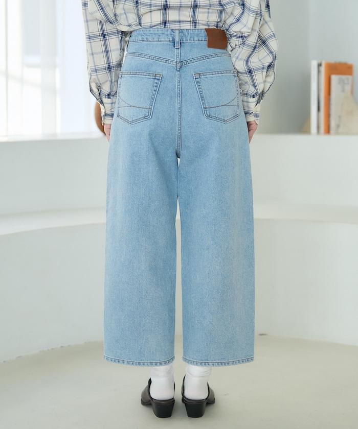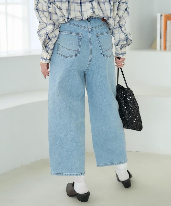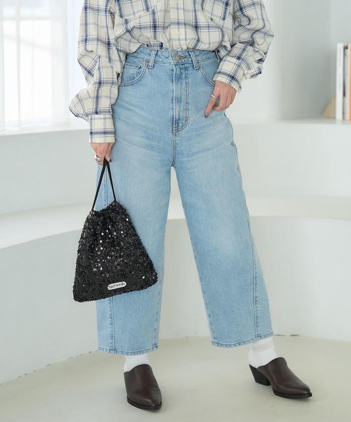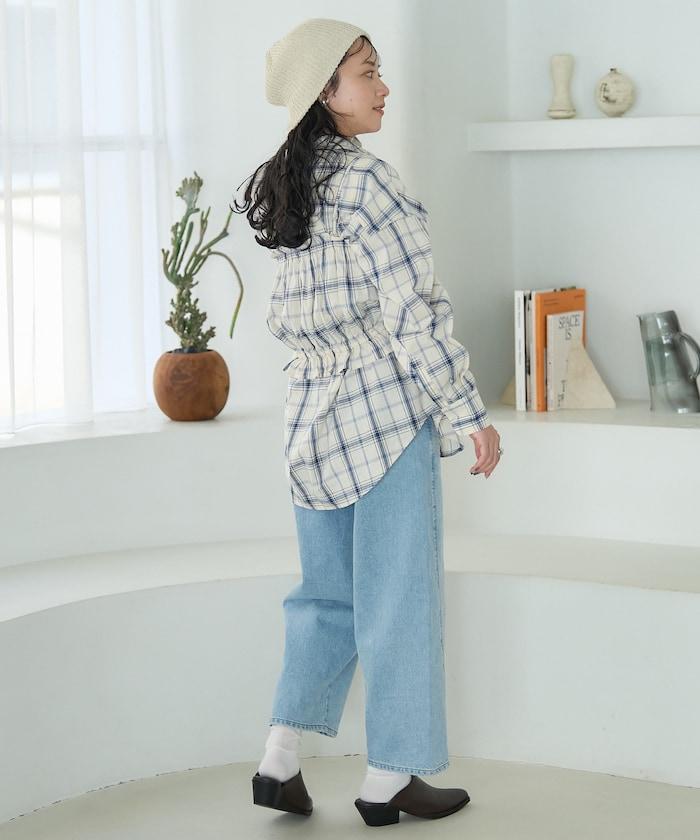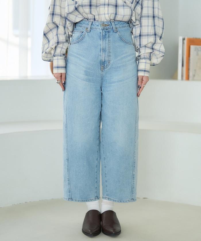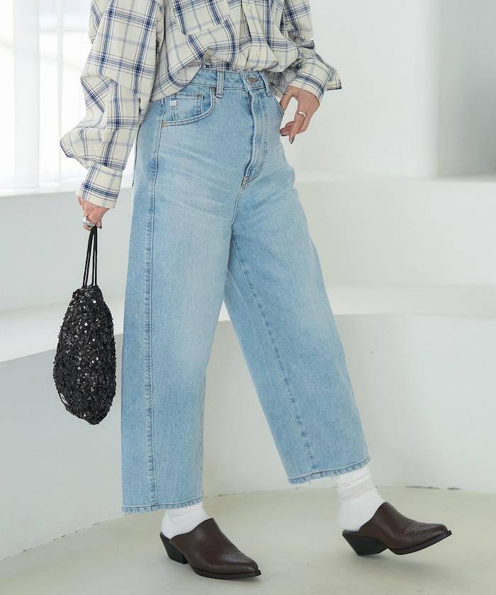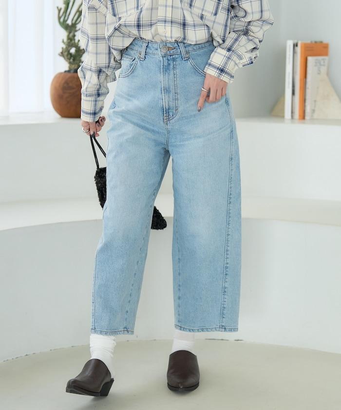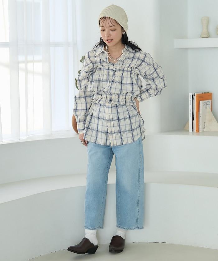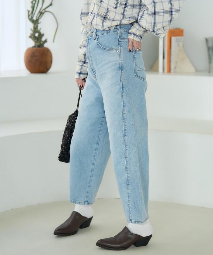 與寬鬆的腰身相比,錐形輪廓從下襬開始逐漸變細,露出腳踝,使整個身體呈現出纖細的效果。