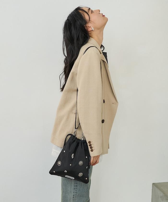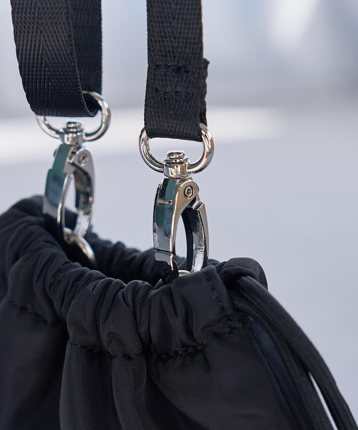 包帶可拆卸,既可作為拉繩包使用,也可作為單肩包使用。