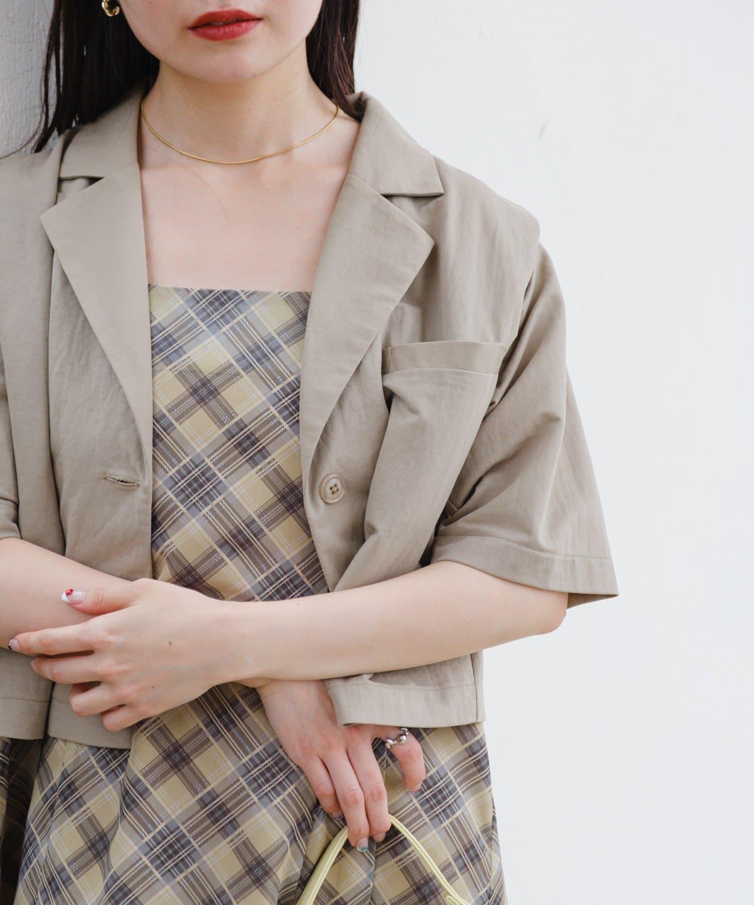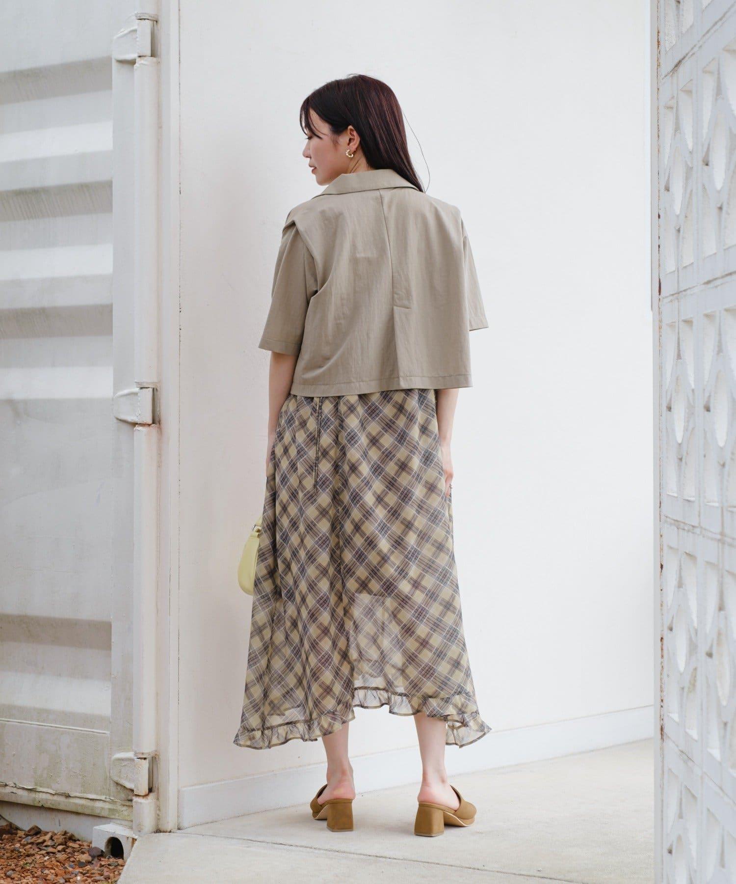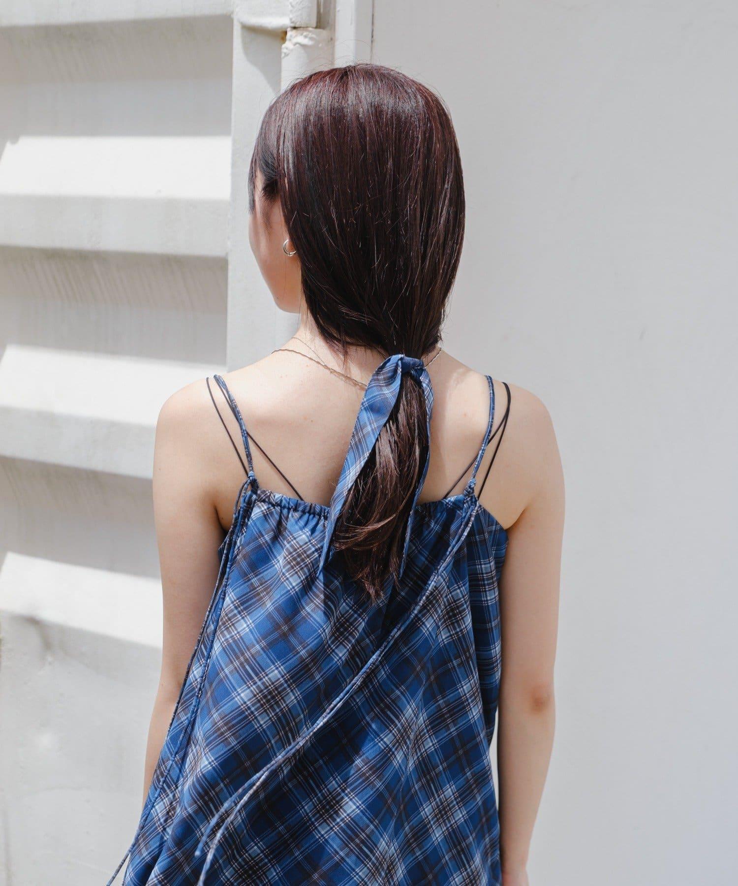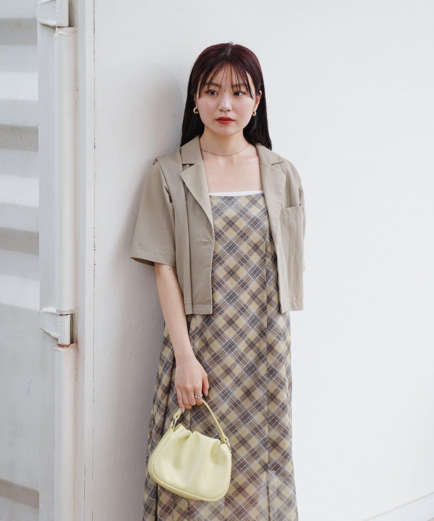 【肩帶可調節/內襯附】透視格紋不對稱連衣裙