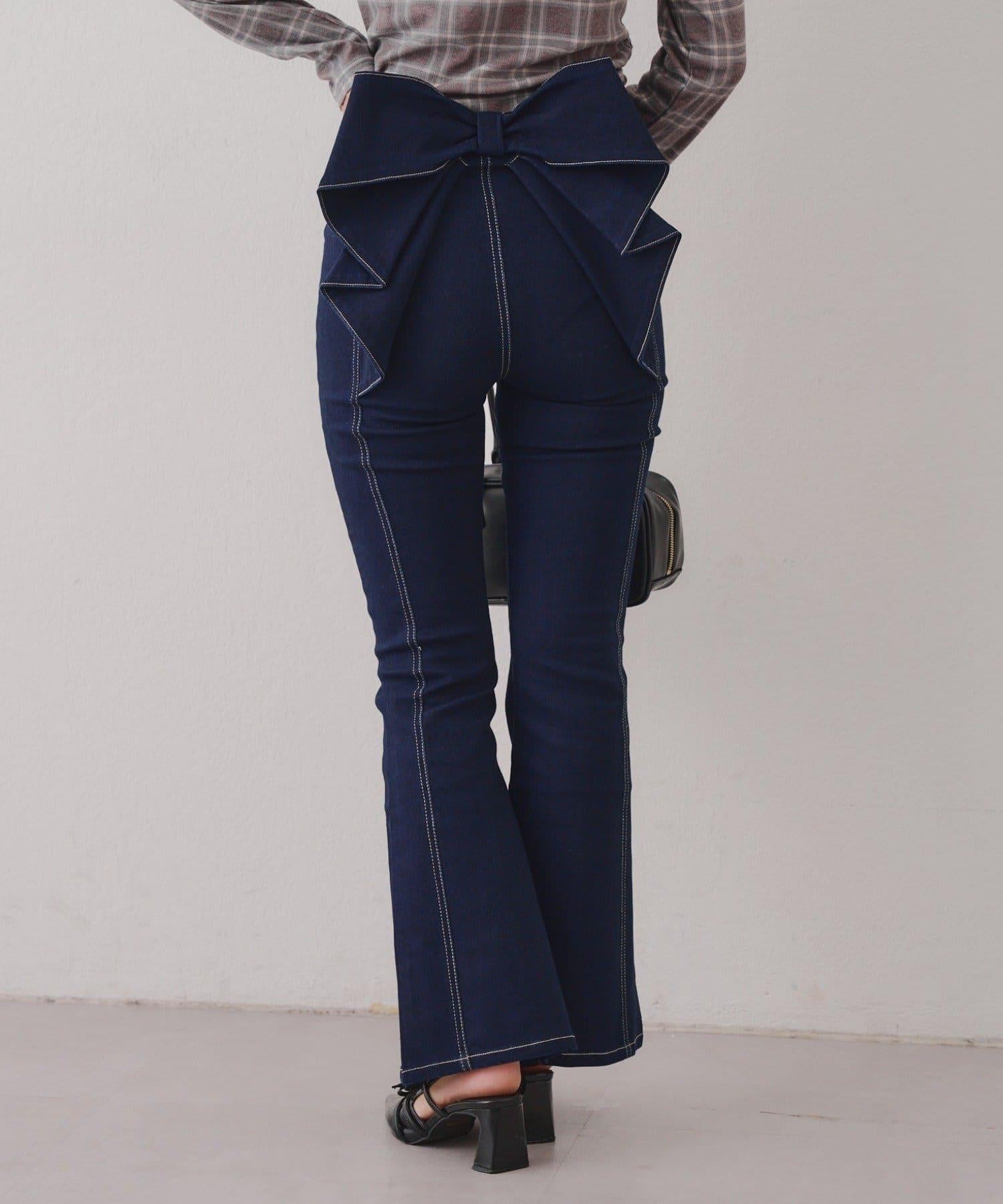 【背面也很可愛】蝴蝶結牛仔喇叭褲