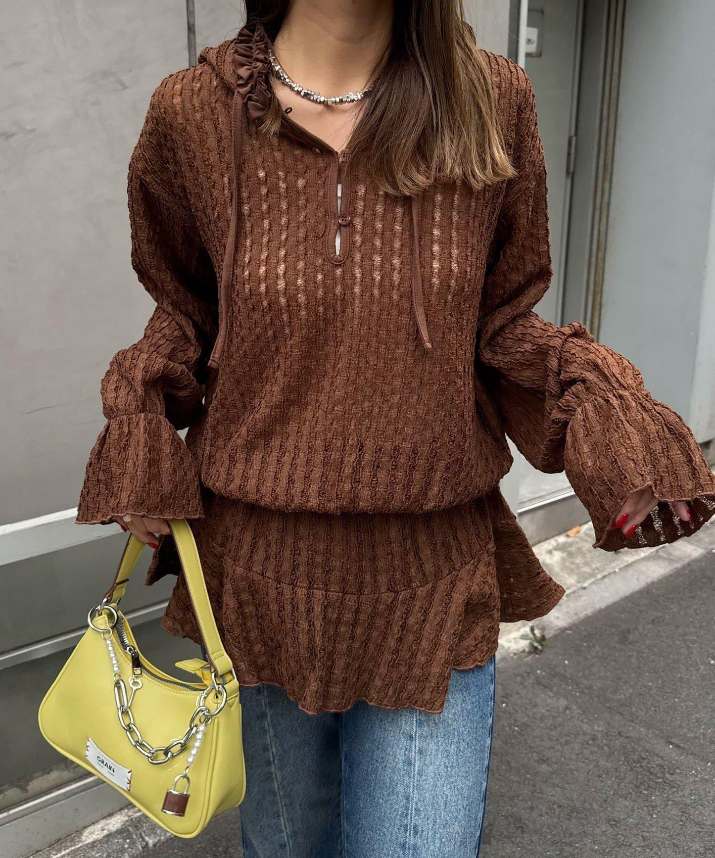 連帽衫腰部收緊,袖子蓬鬆,平衡精緻。