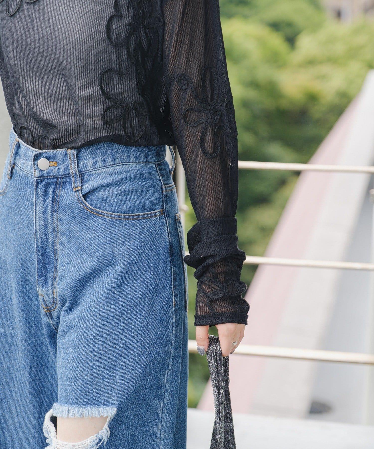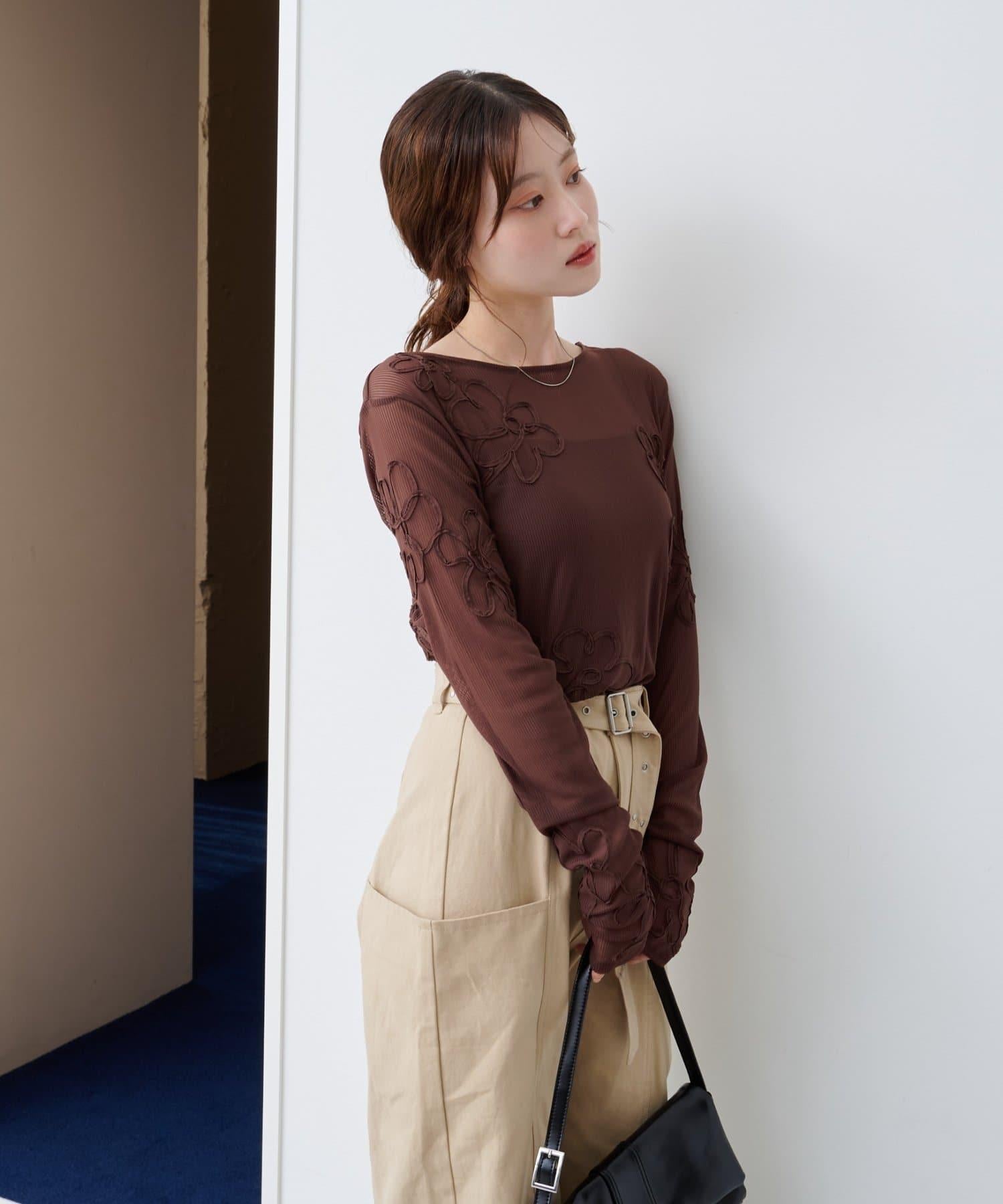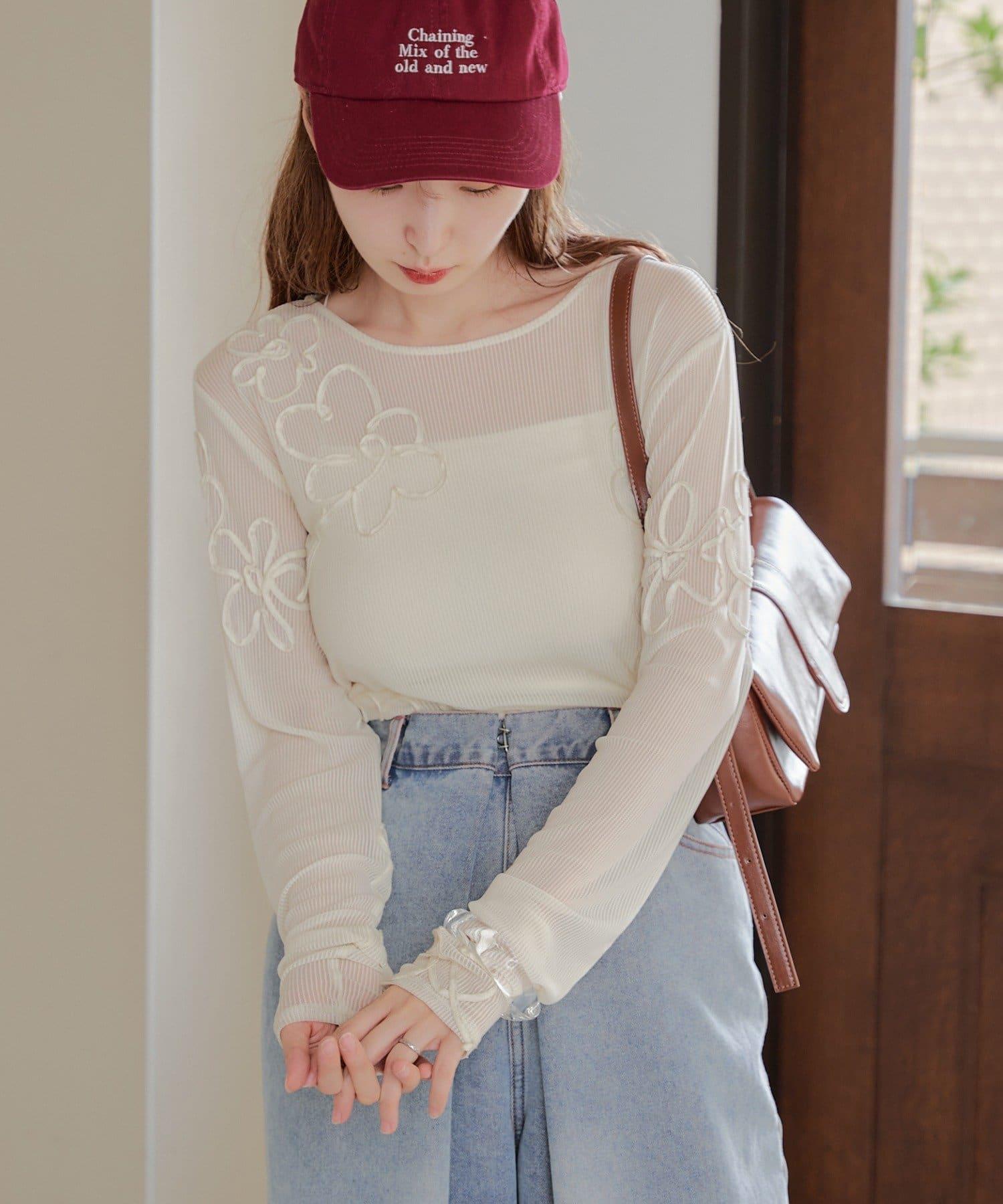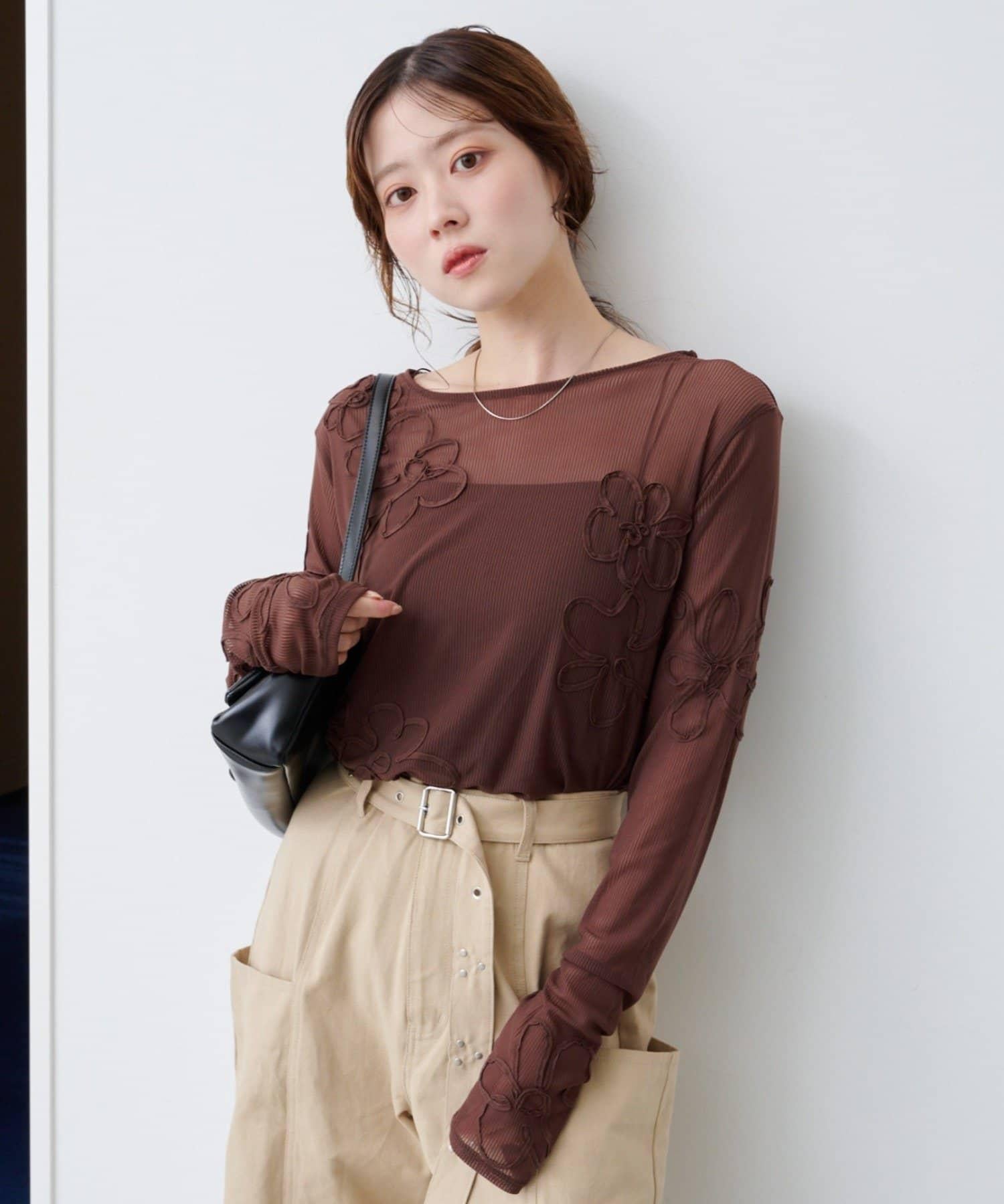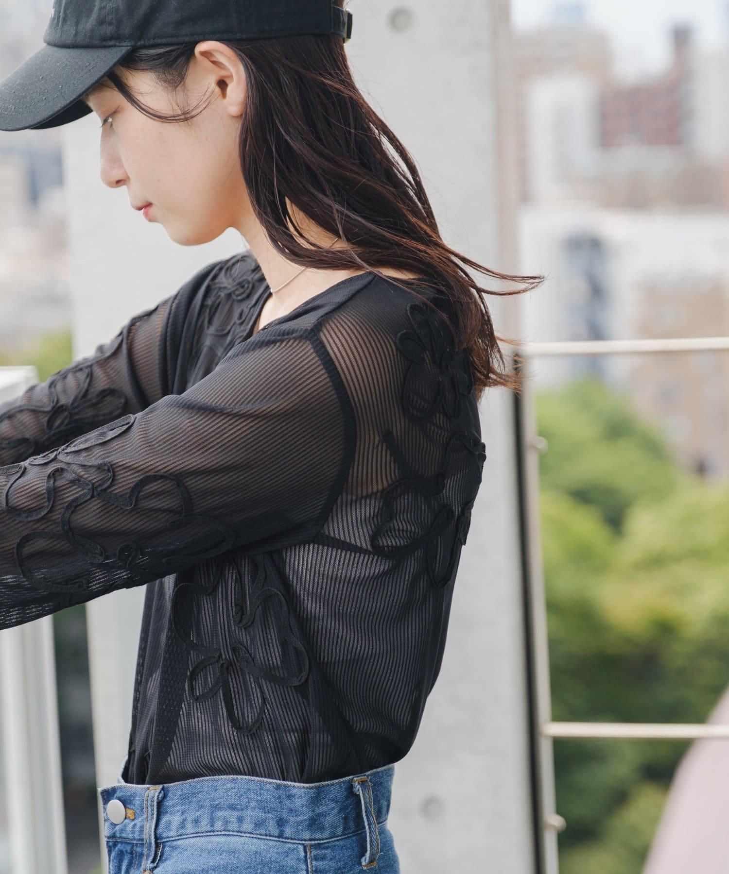 透視上衣,優雅的花朵設計,恰到好處的透明度。