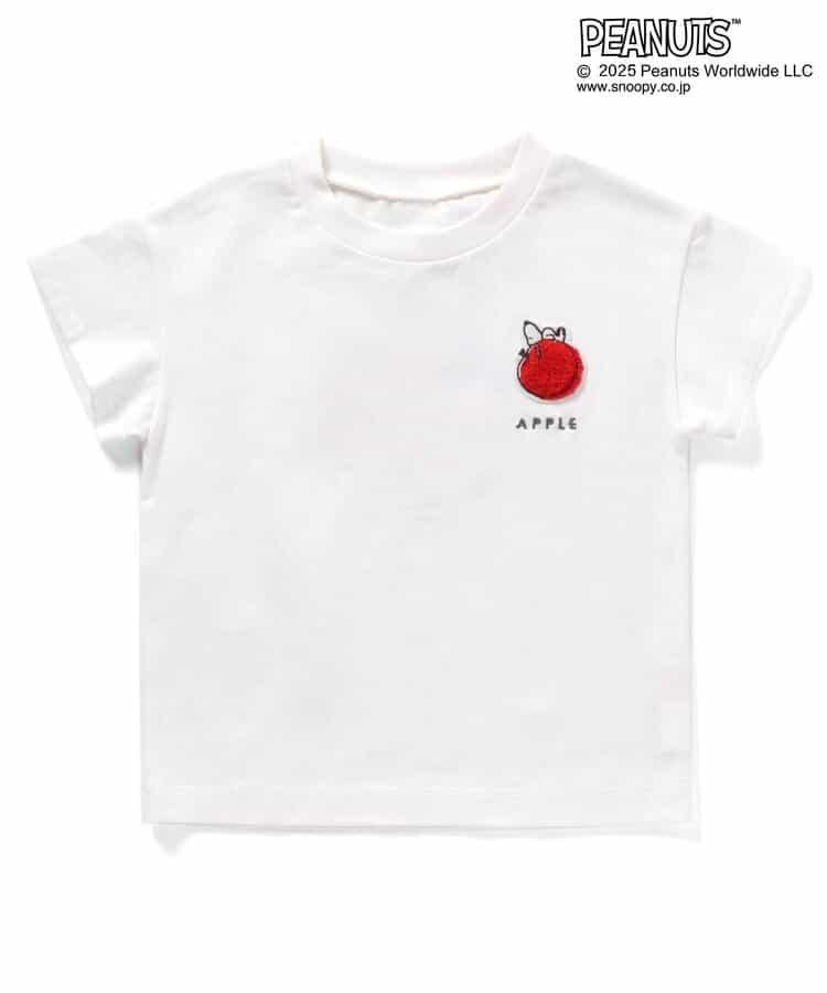 胸前是可愛的史努比與不同姿態的蘋果、香蕉和橘子,並以一個薩格拉徽章作為單點◎。