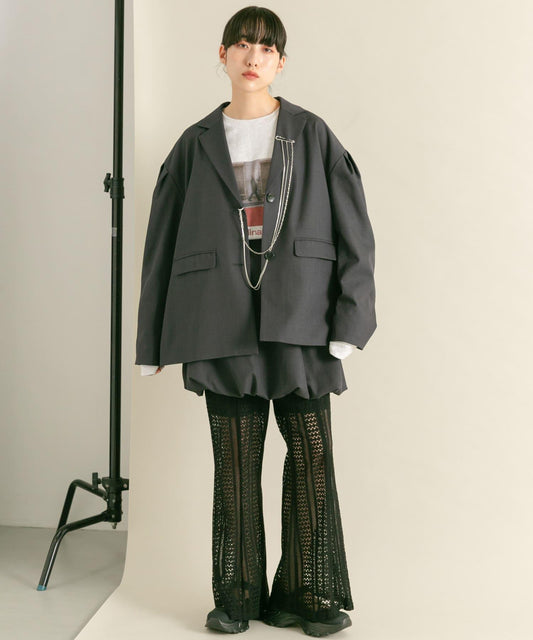乍一看,這是一件基本的剪裁夾克,但通過添加可拆卸的袖子荷葉邊,我們營造出了浪漫的氛圍。夾克由木質材料製成,自然給人一種時尚的感覺。它的尺寸不會過大,因此很容易與女士單品搭配。