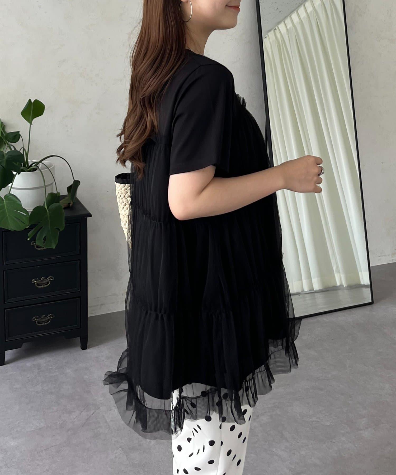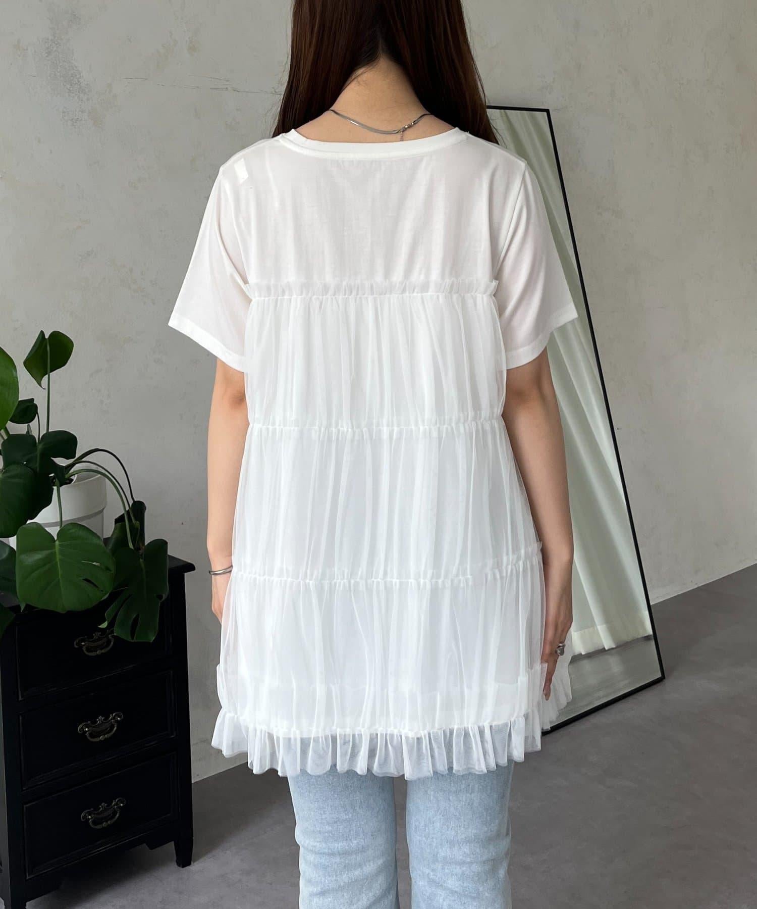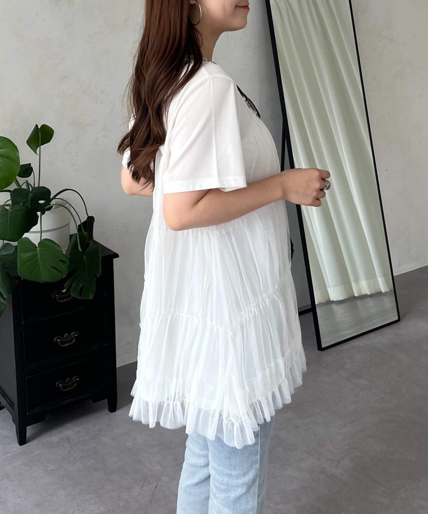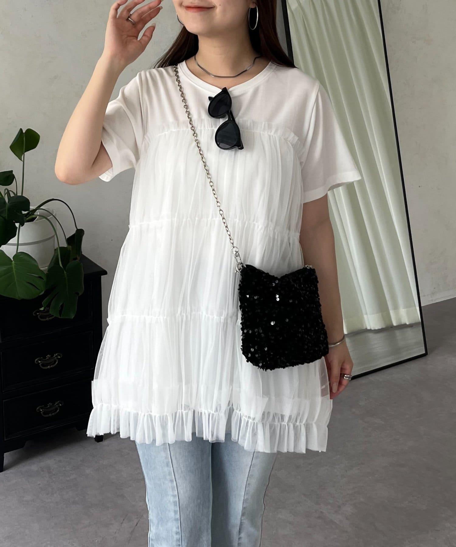 薄紗層疊設計的 T 恤,盡顯迷人風采。
