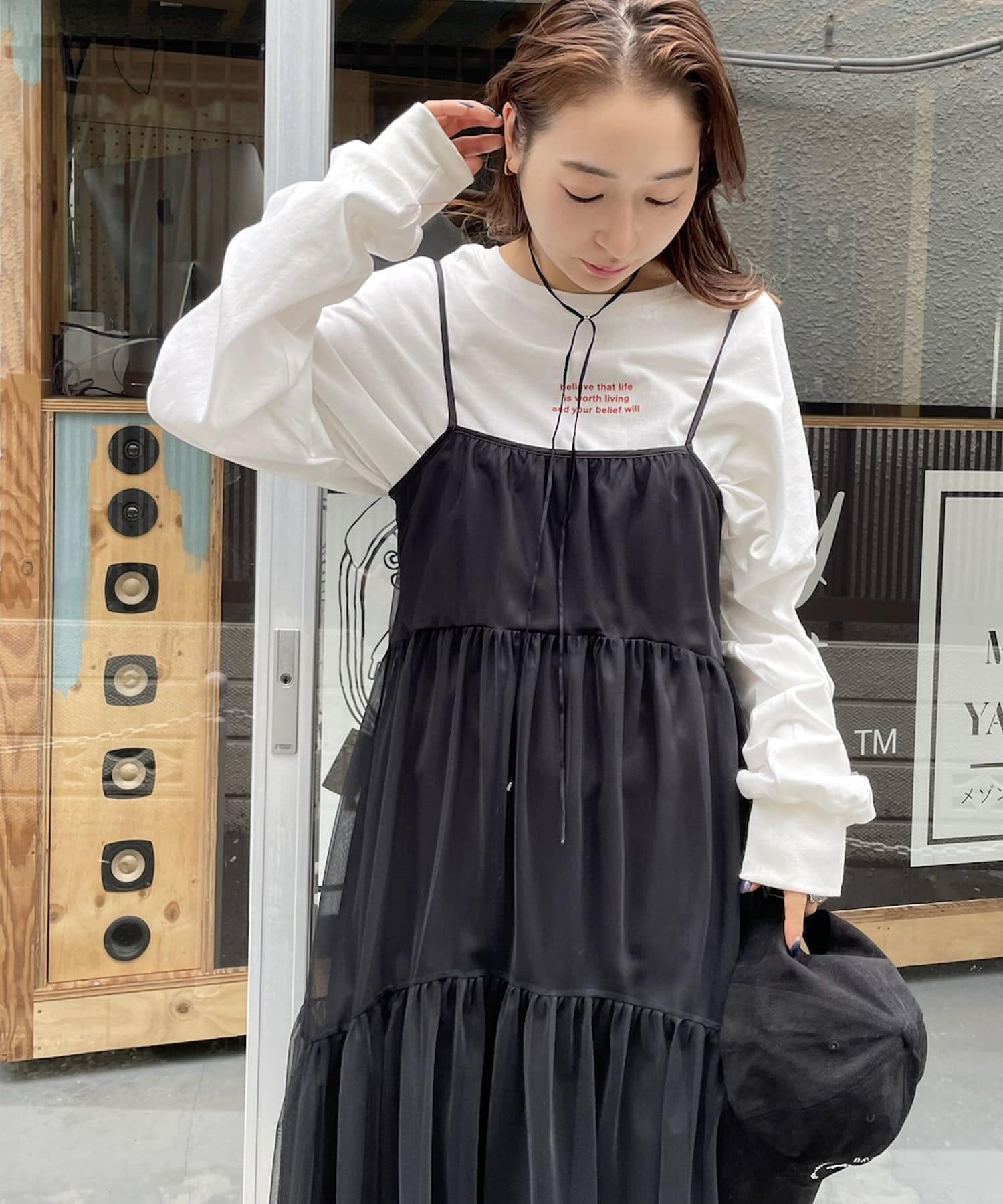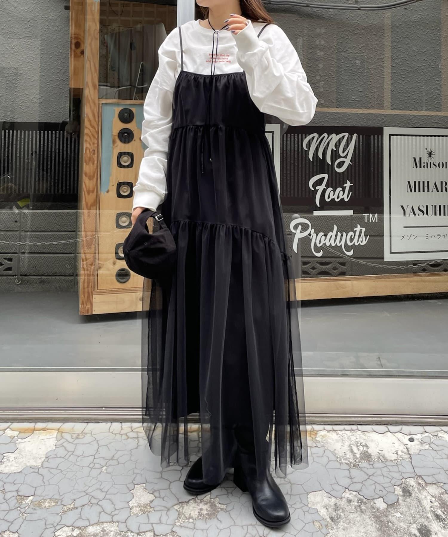 這款吊帶連衣裙採用柔軟的薄紗面料製成,裙襬隨著您的行走而擺動!
