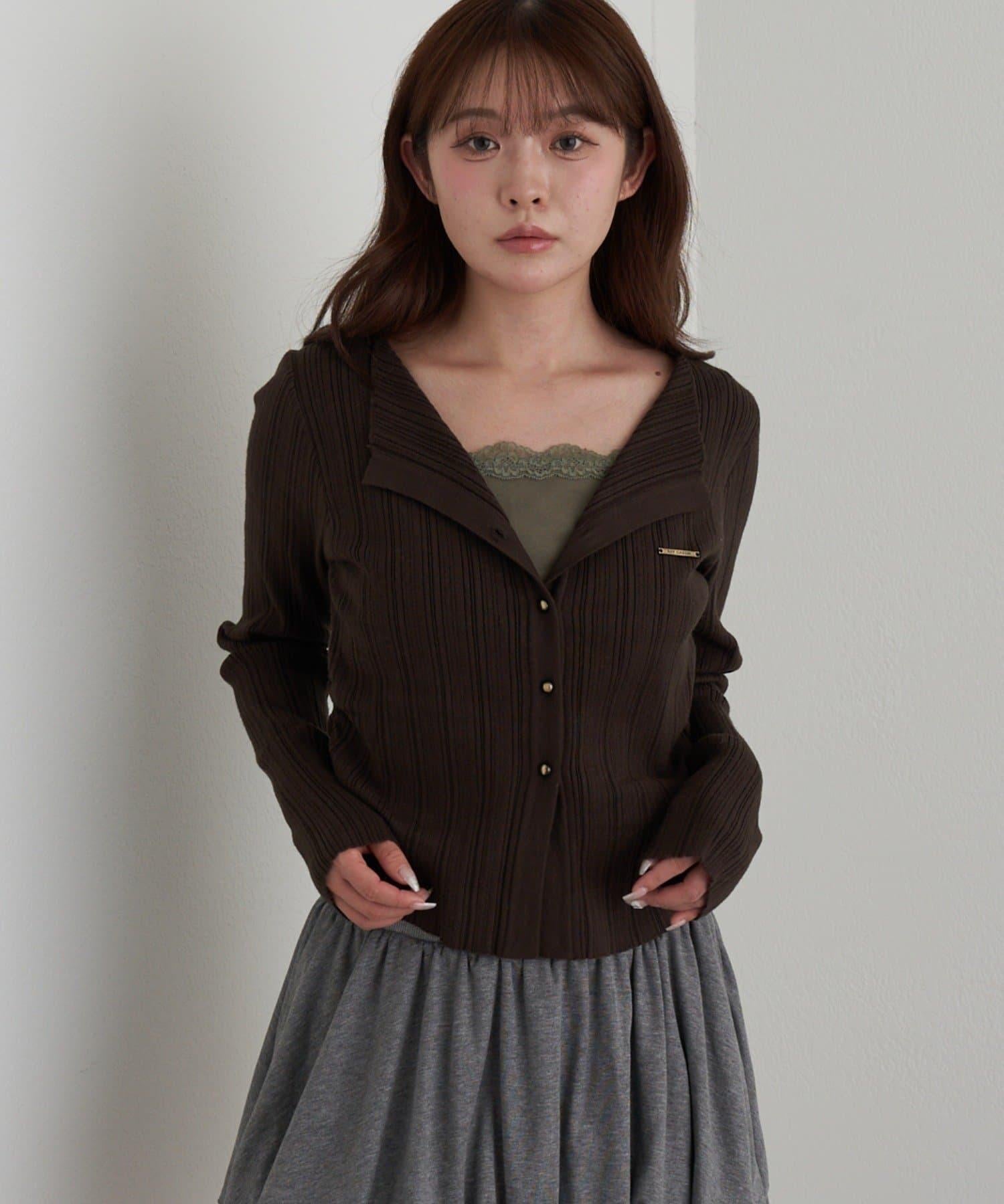 蕾絲拼接前開釦針織衫