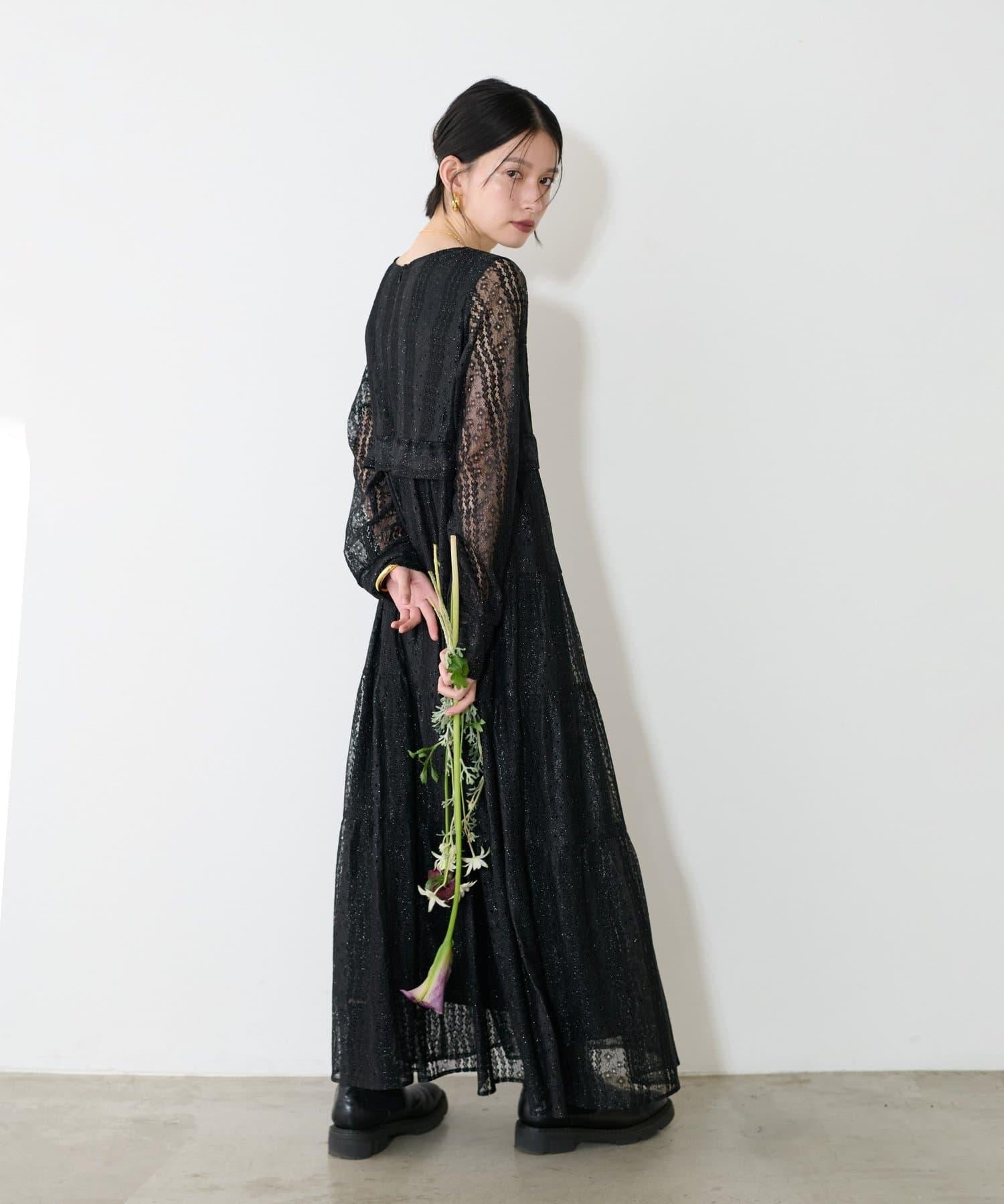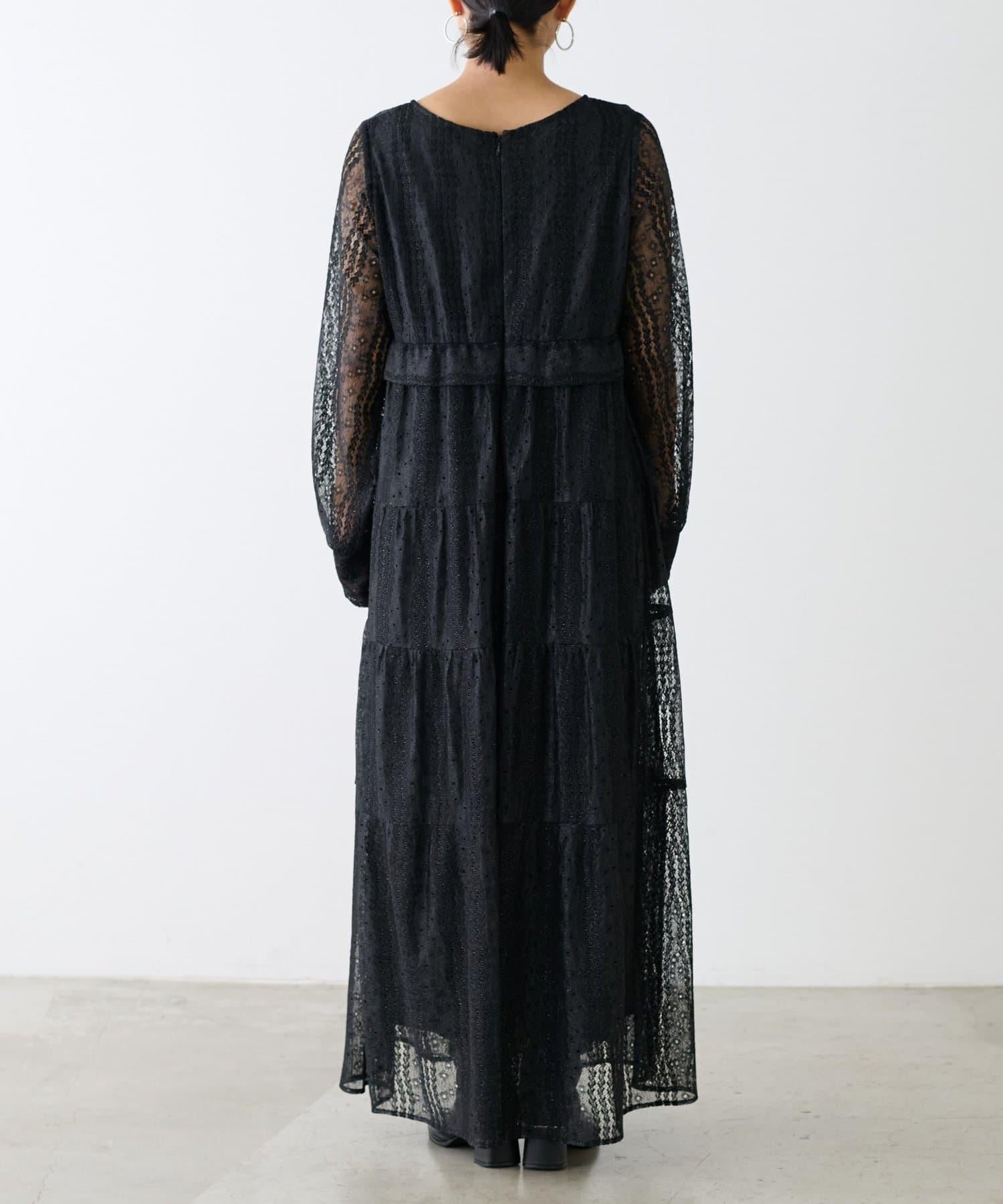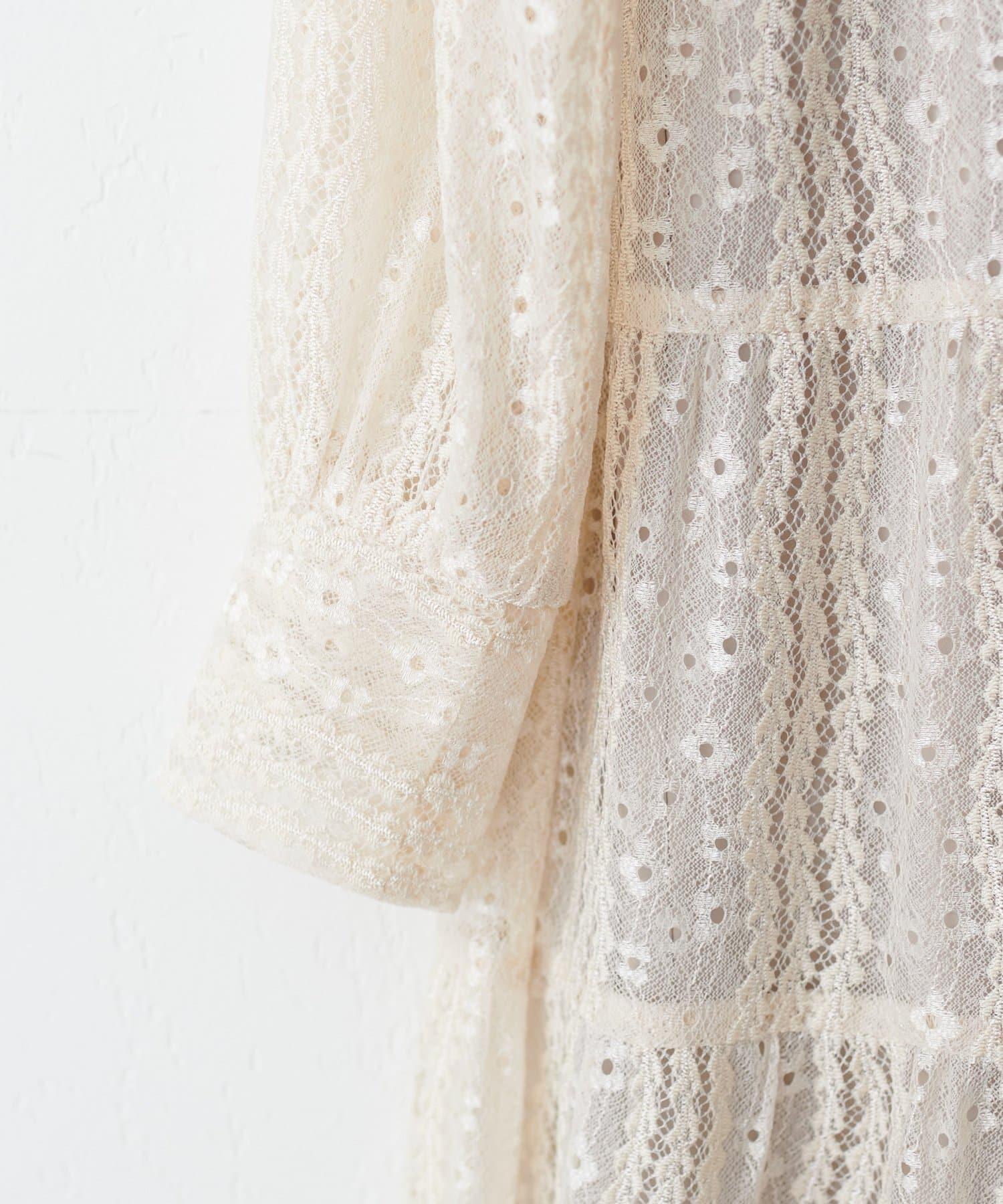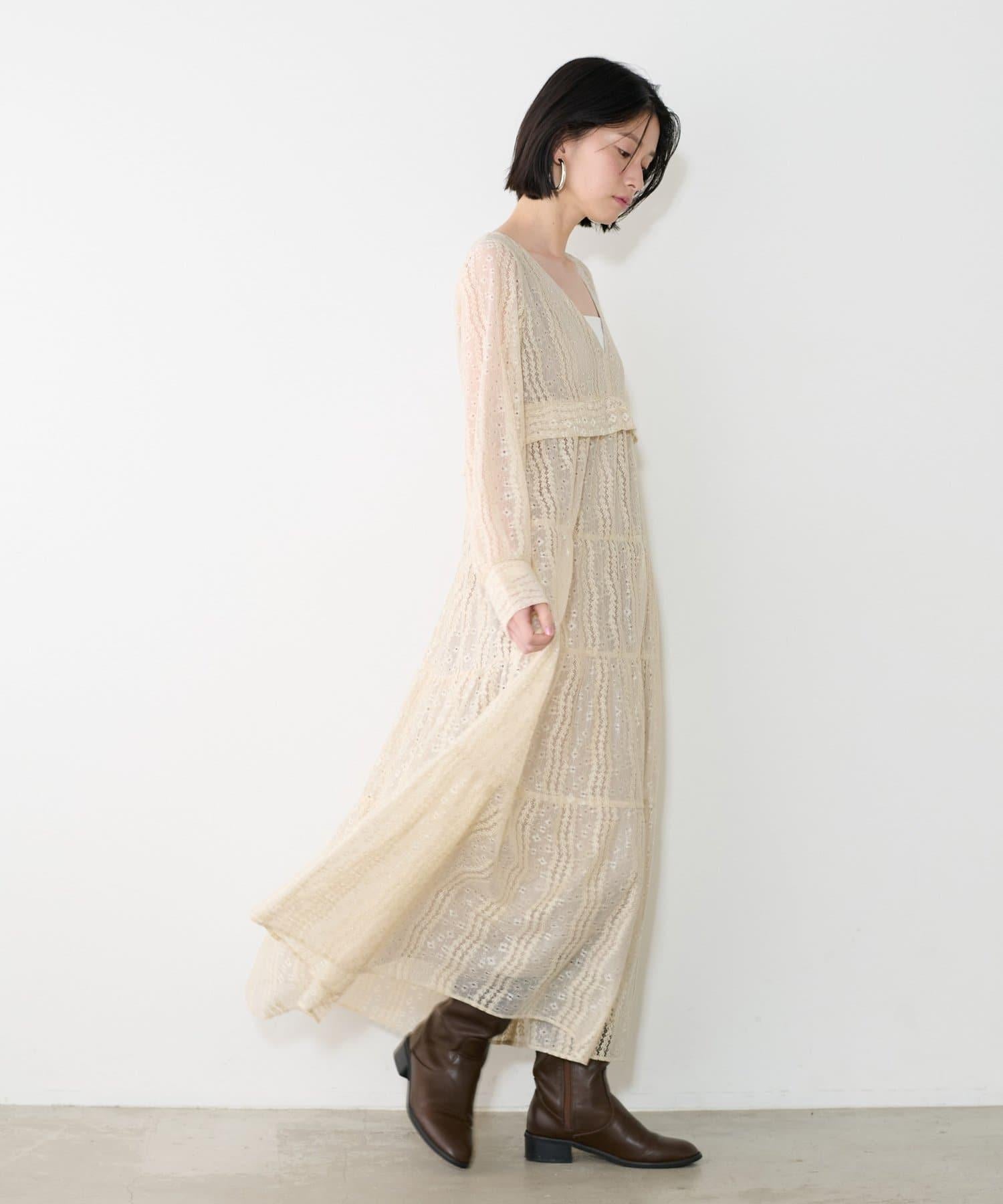 連身長裙,精緻的蕾絲設計令人印象深刻。