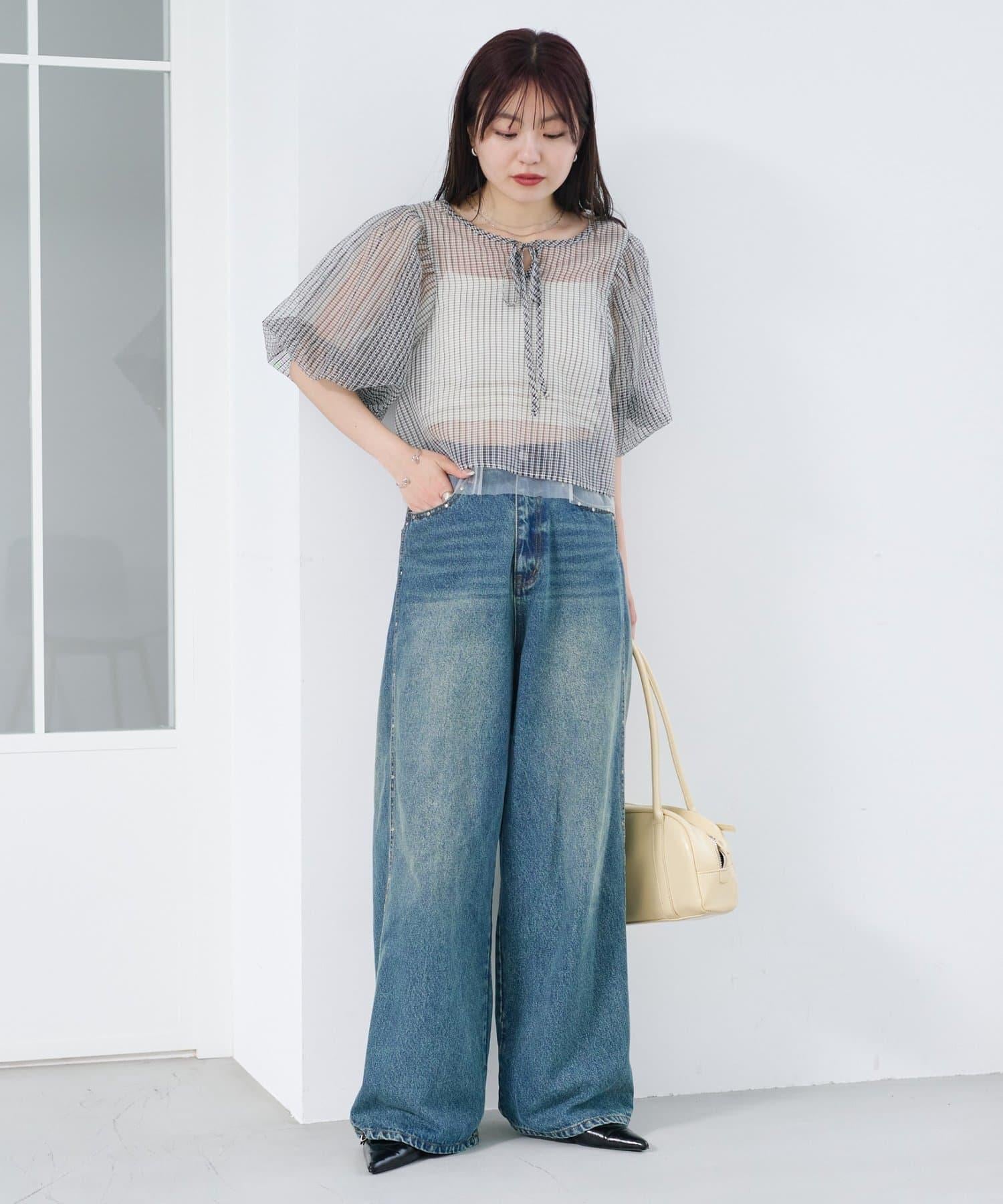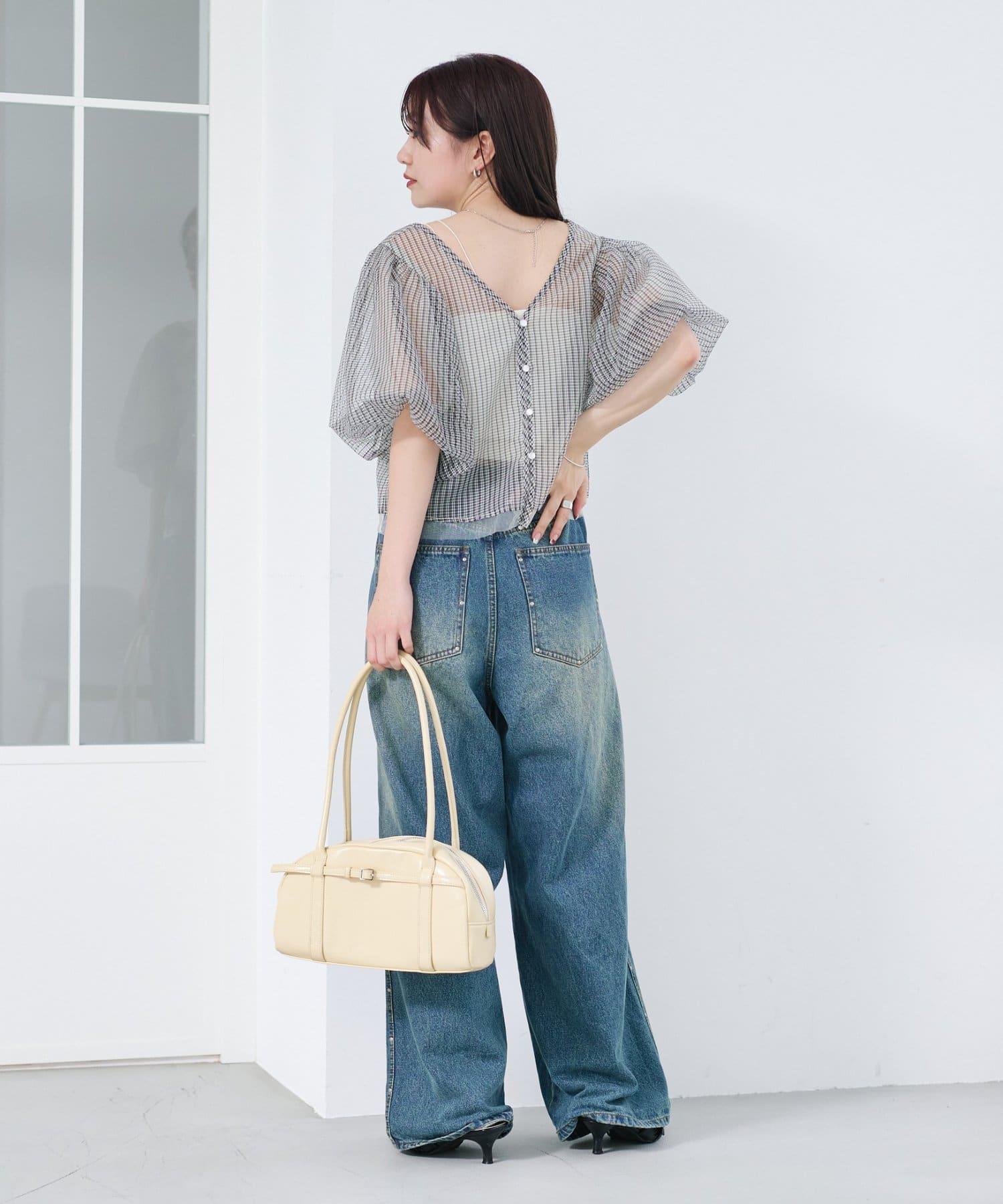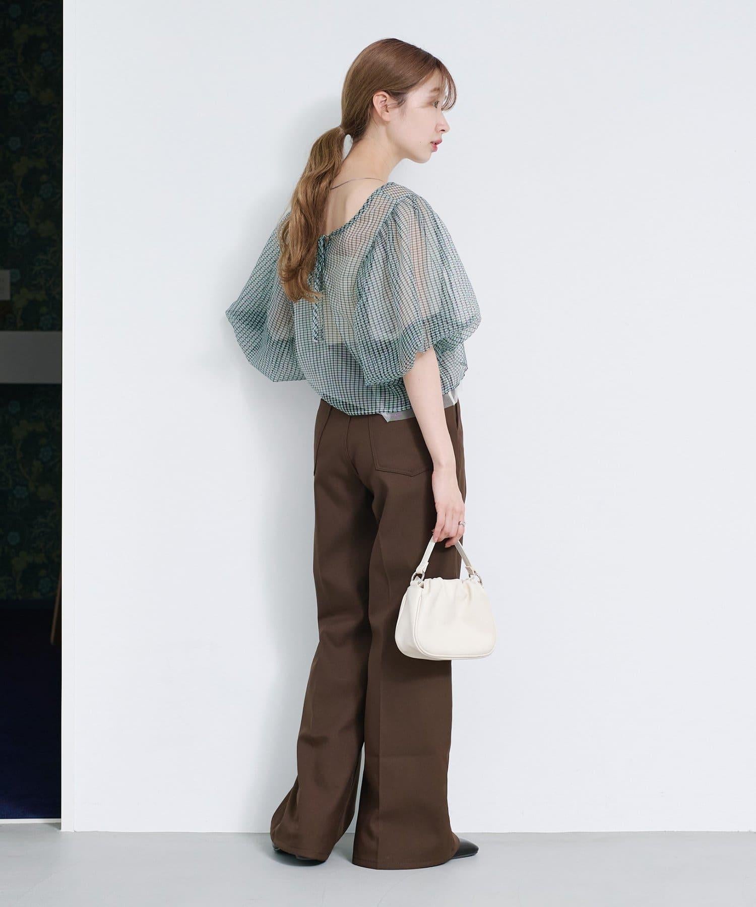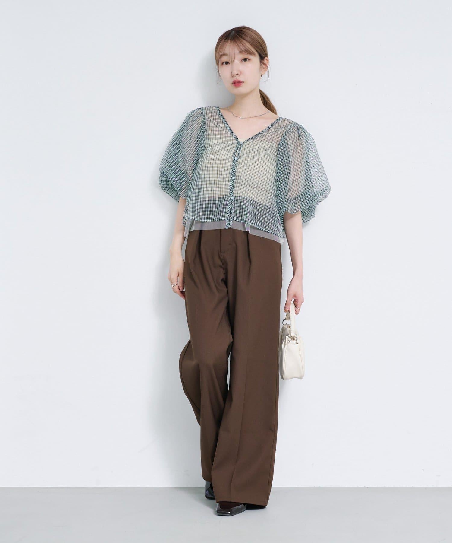 上衣的體積感很可愛,因此搭配長褲很有秋天的感覺。