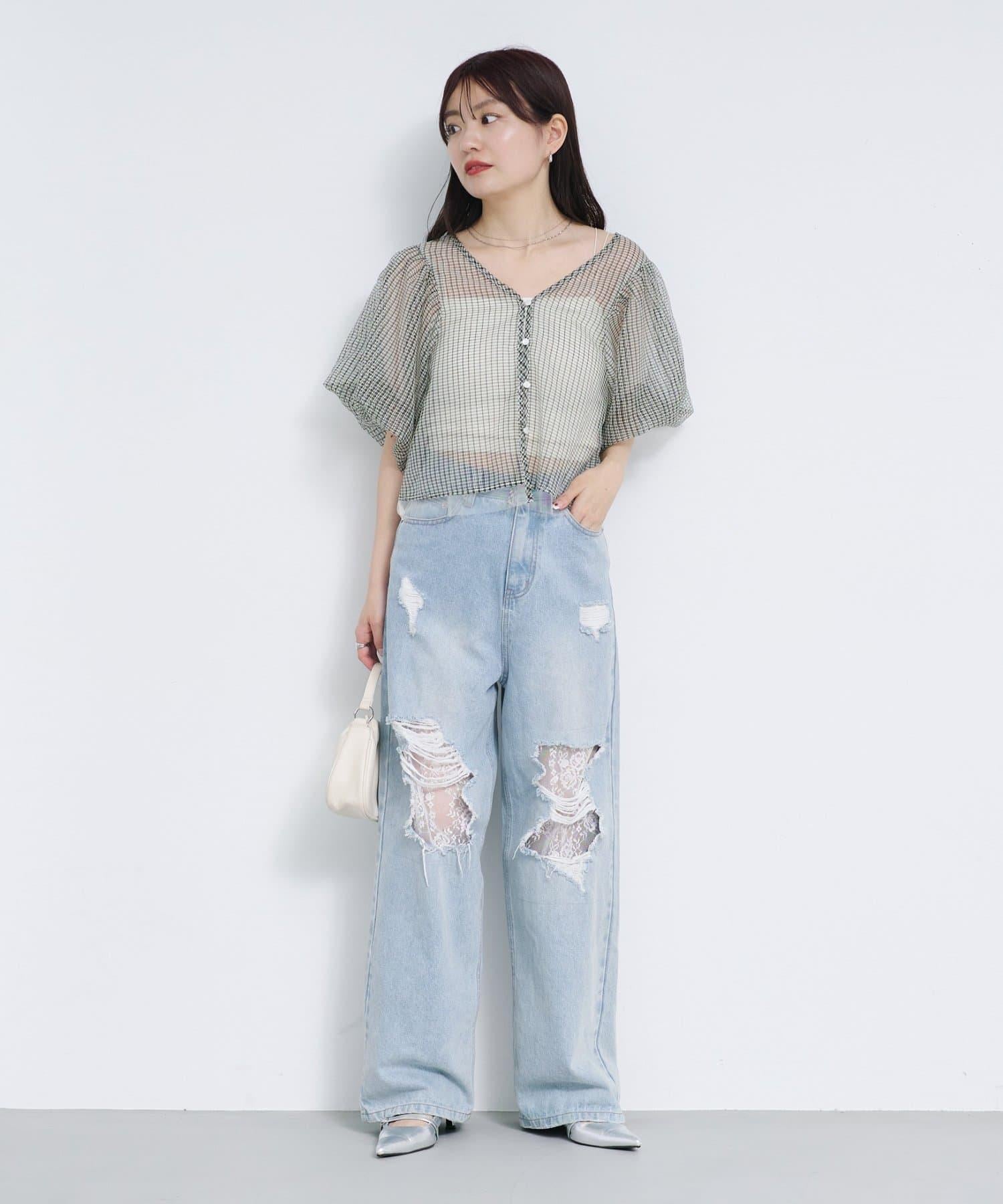 這款上衣有一種豐滿的感覺,但透明的面料使其看起來時尚而富有女人味。