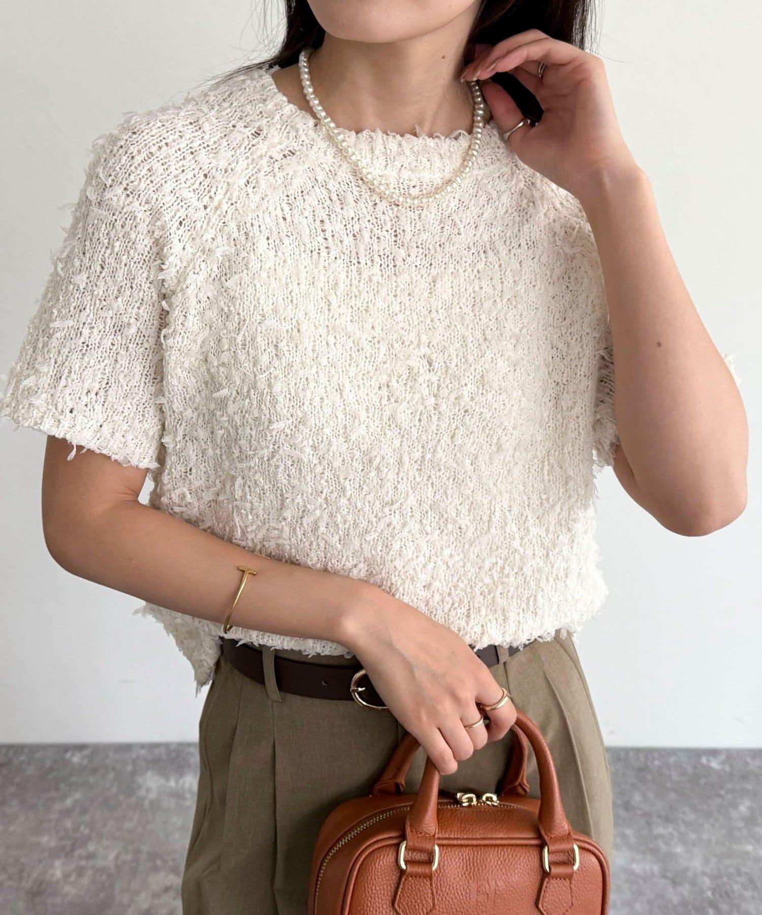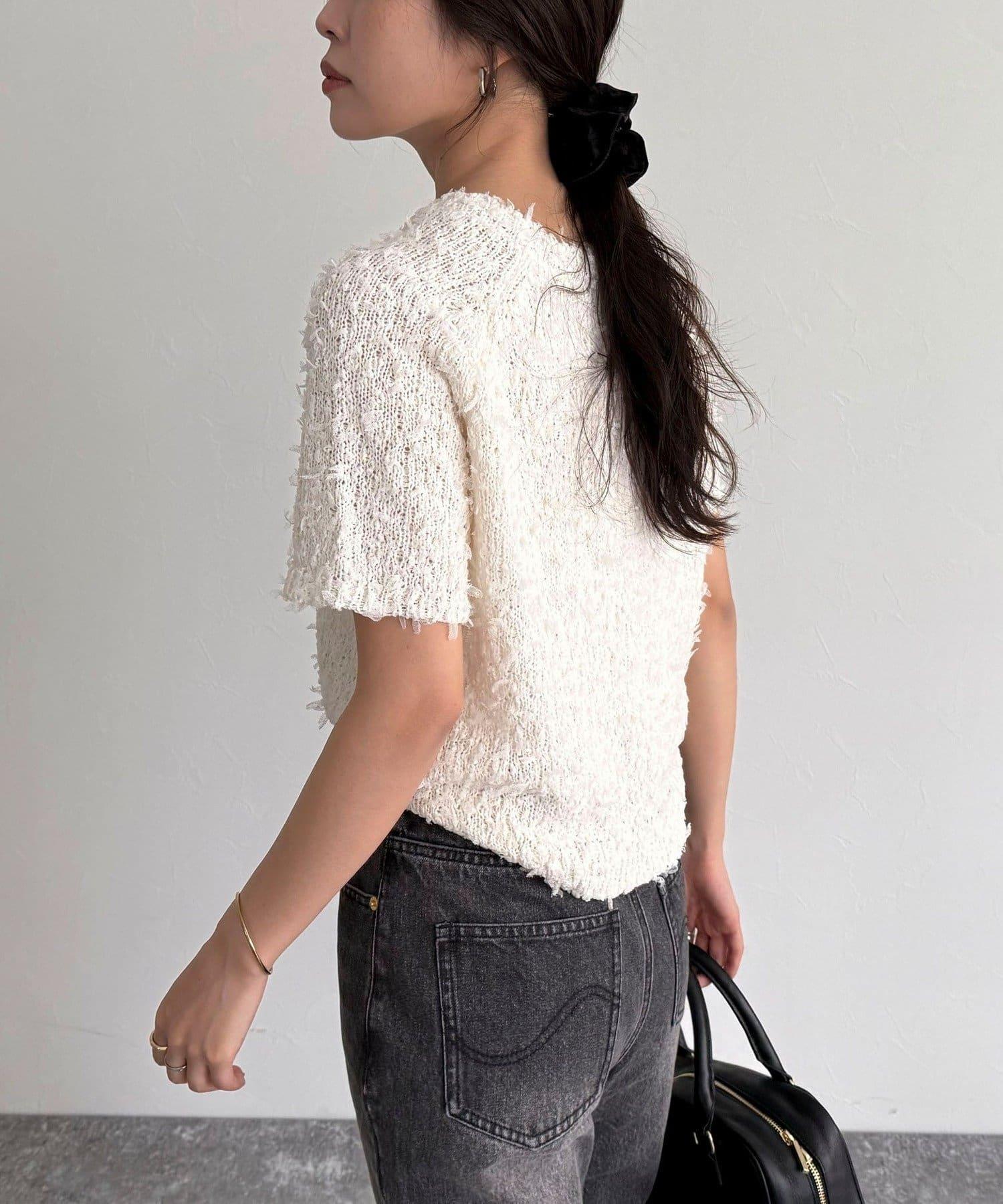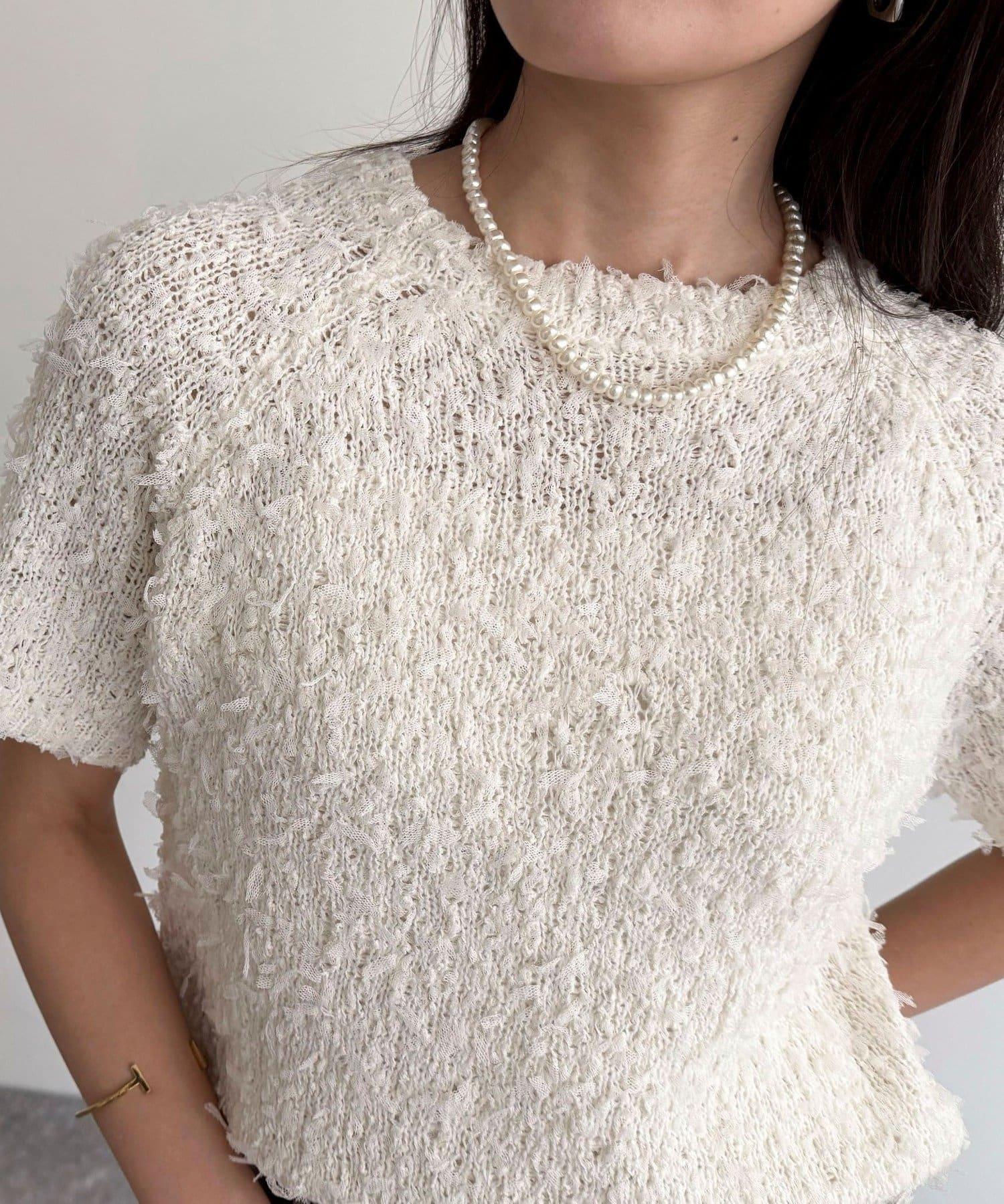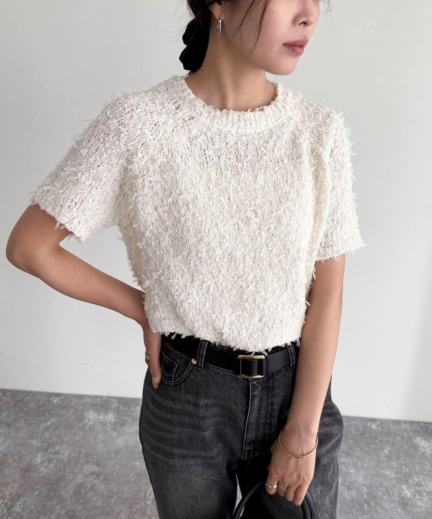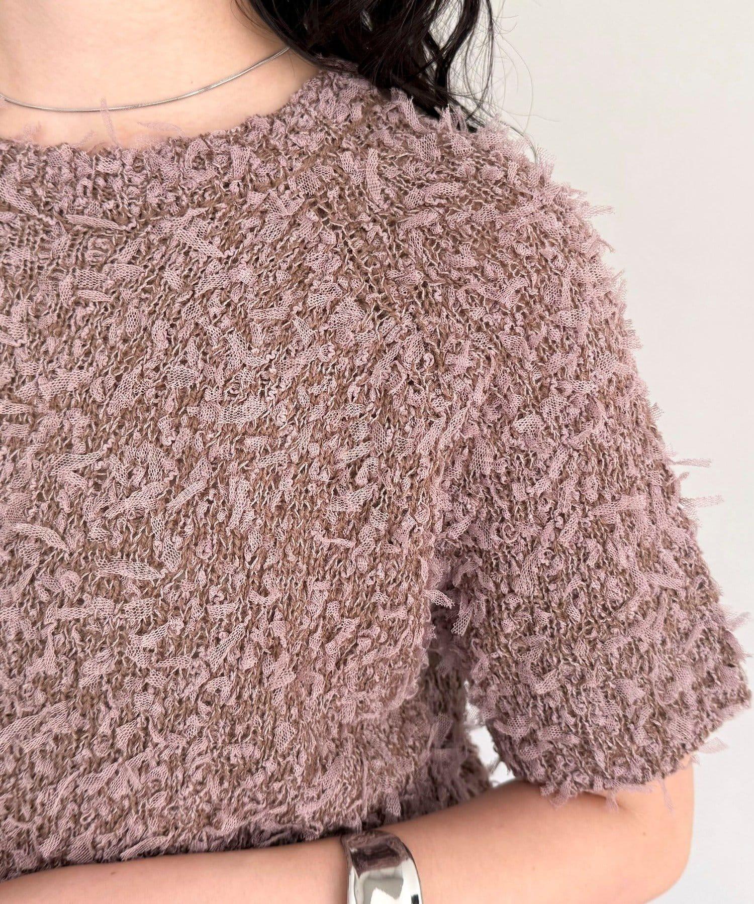 蕾絲邊半袖針織套頭衫