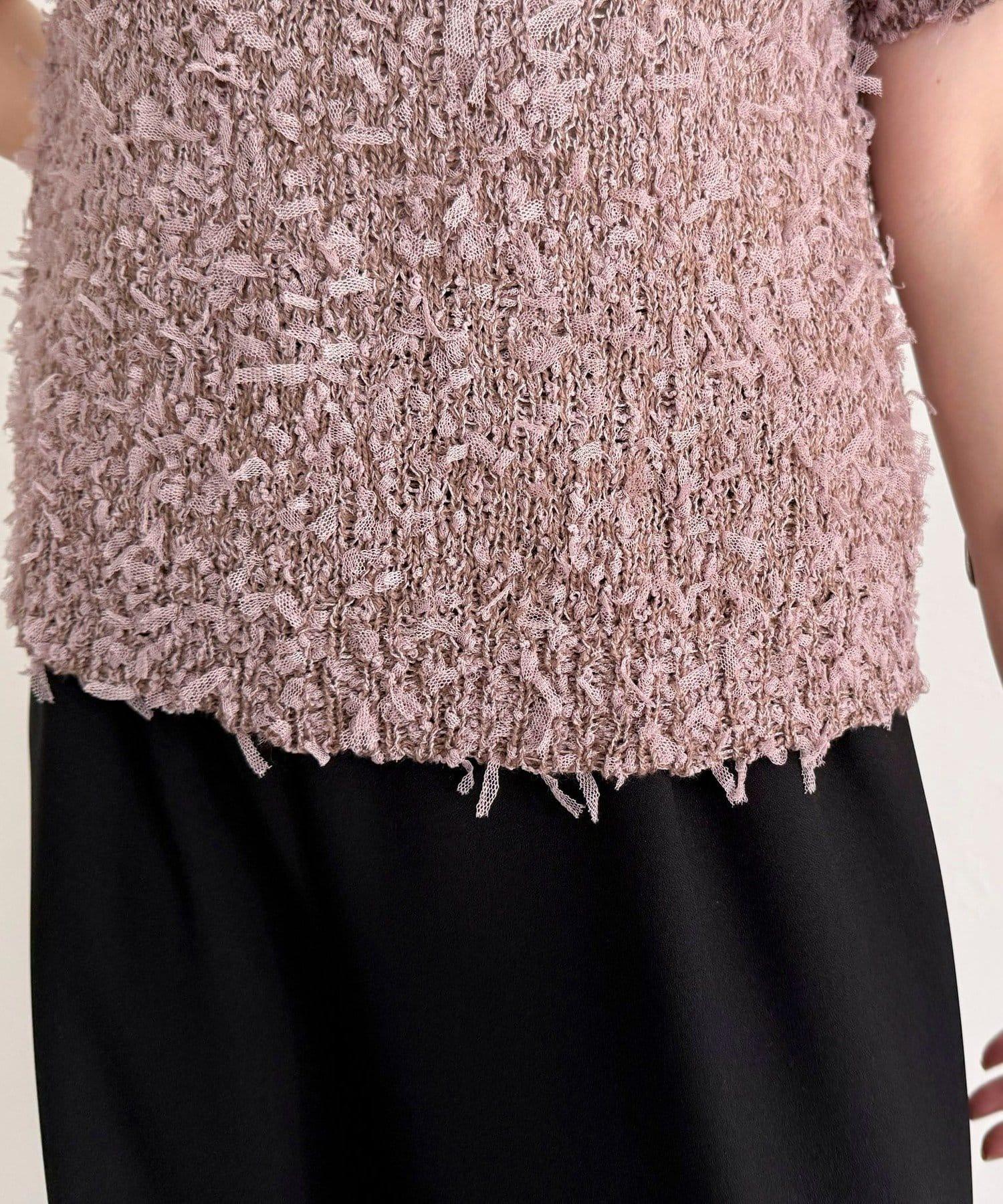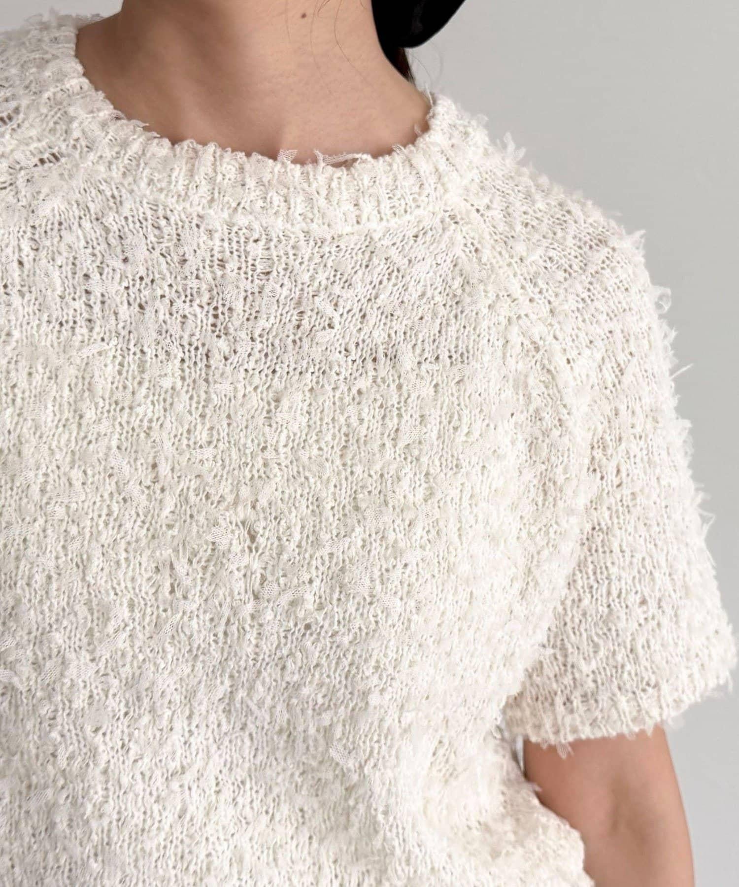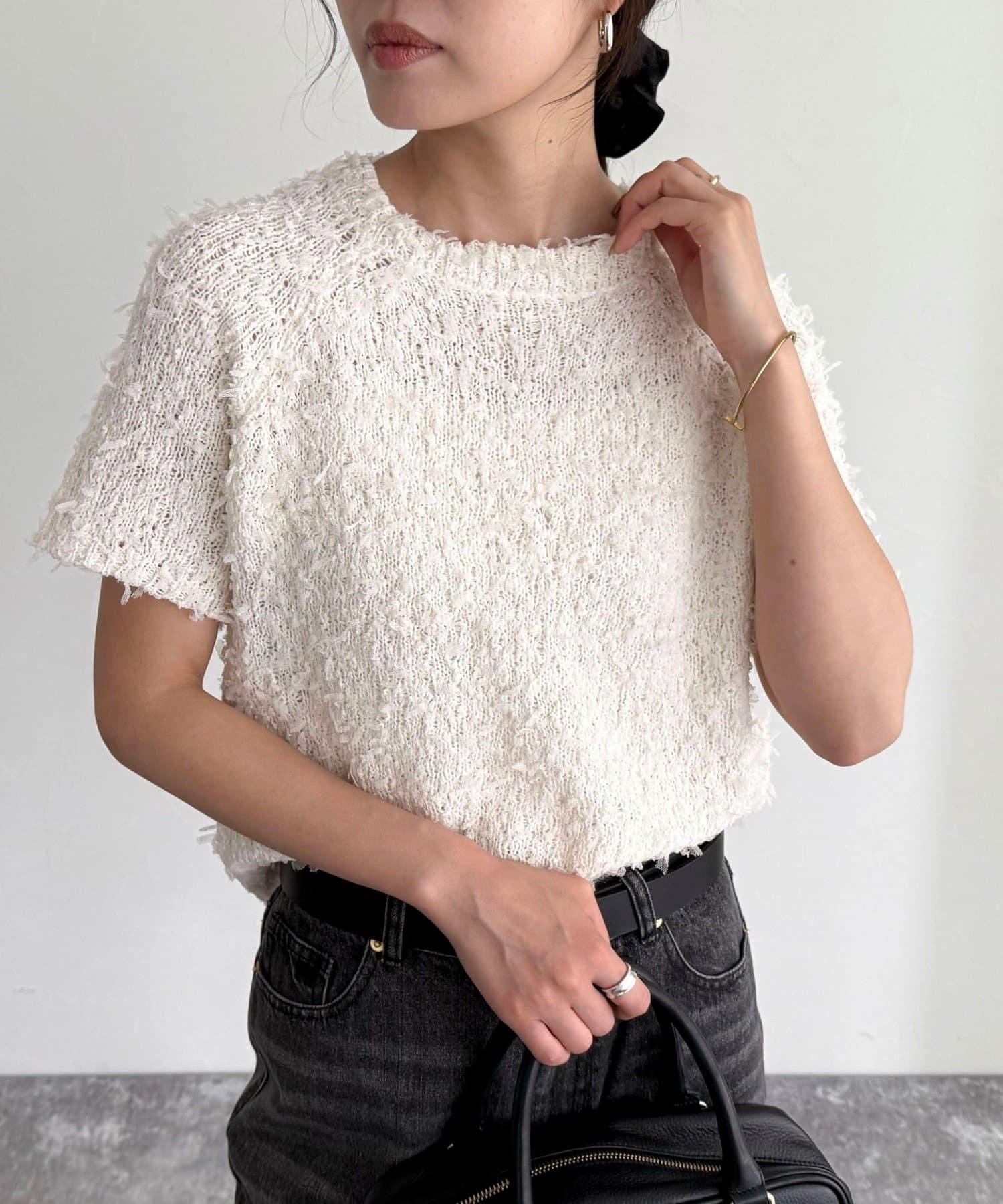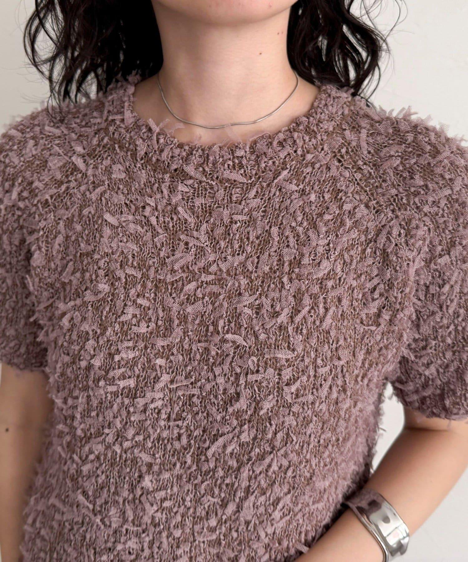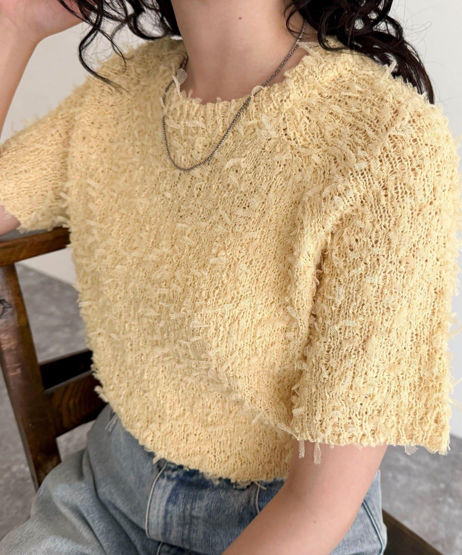 蕾絲邊半袖針織套頭衫