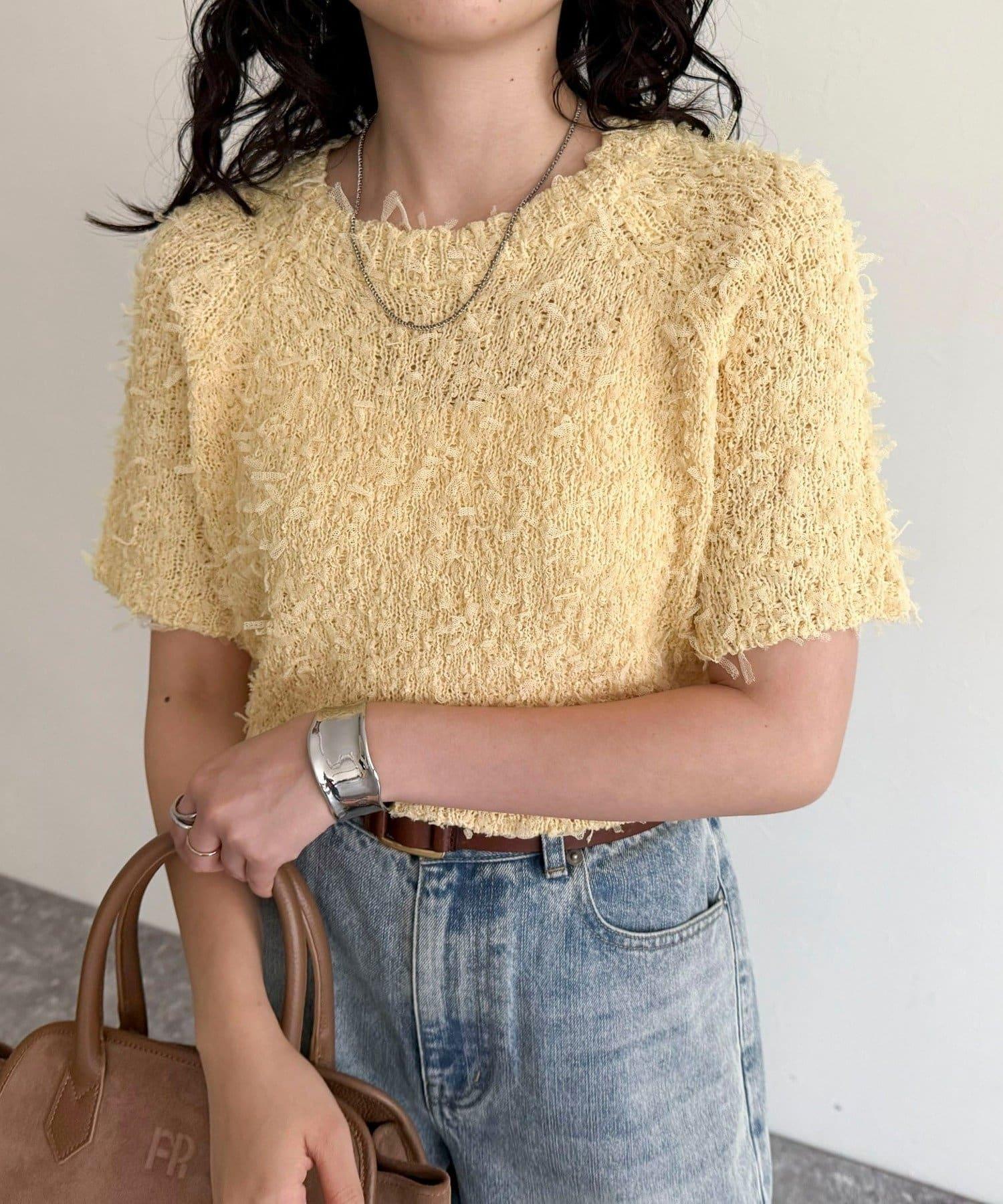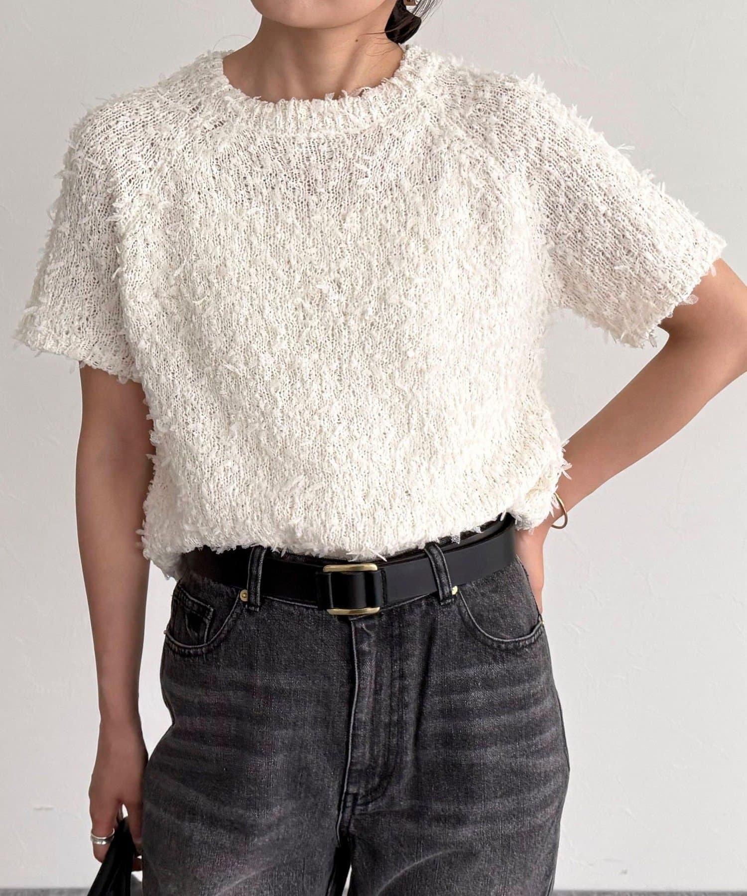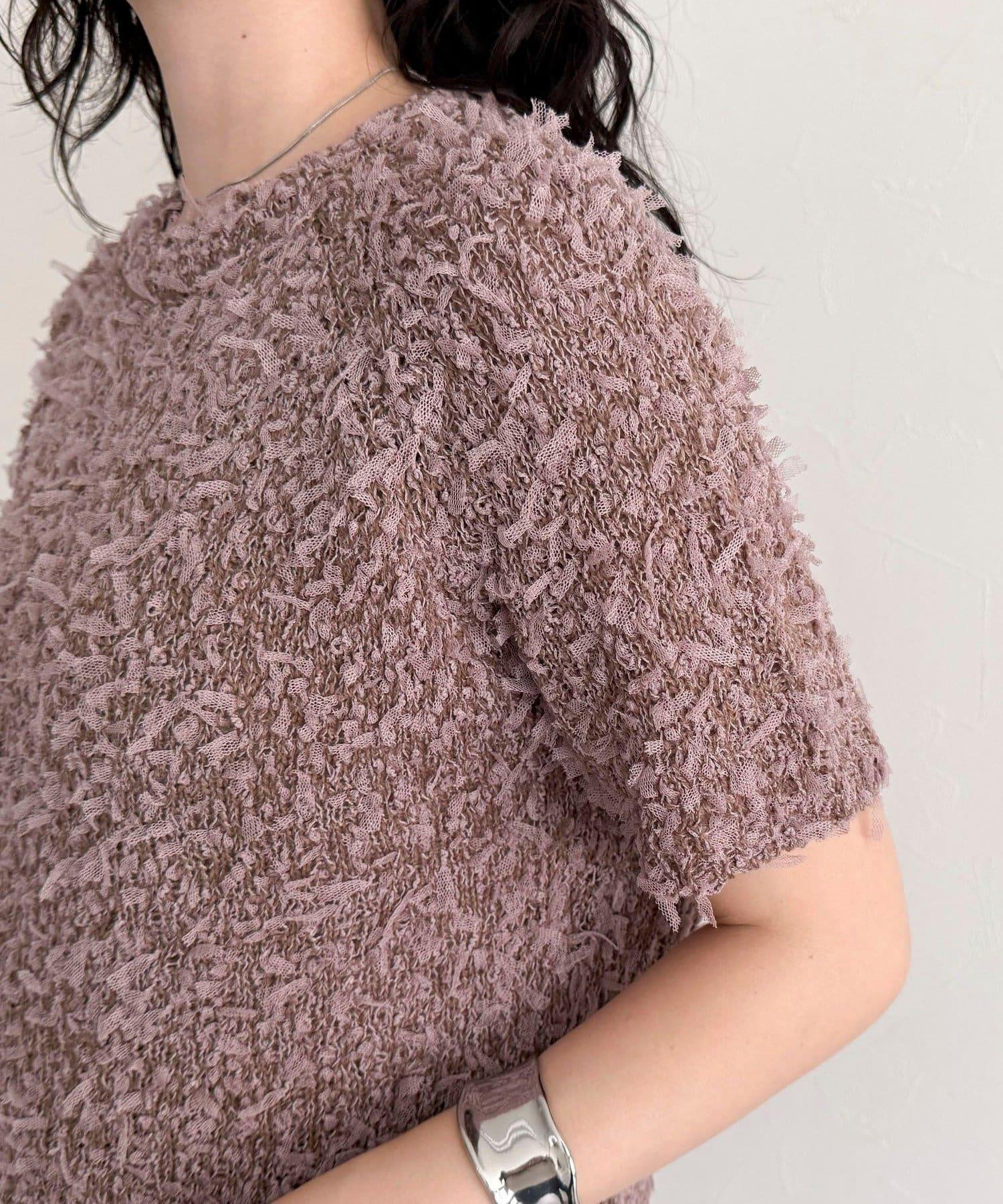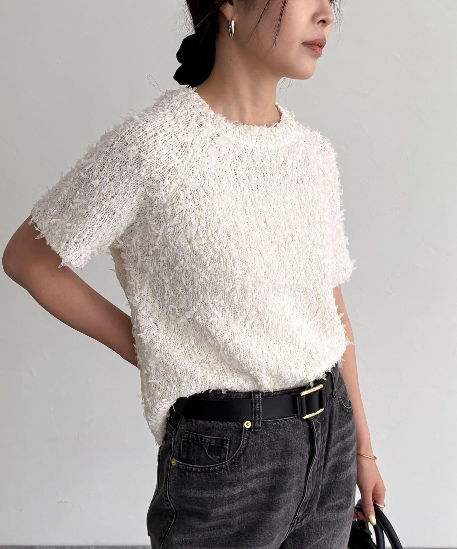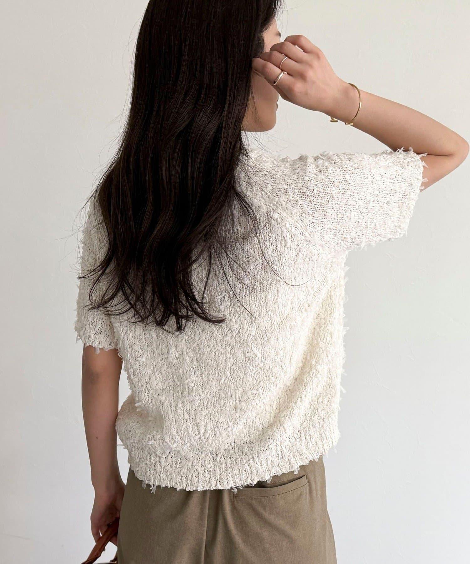蕾絲邊半袖針織套頭衫