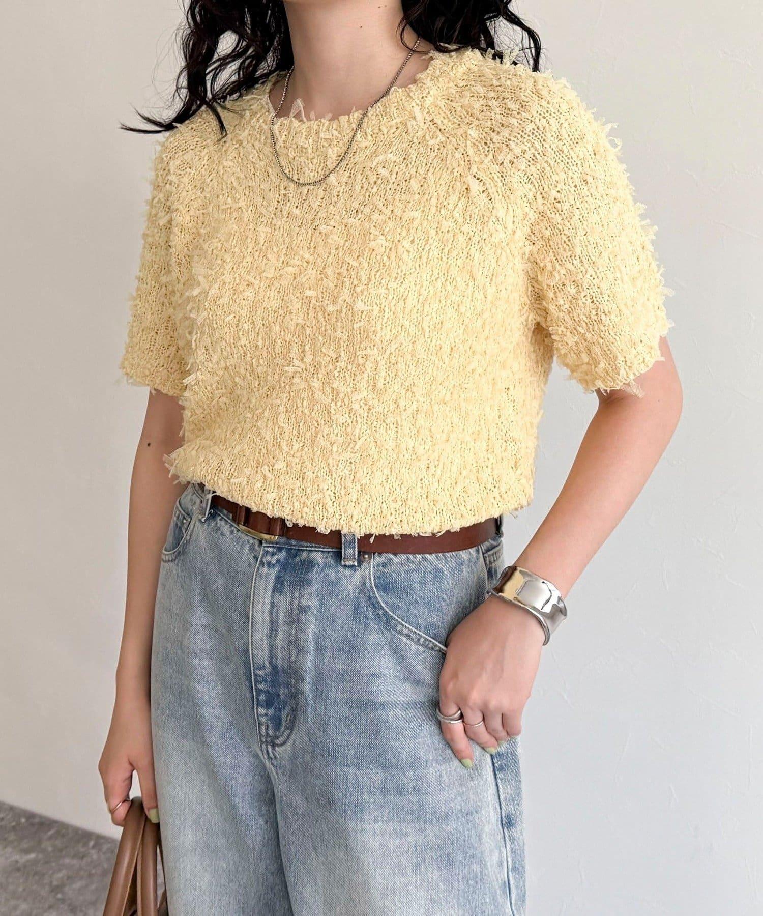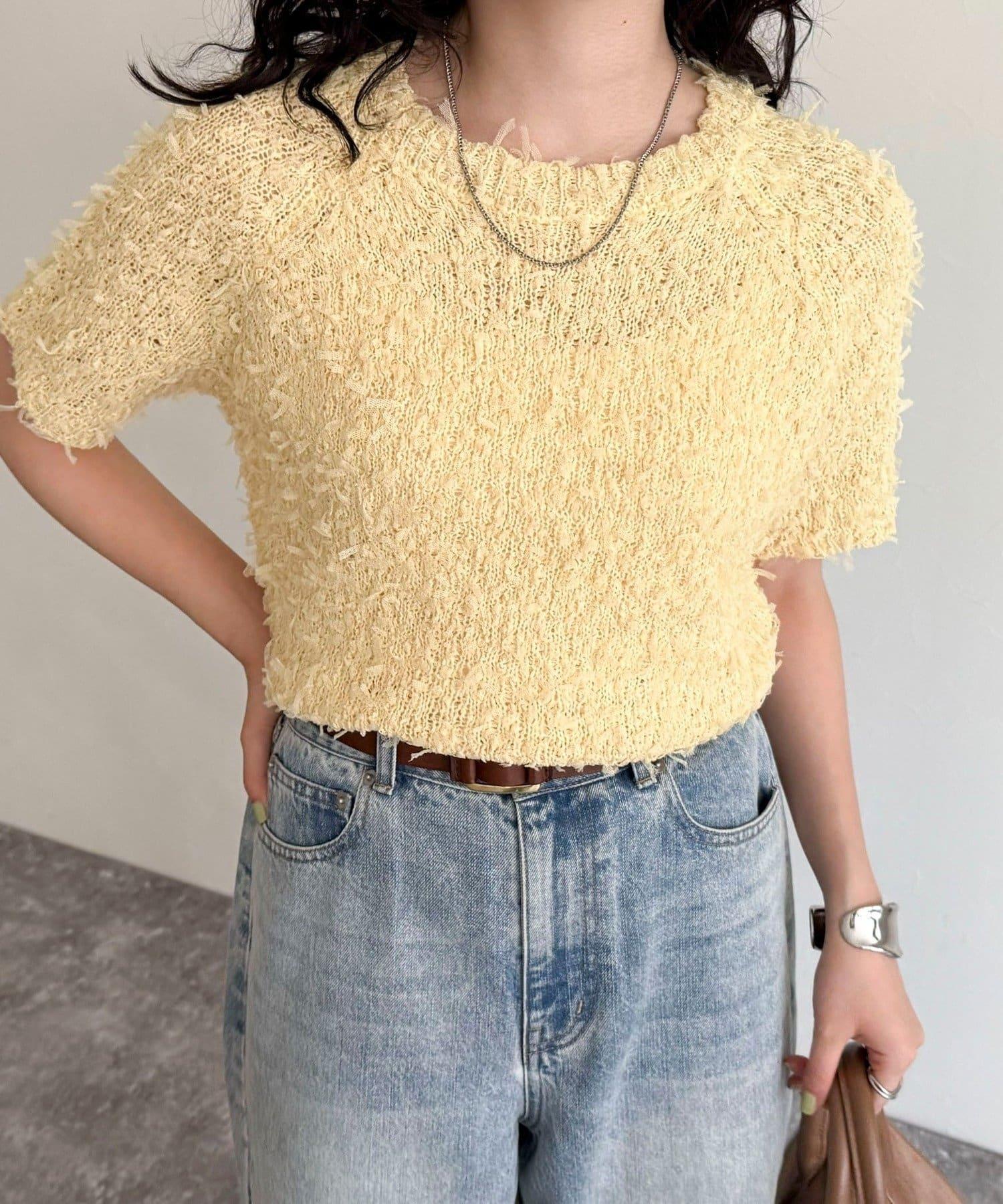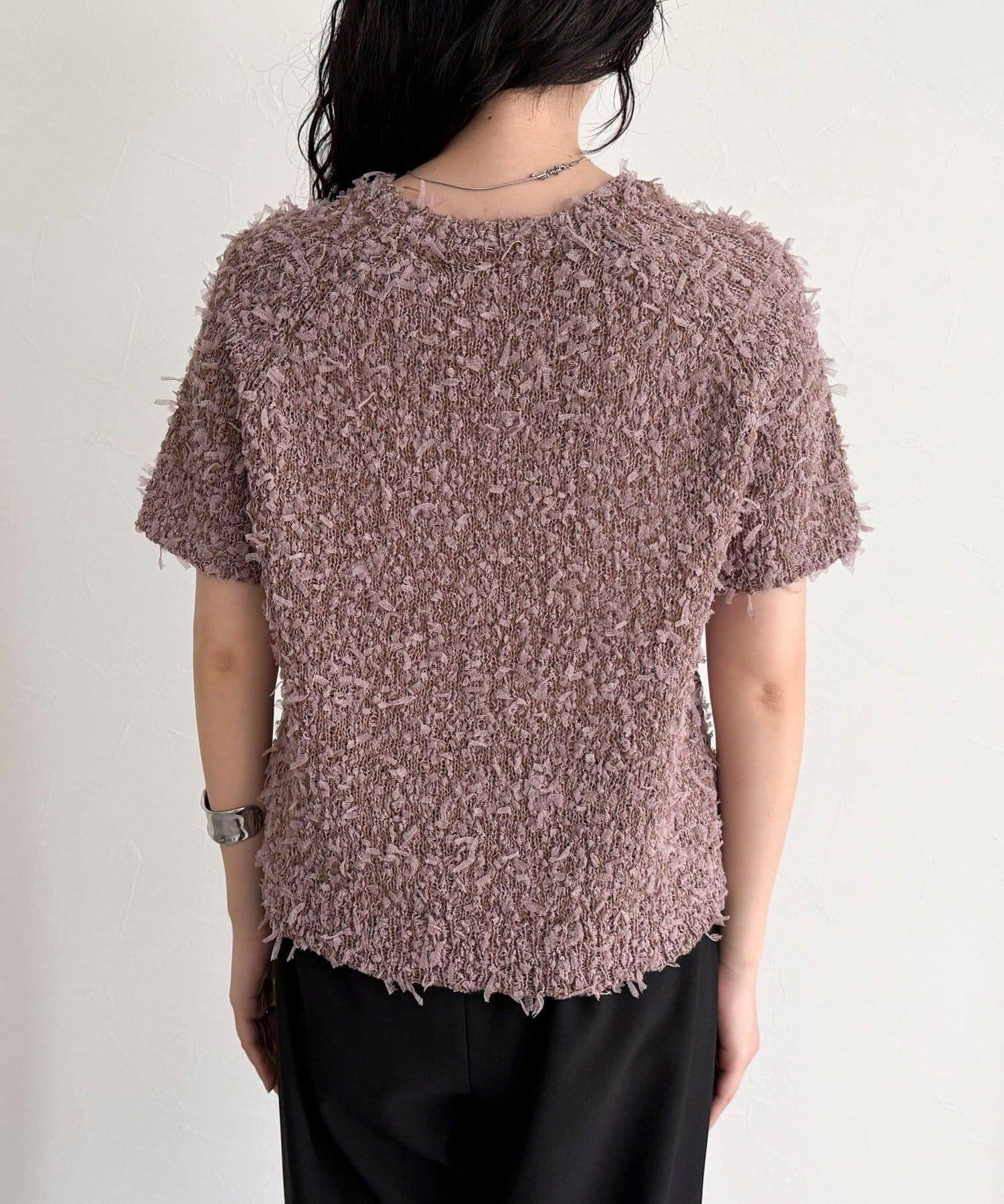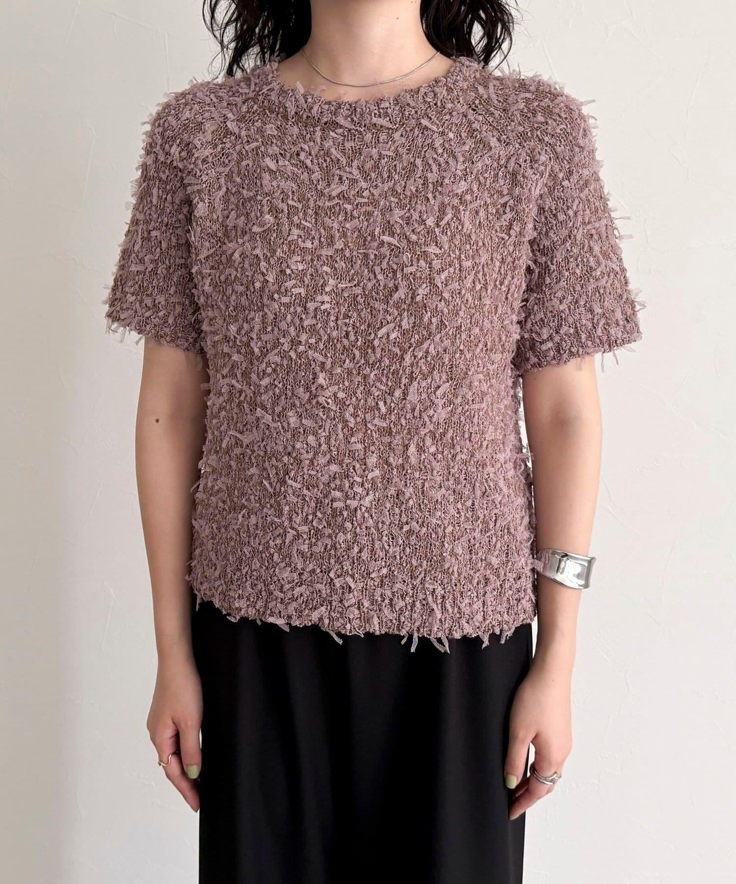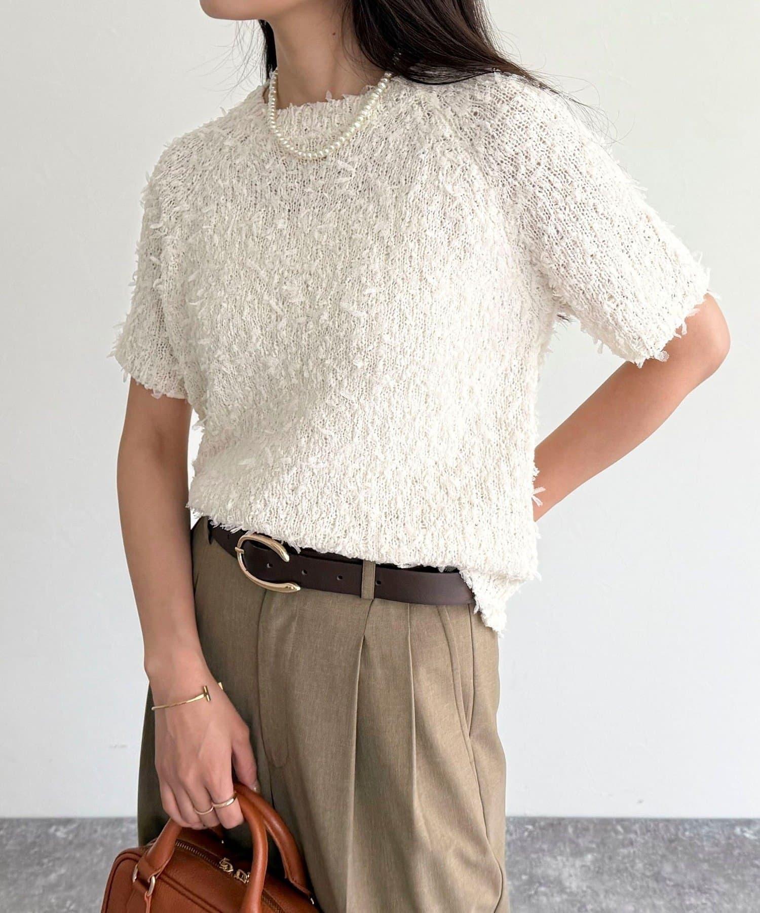 蕾絲邊半袖針織套頭衫