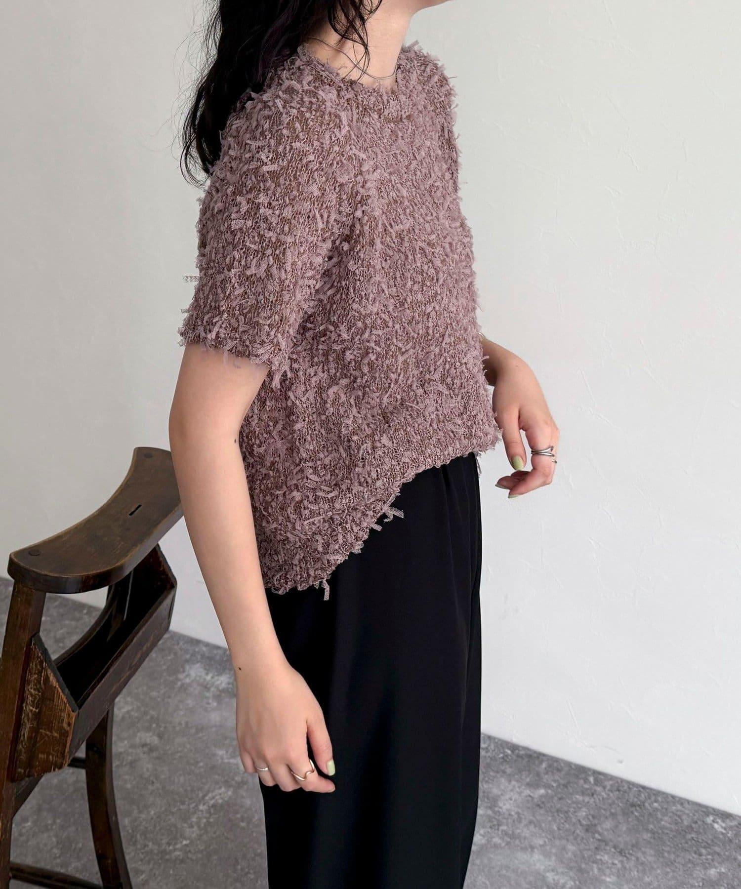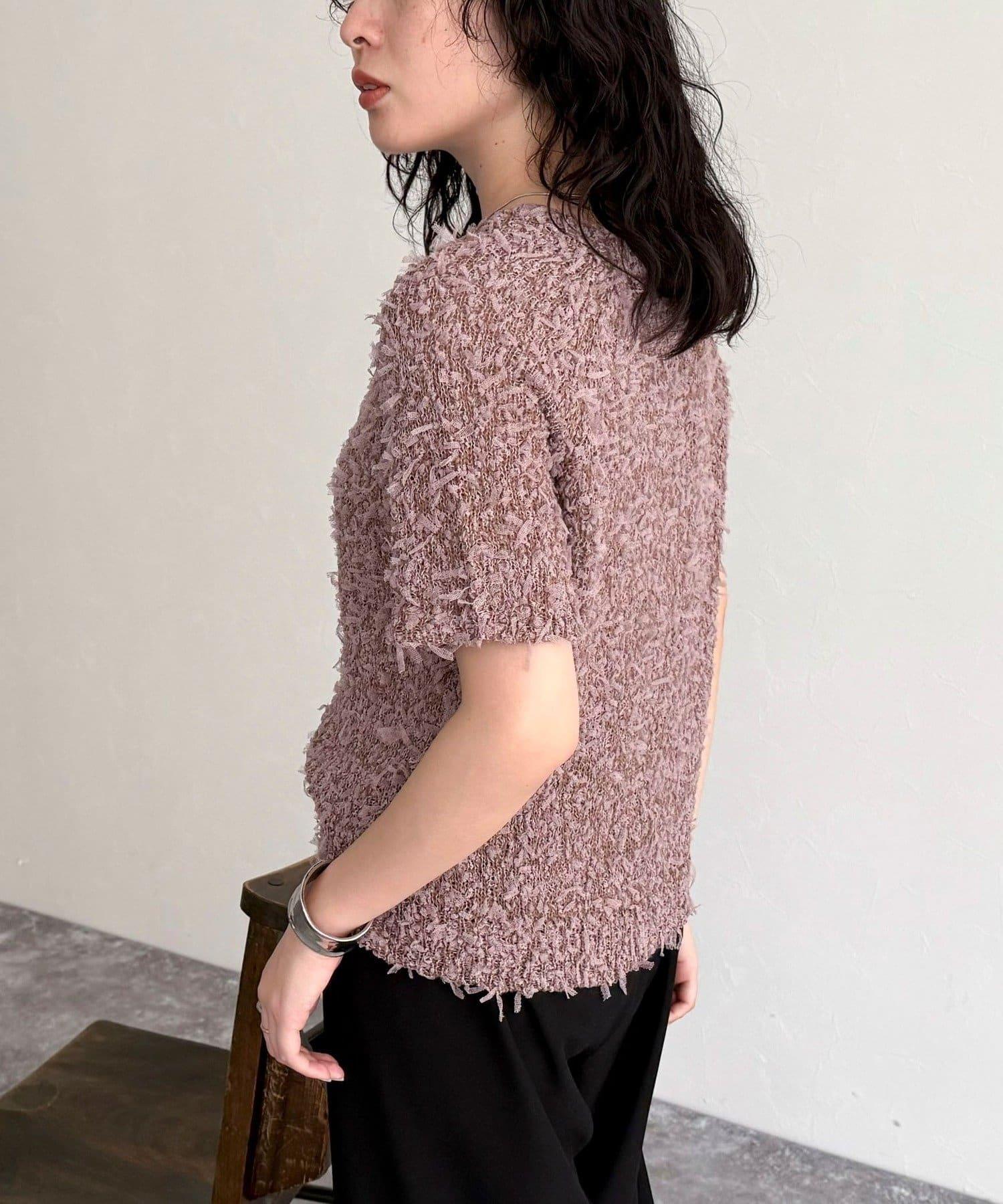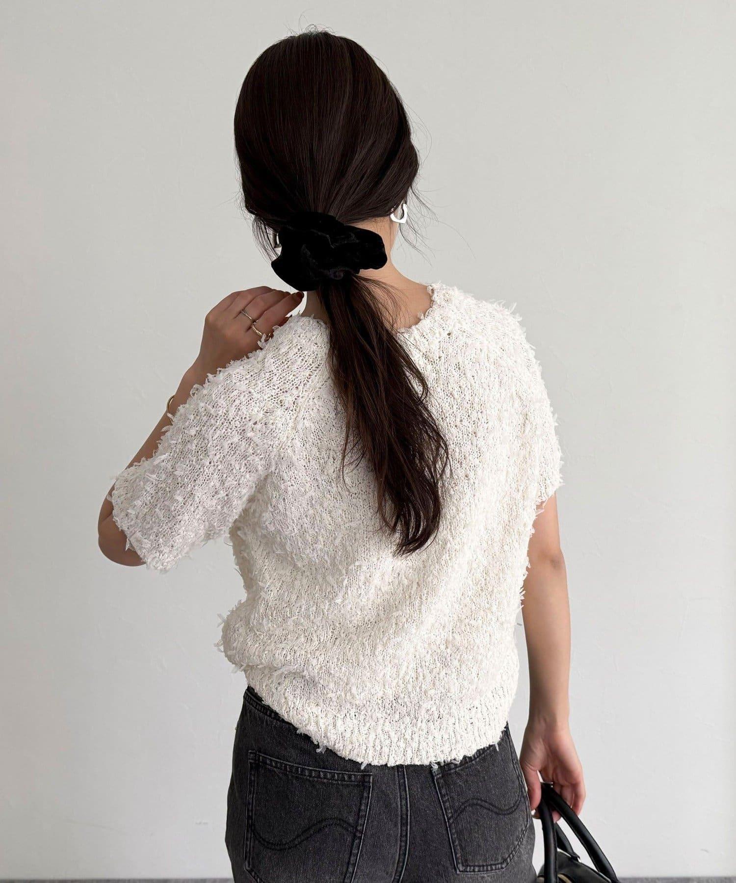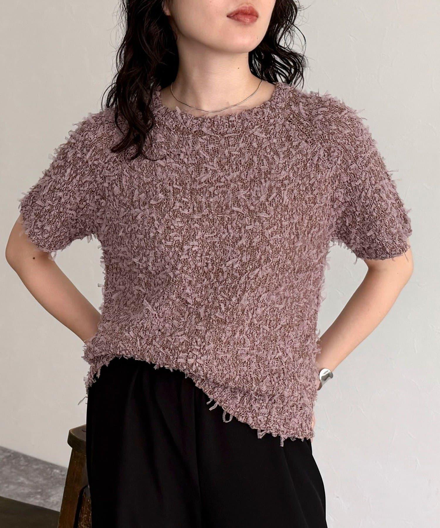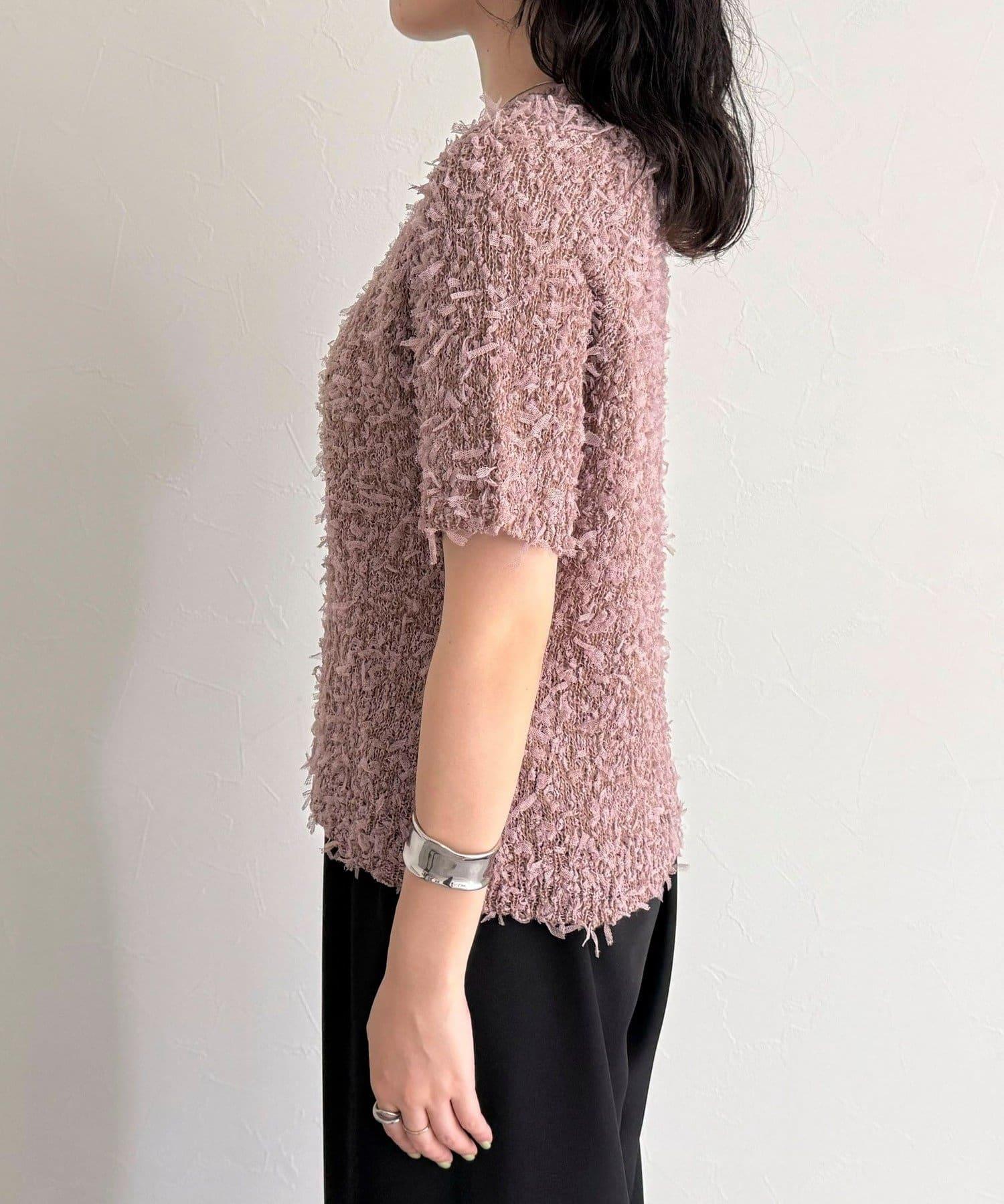 蕾絲邊半袖針織套頭衫