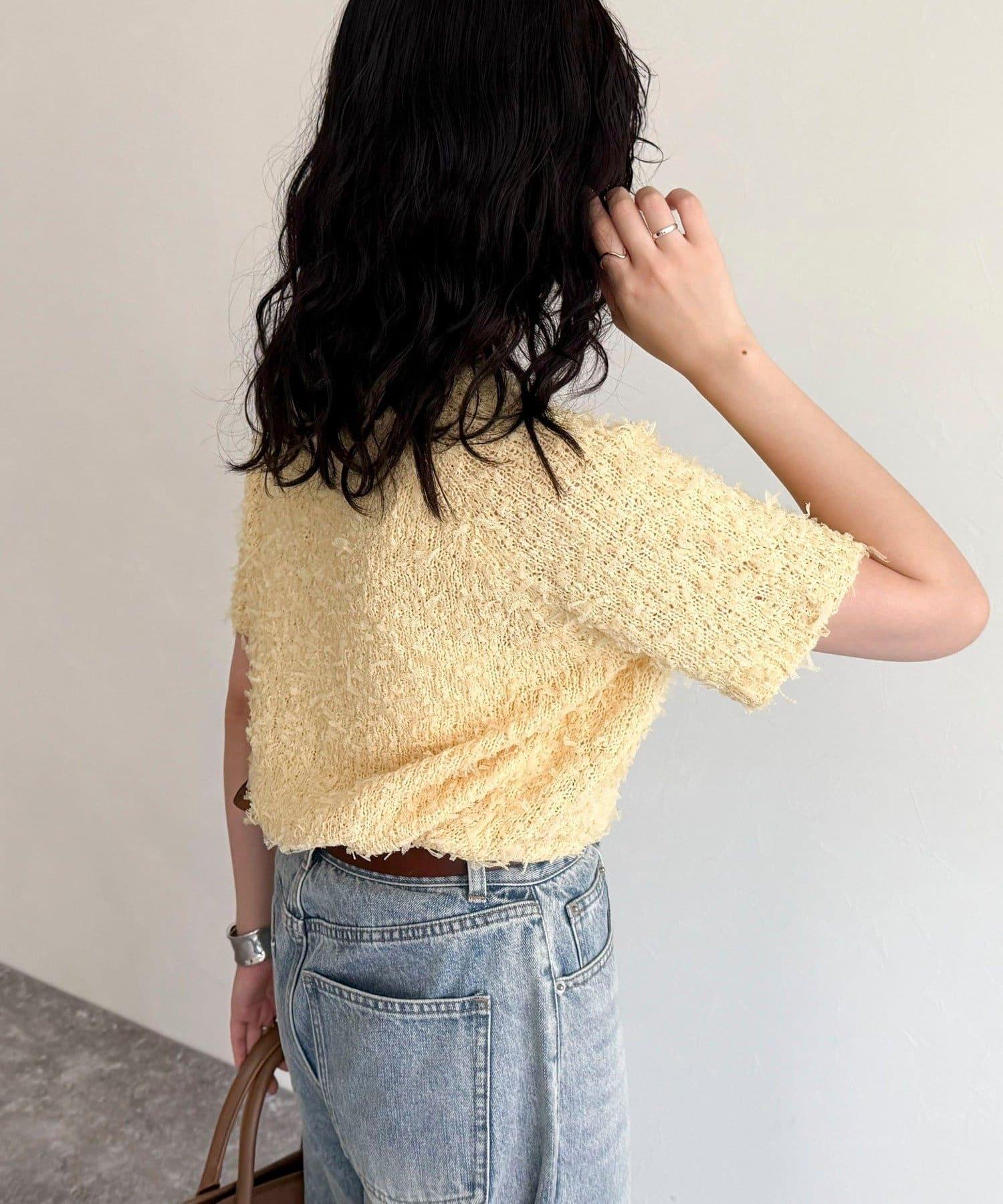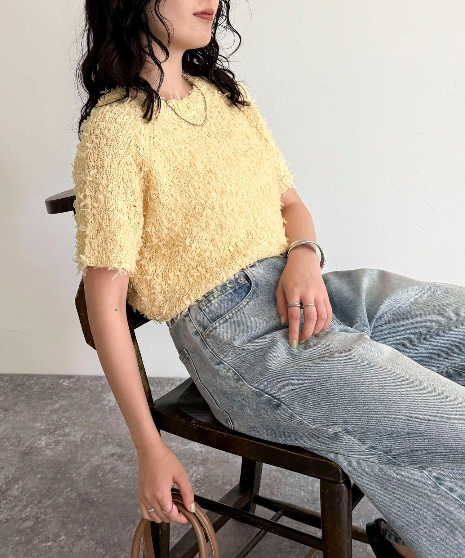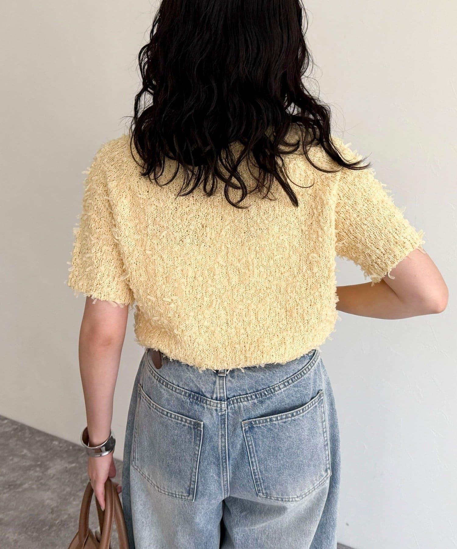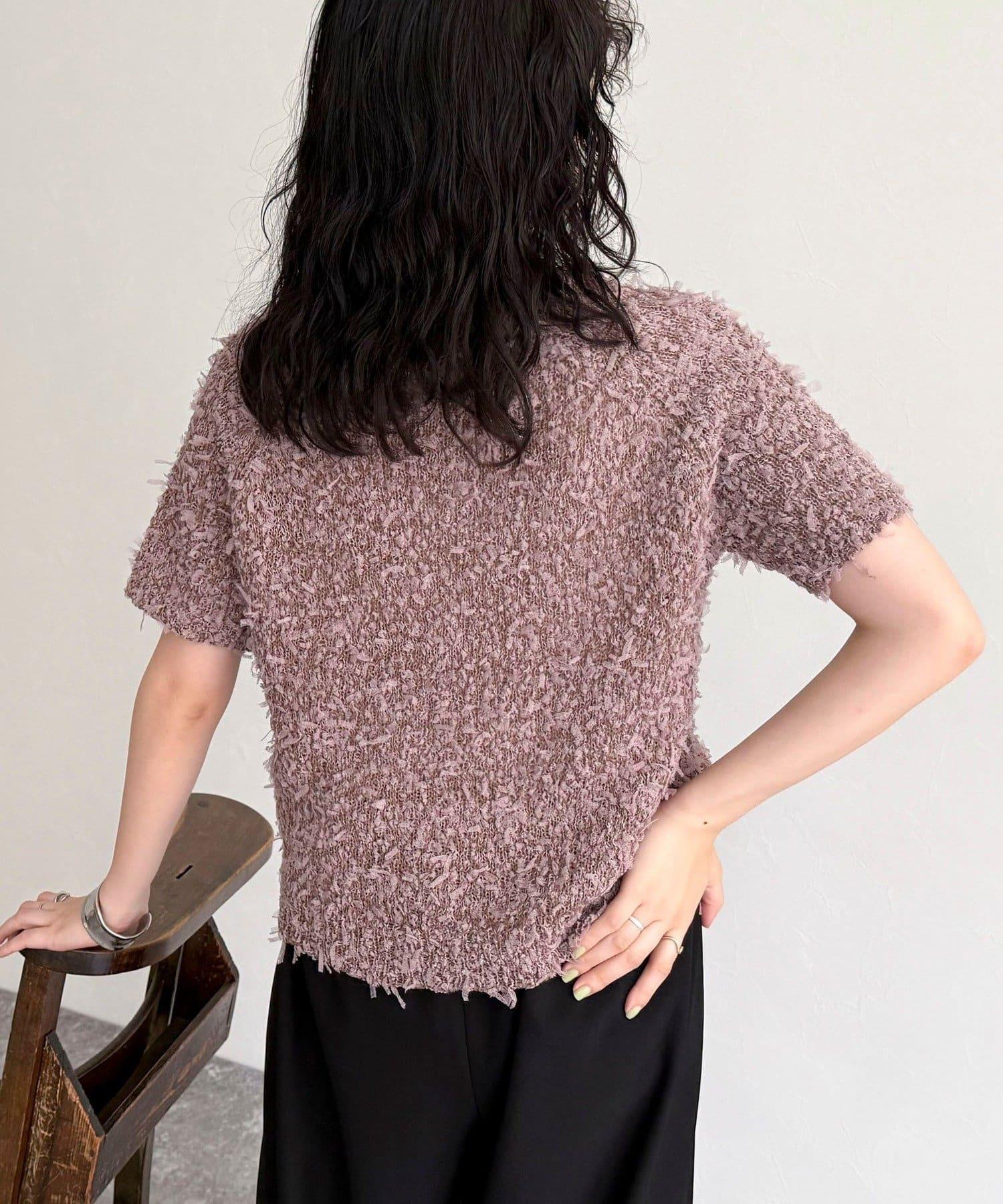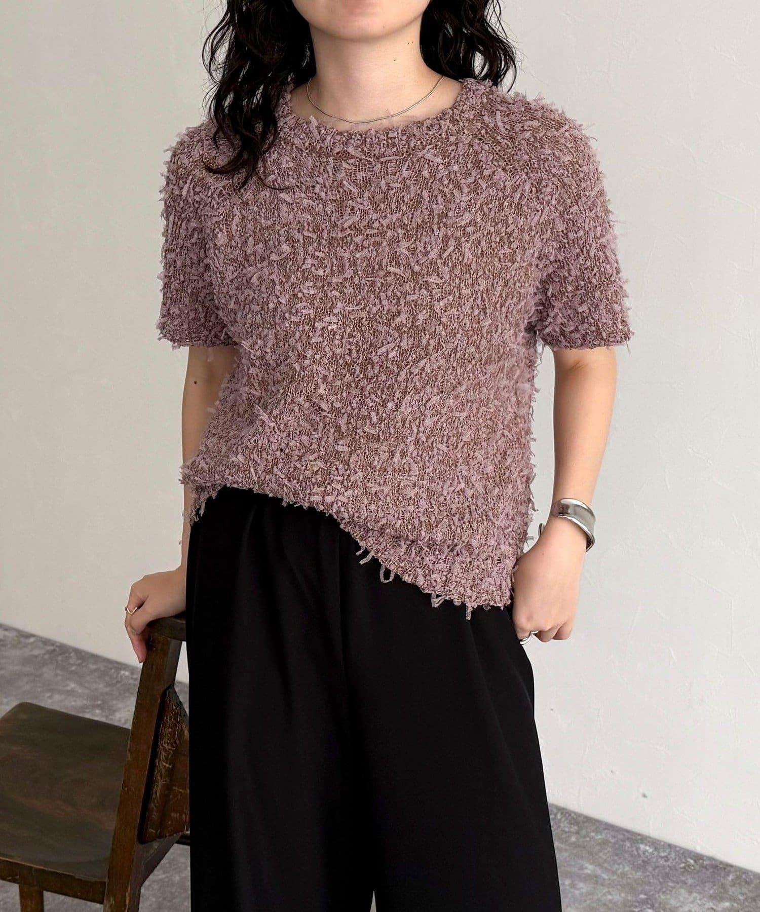 蕾絲邊半袖針織套頭衫