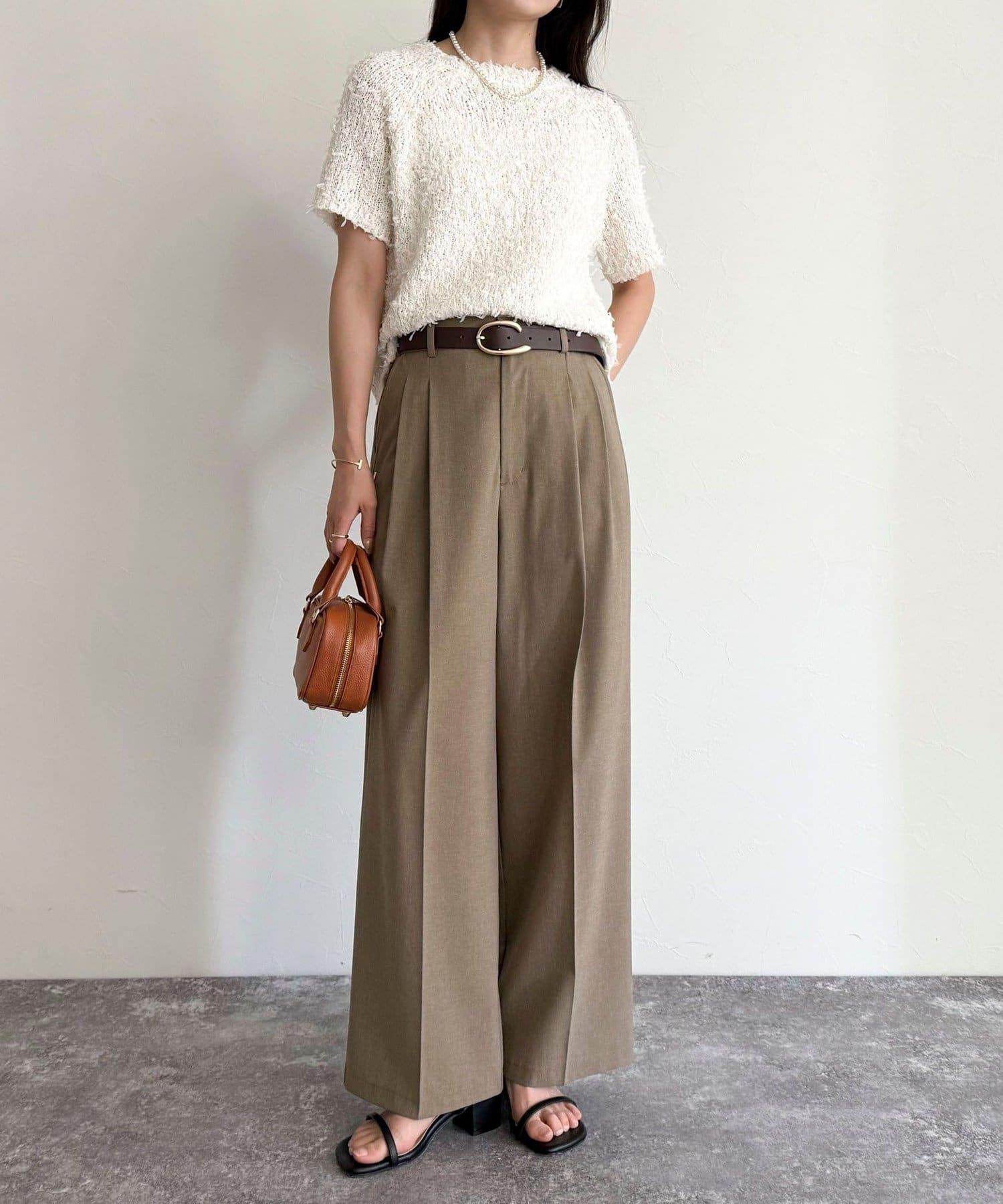由於面料的特性,本產品的線頭在被夾住時容易彈出。穿著時,請注意不要與皮帶、包包或周圍牆壁等粗糙表面摩擦或卡住。