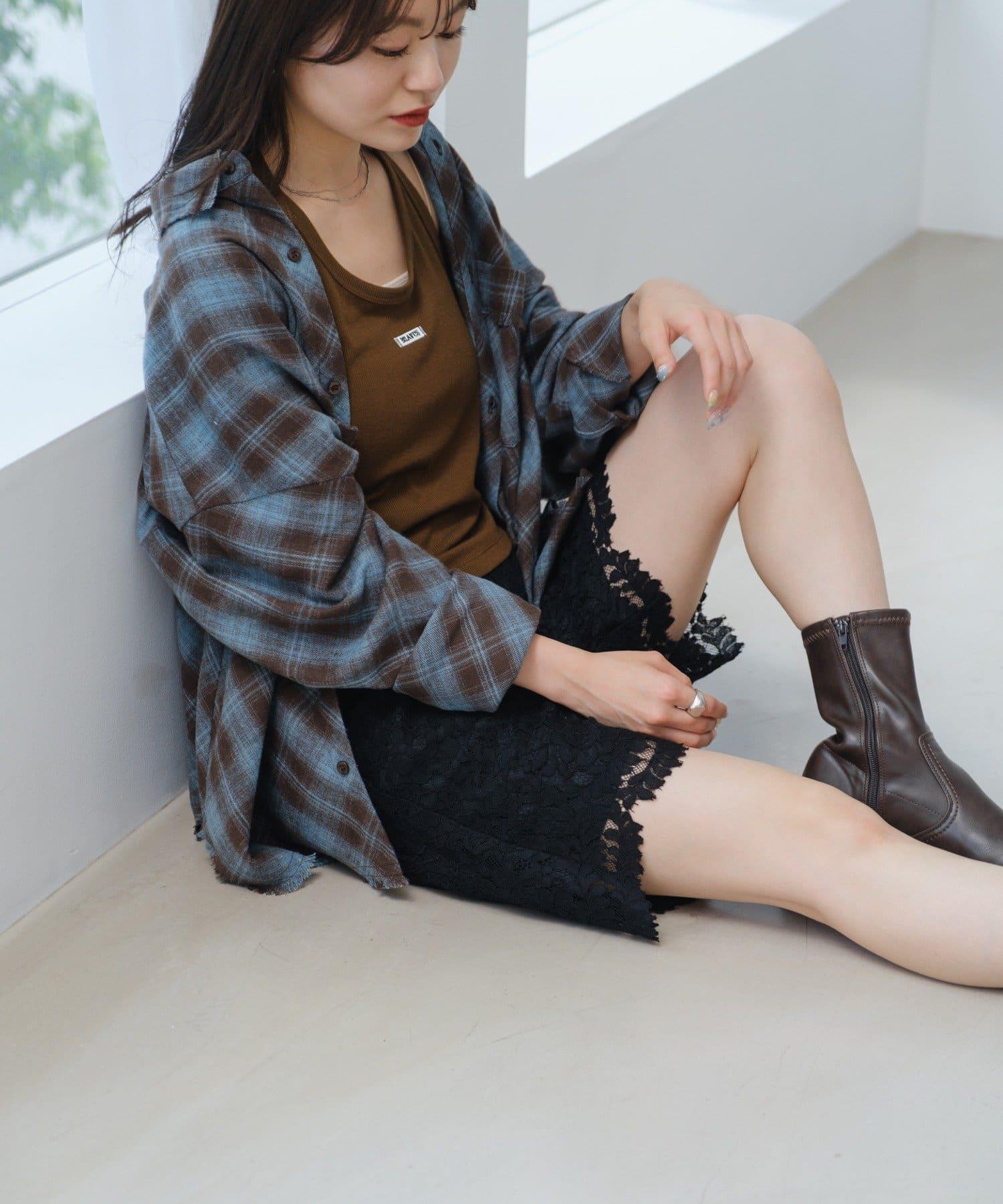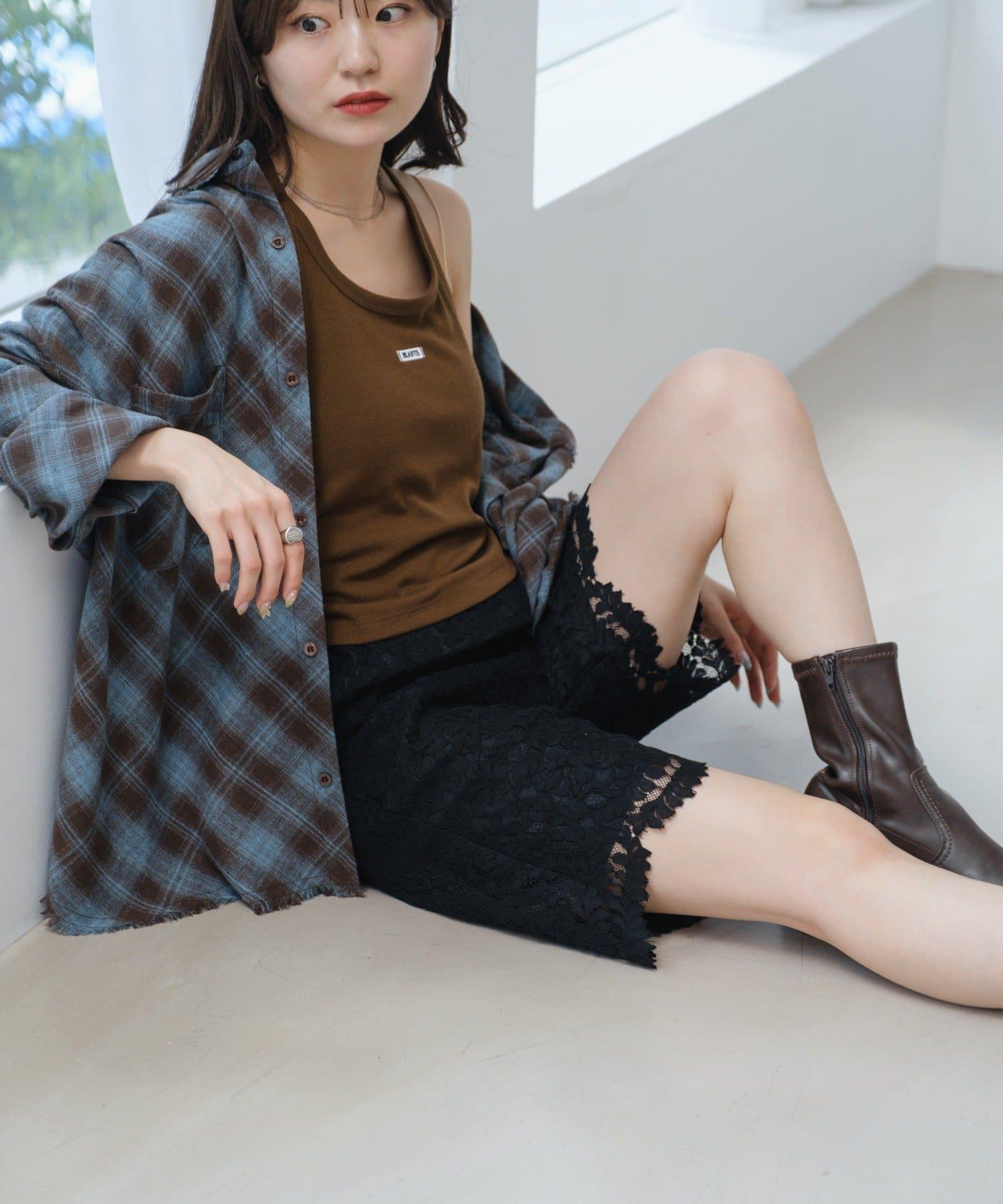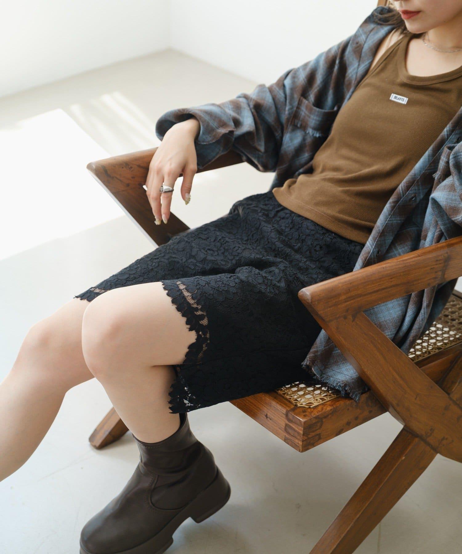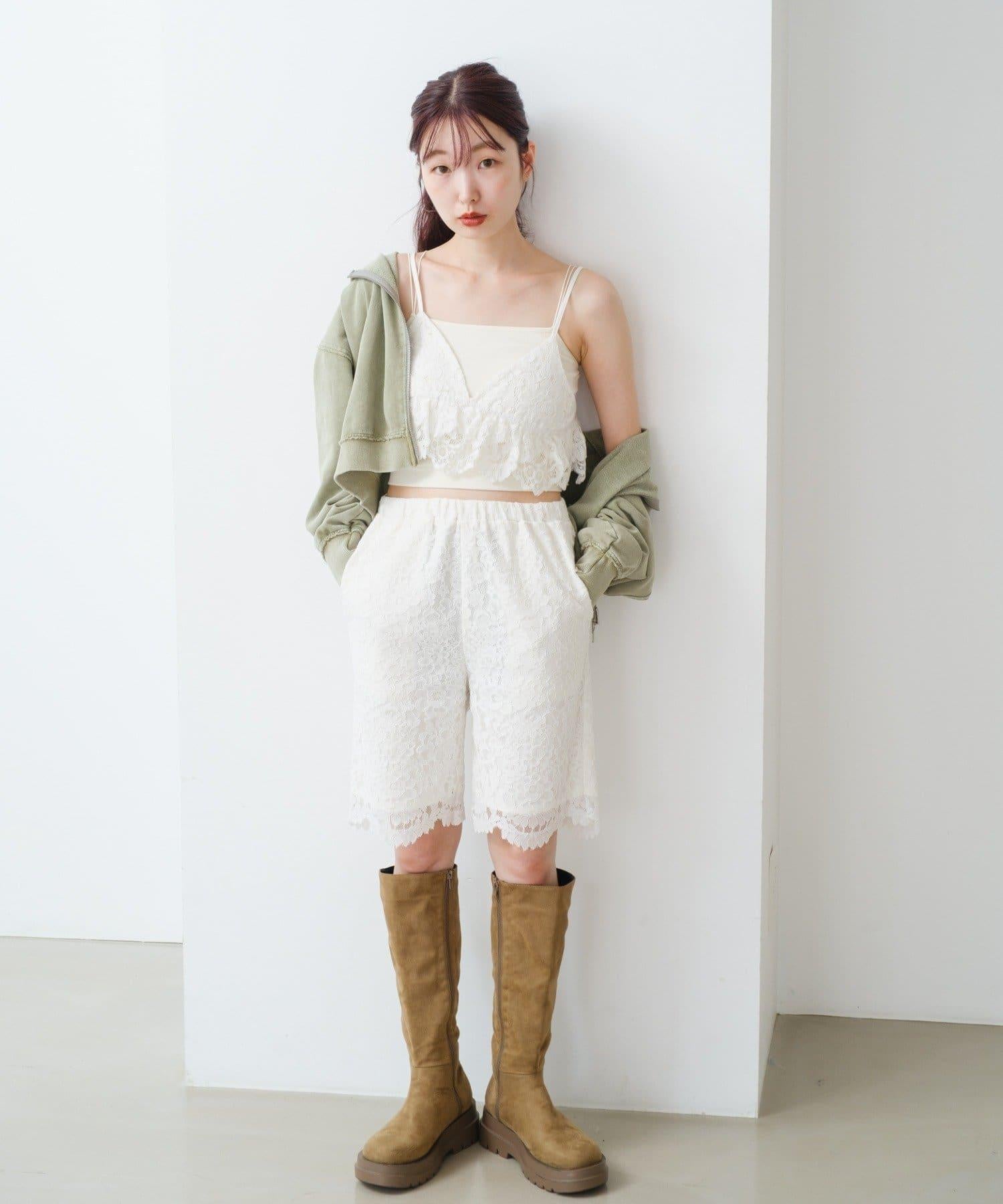 搭配同材質的蕾絲上衣或吊帶衫,打造套裝造型。