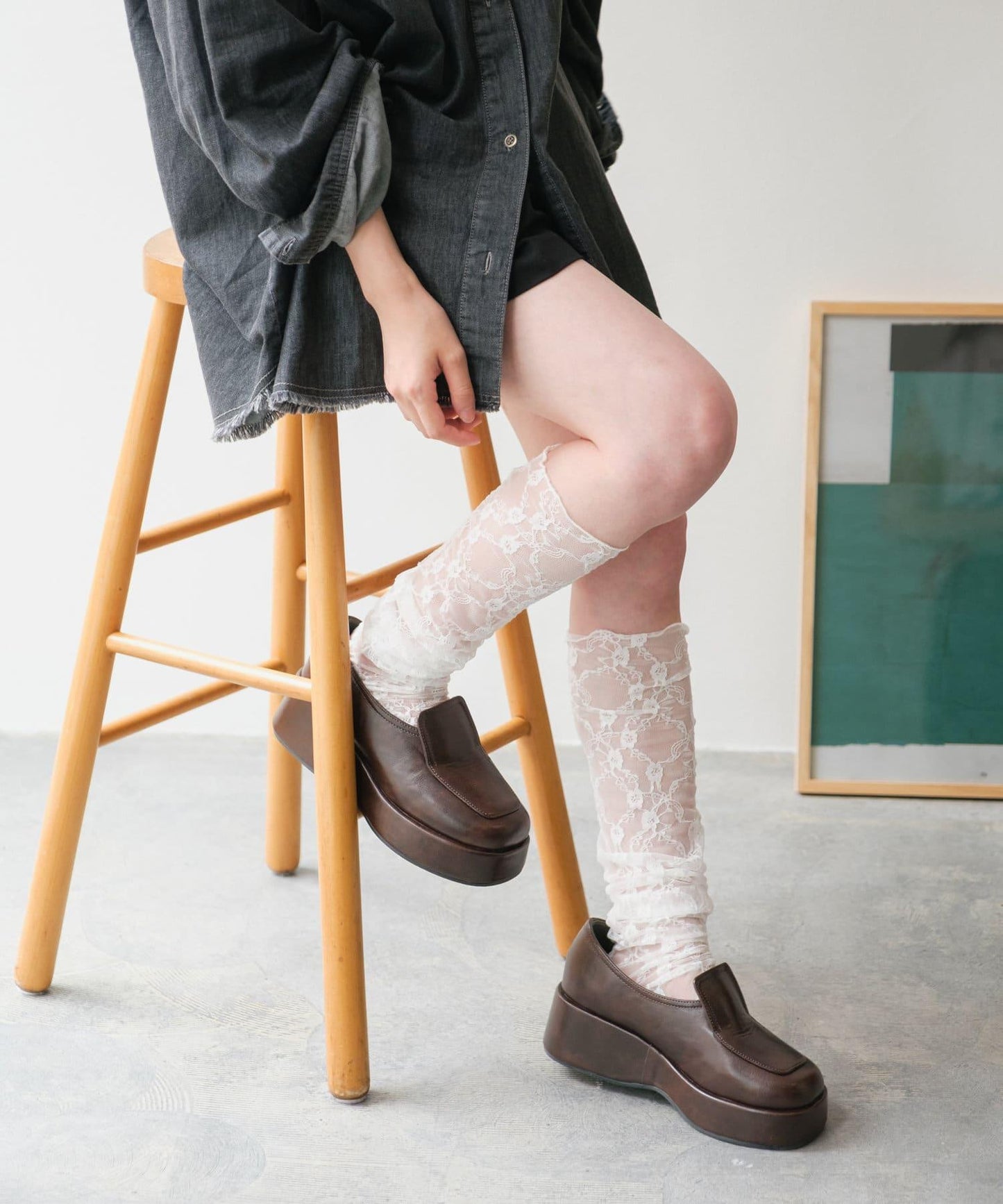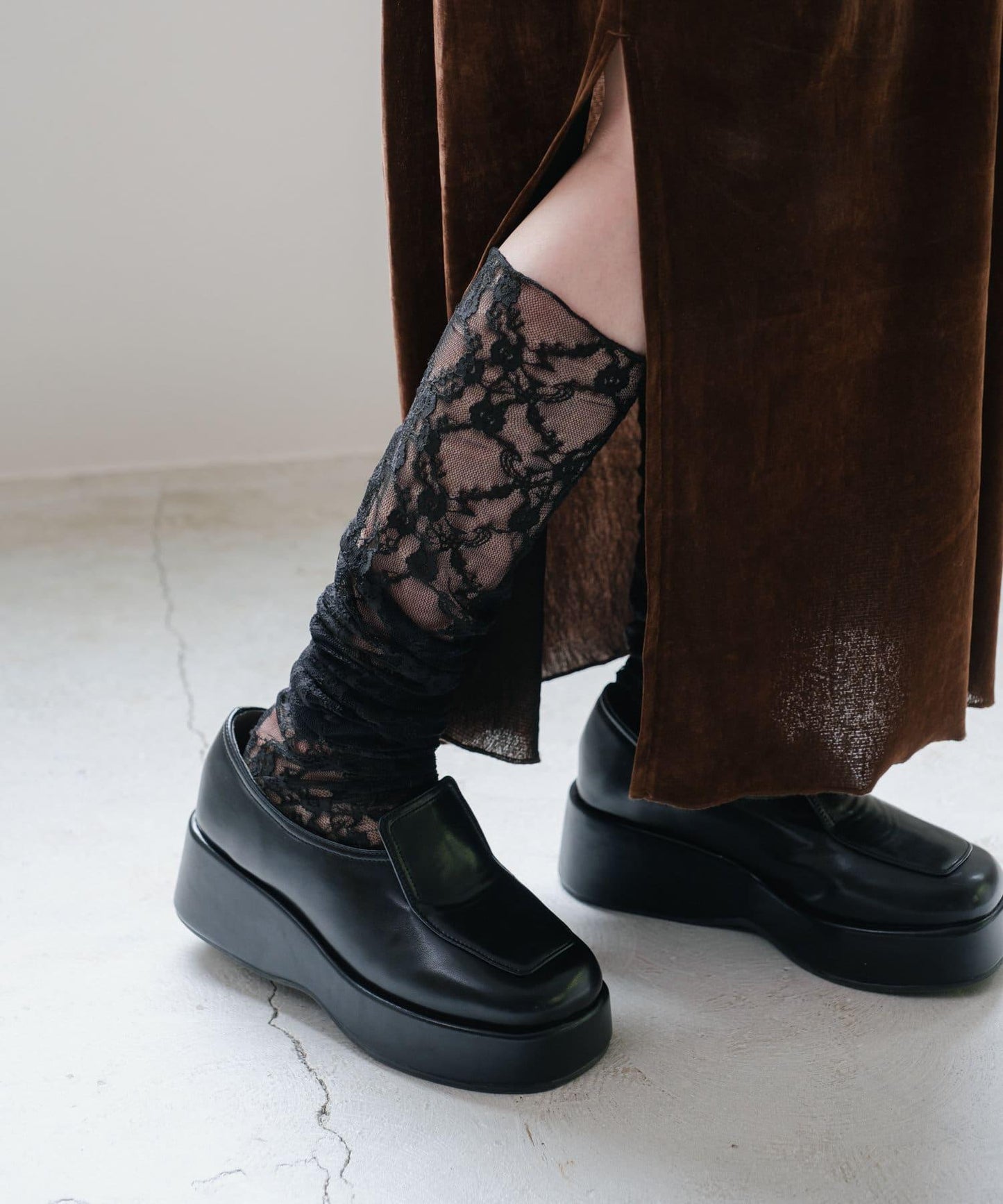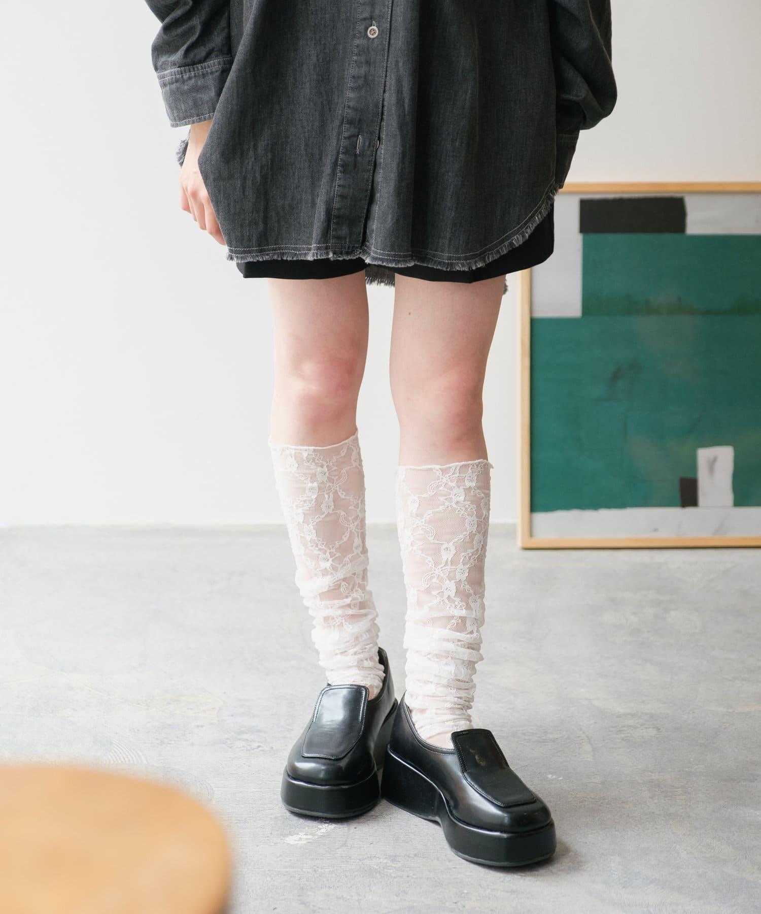蕾絲襪子為造型加分。