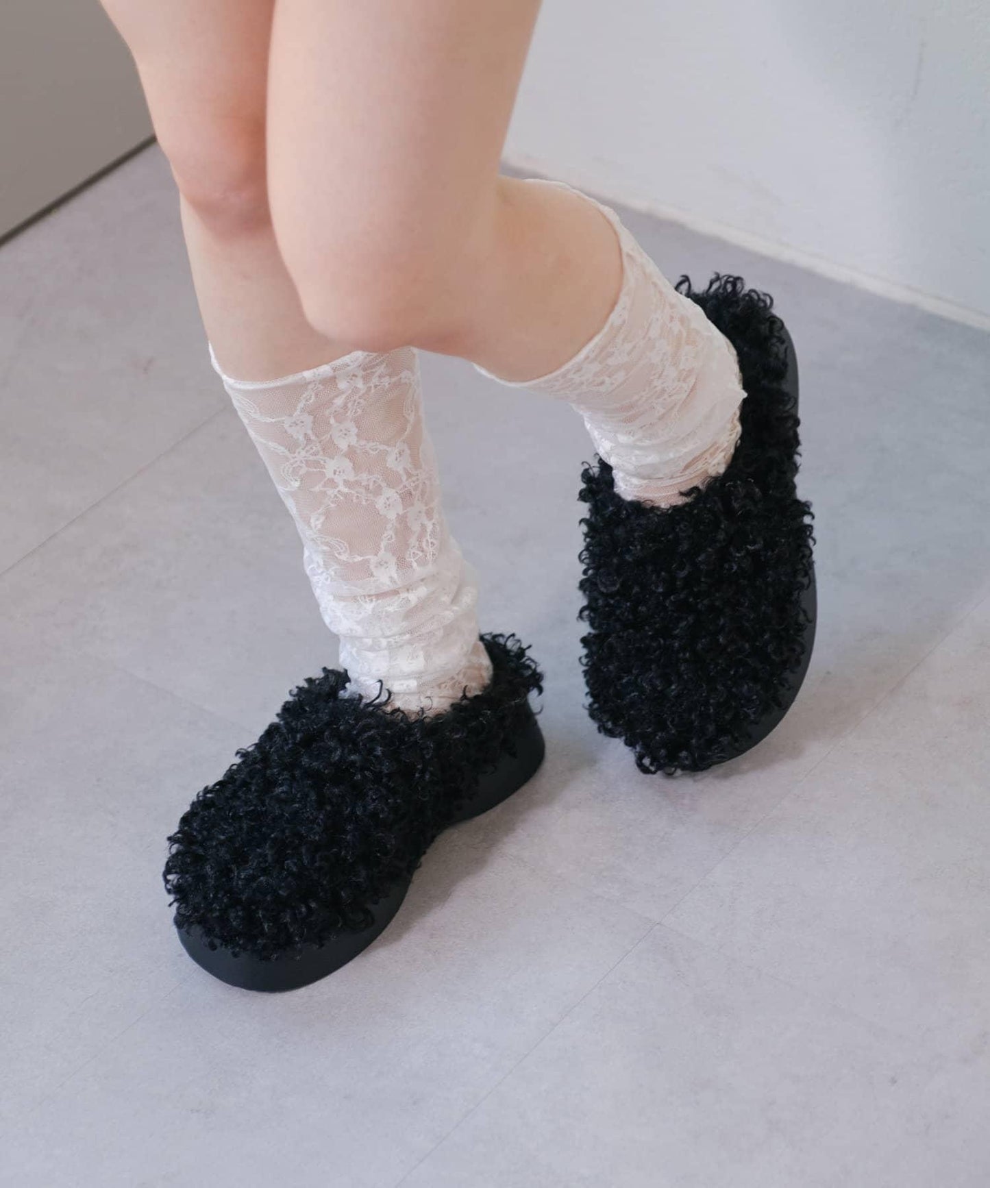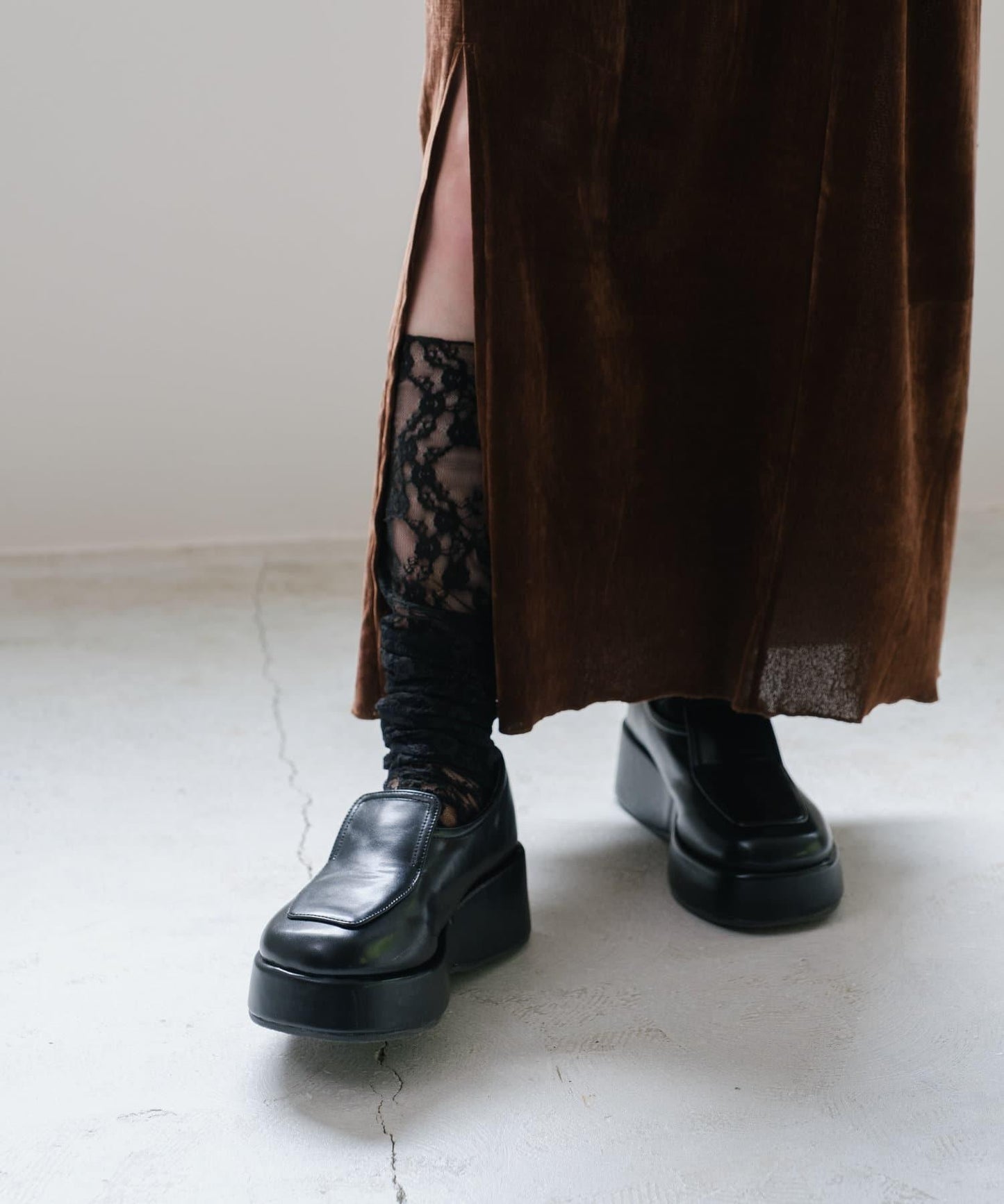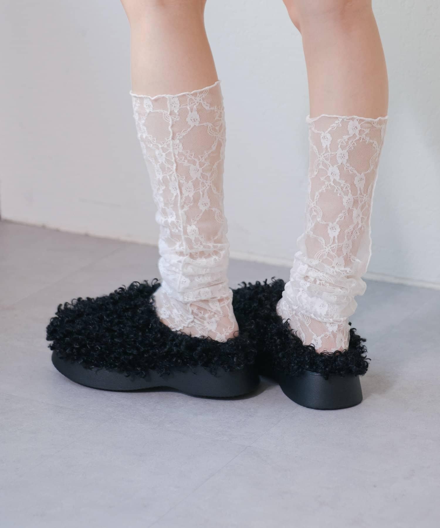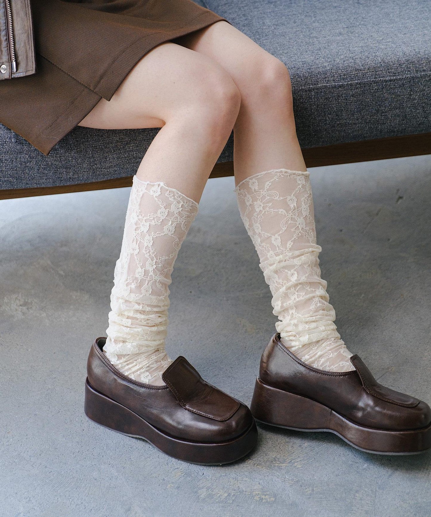 蕾絲襪子為造型加分。