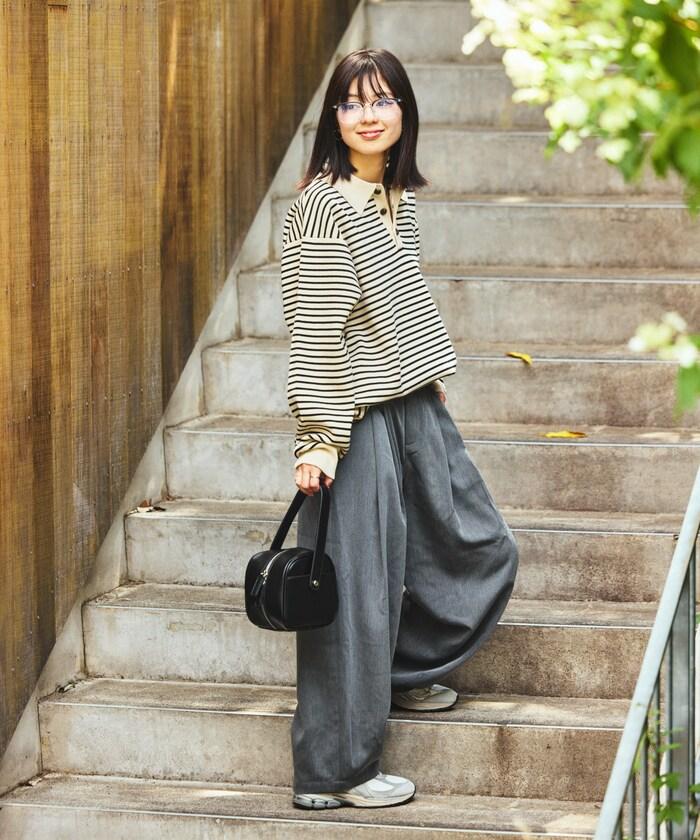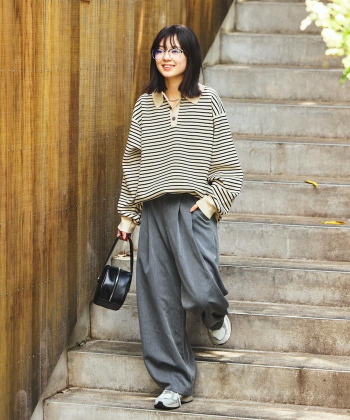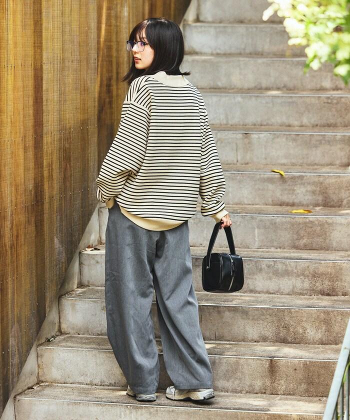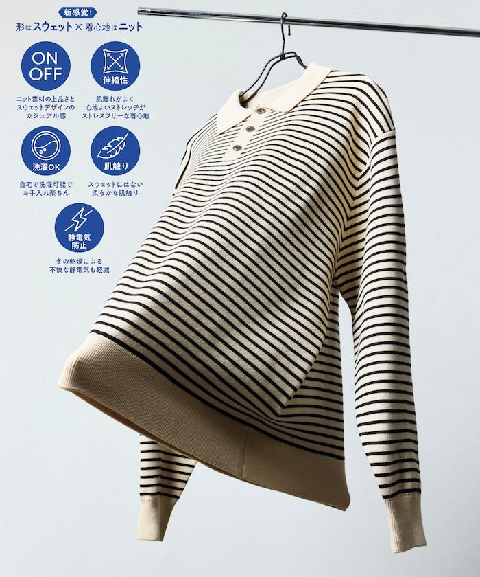 條紋圖案融入 12 號針織面料中,使其具有良好的存在感和休閒感。