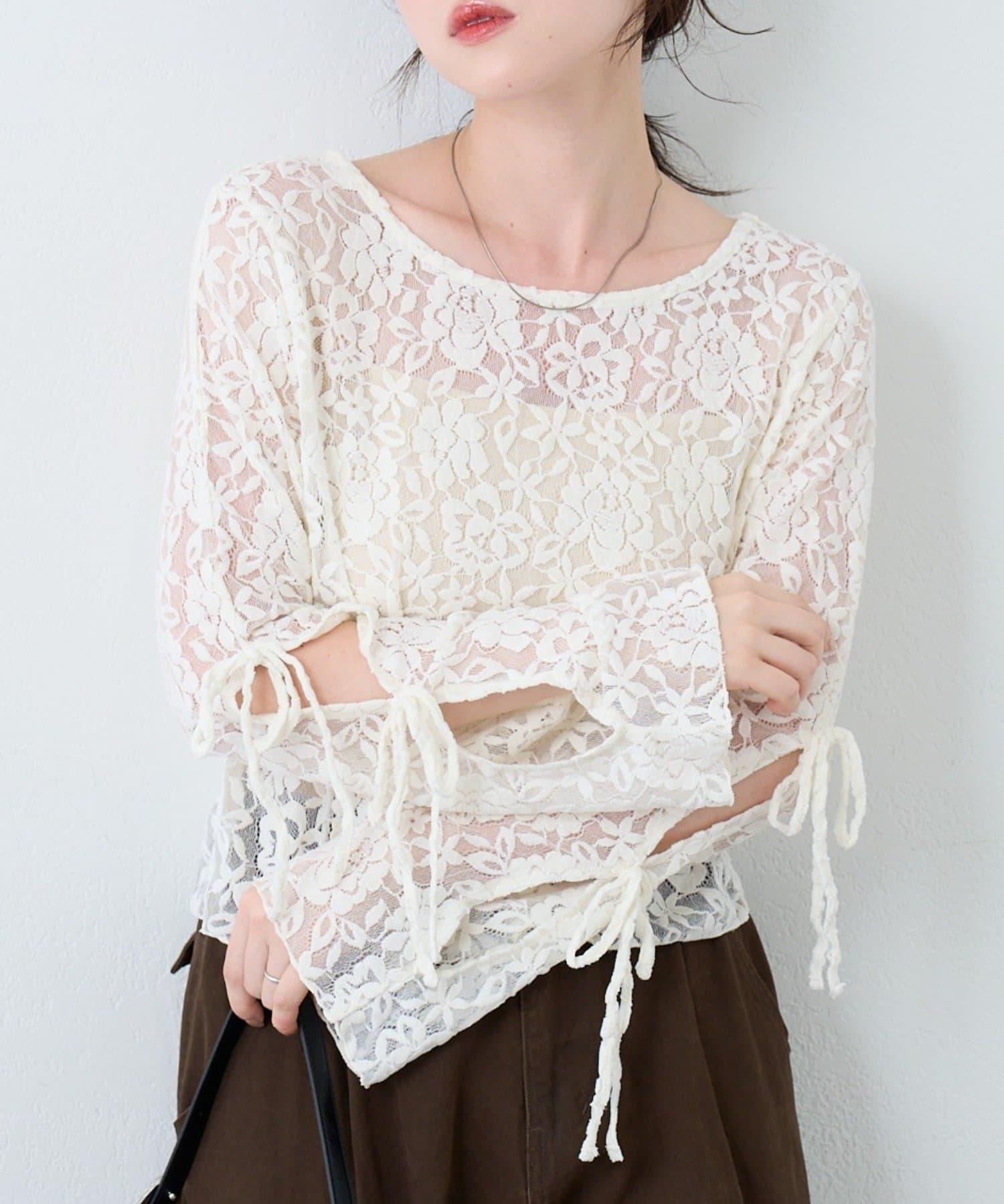 袖部鏤空蕾絲套頭衫