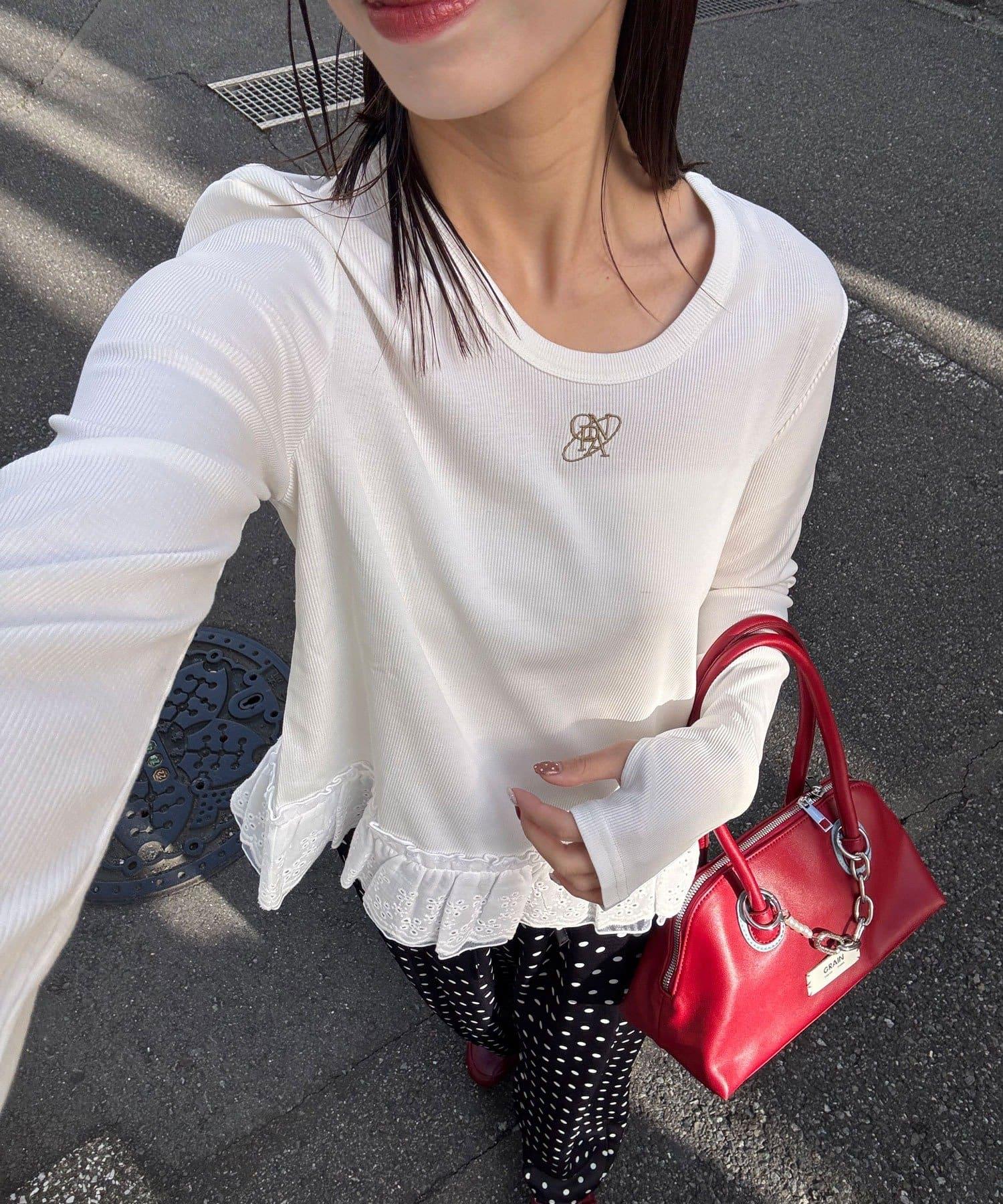 裾レースストレッチリブトップス