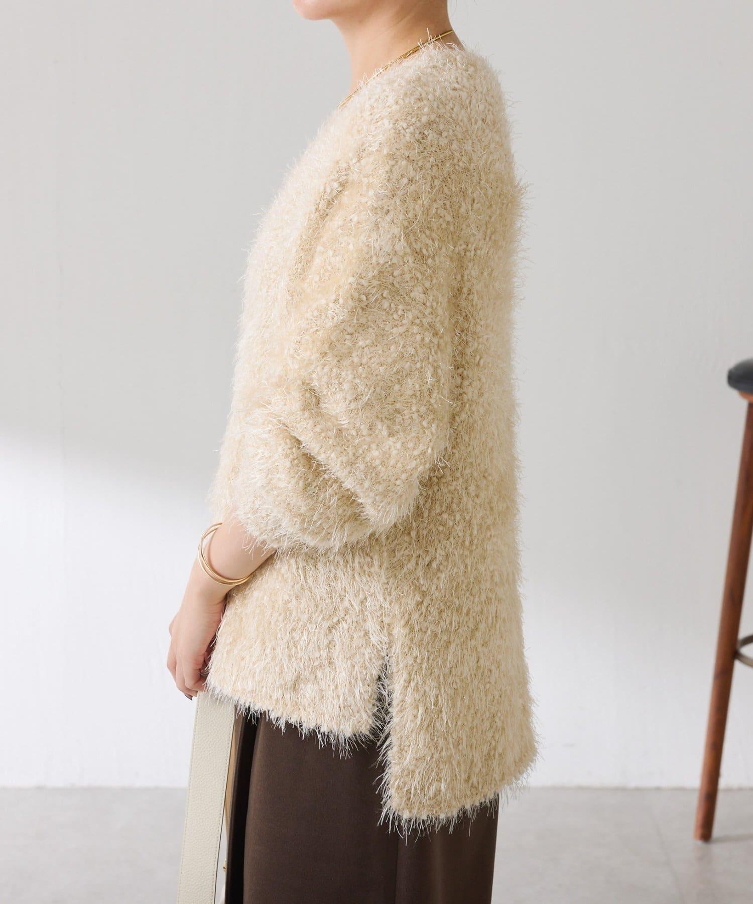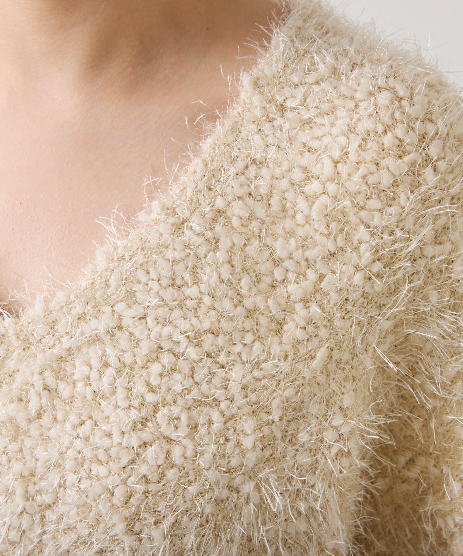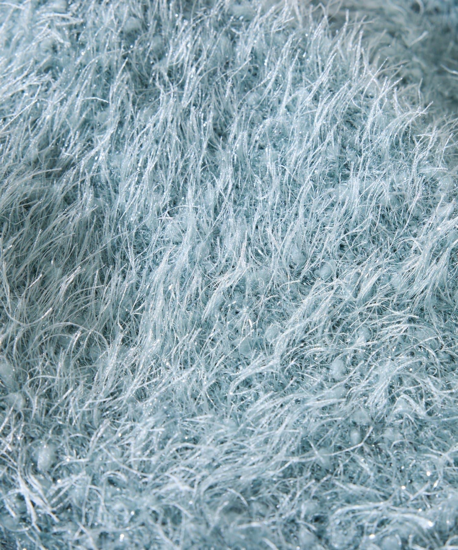 閃亮蓬鬆的華麗針織面料。衣領部位用蓬鬆的燈籠辮收緊。