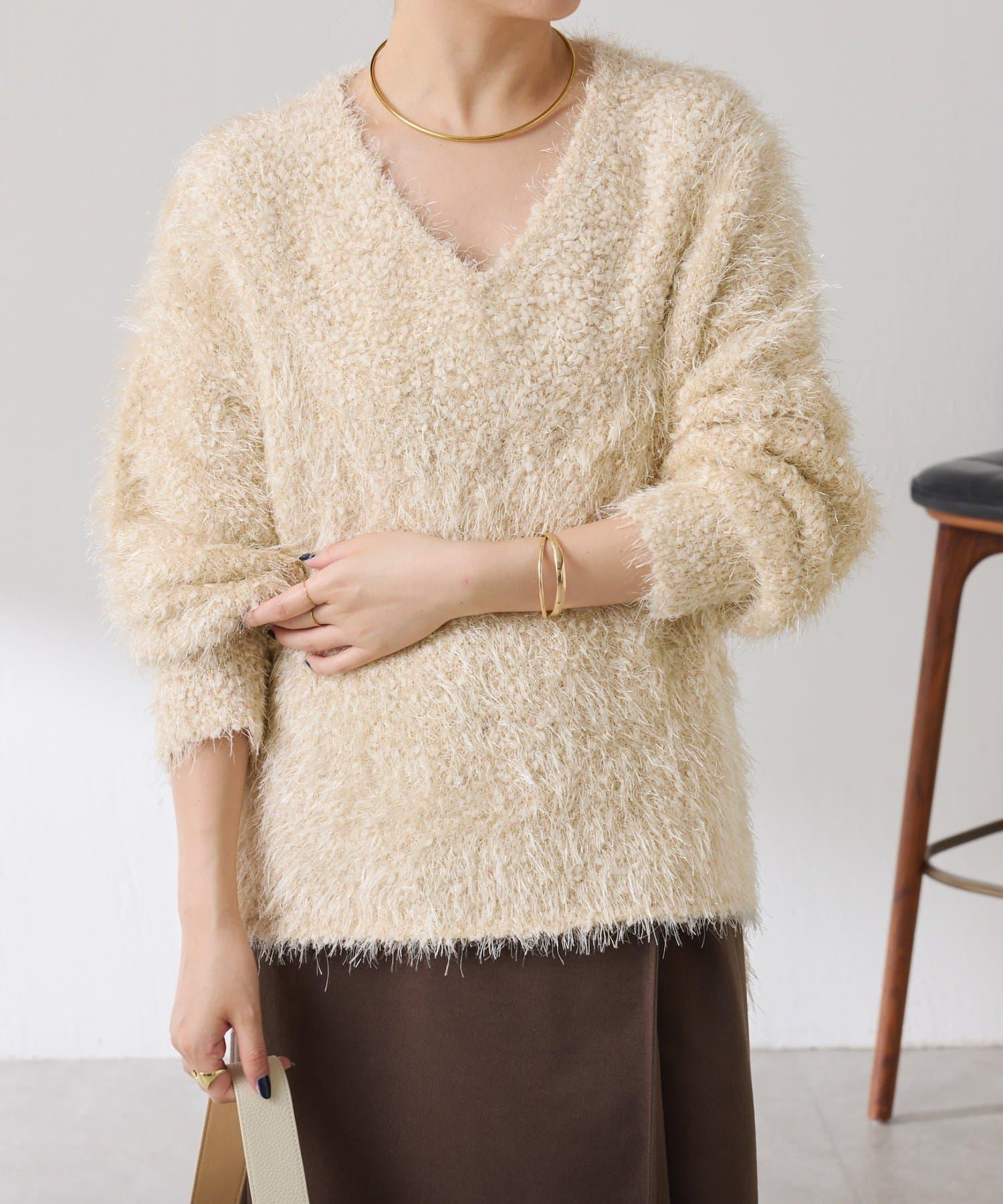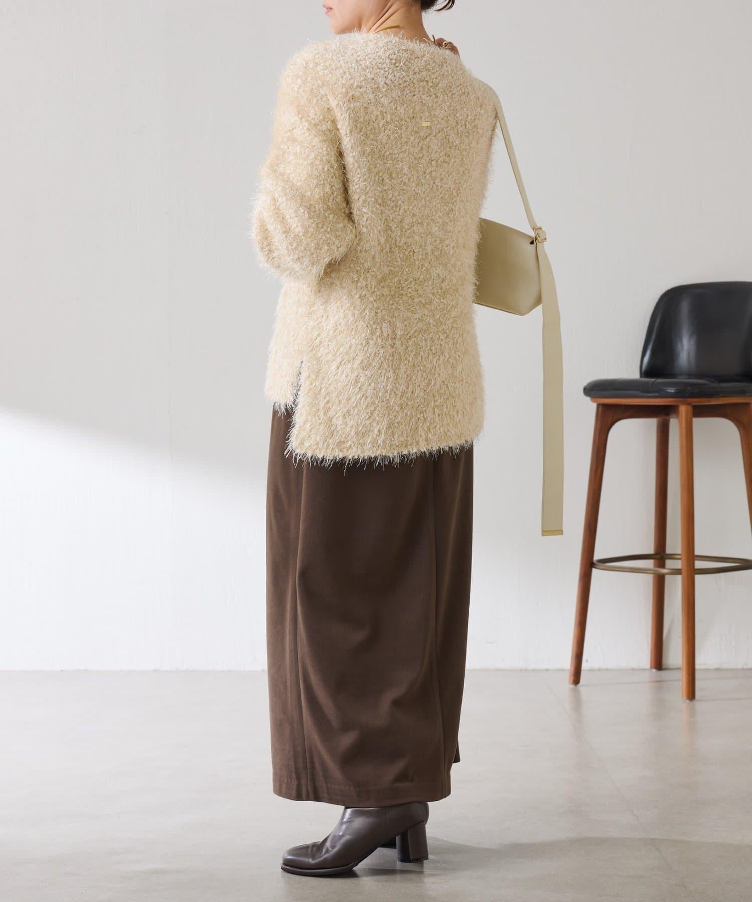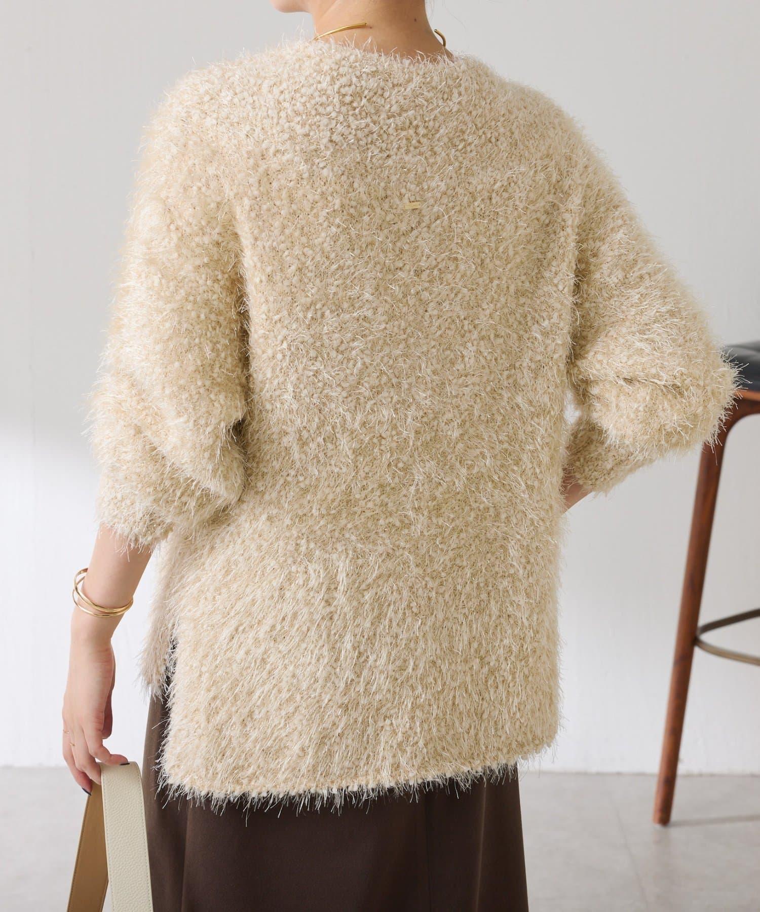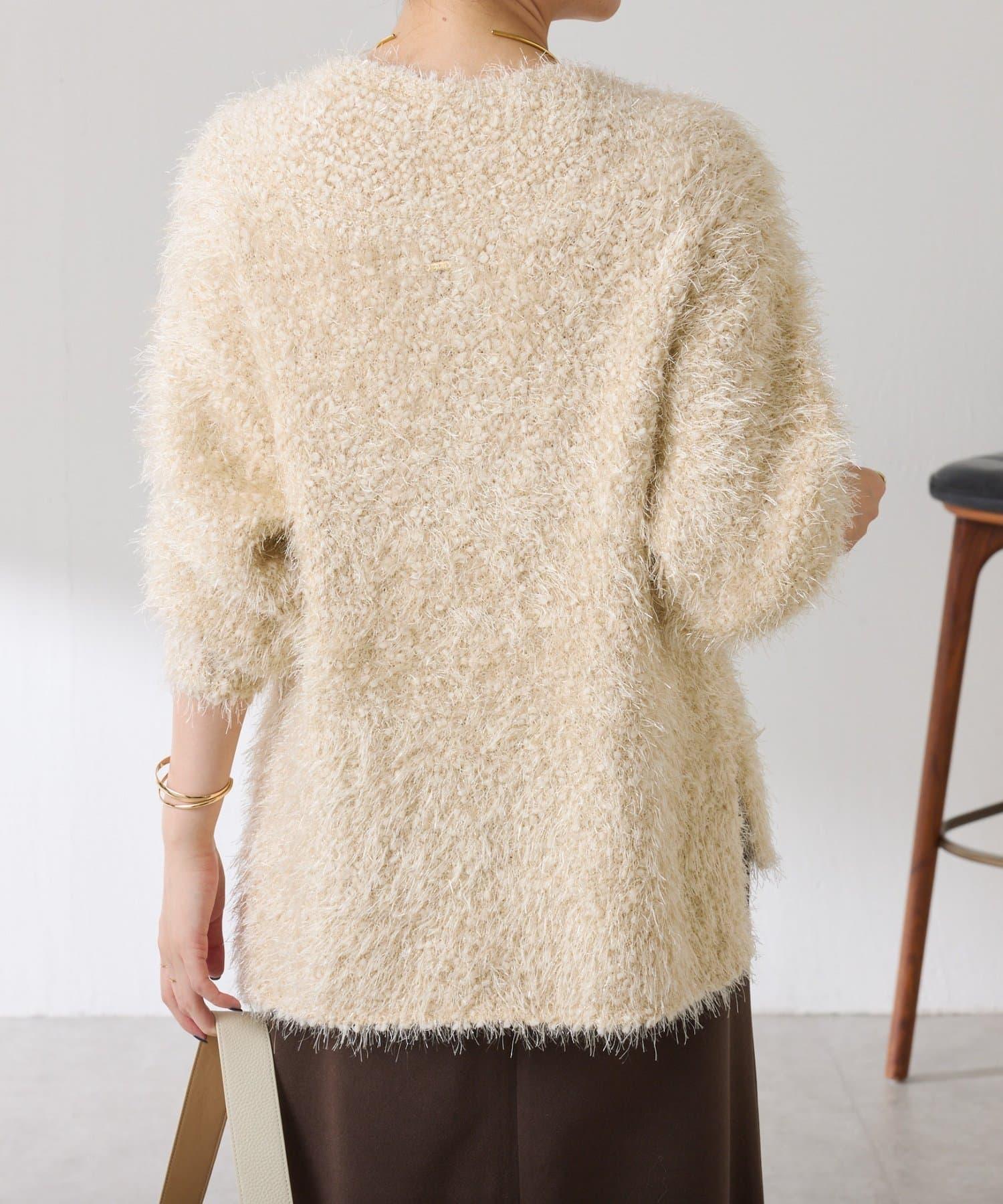 閃亮蓬鬆的華麗針織面料。衣領部位用蓬鬆的燈籠辮收緊。