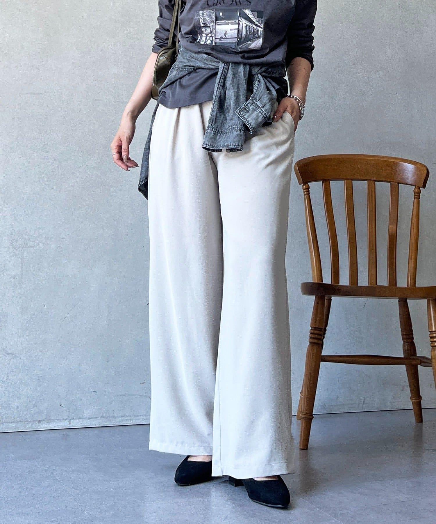 裁剪考究的喬其紗寬長褲,具有接觸式降溫功能,易於打理,抗皺。