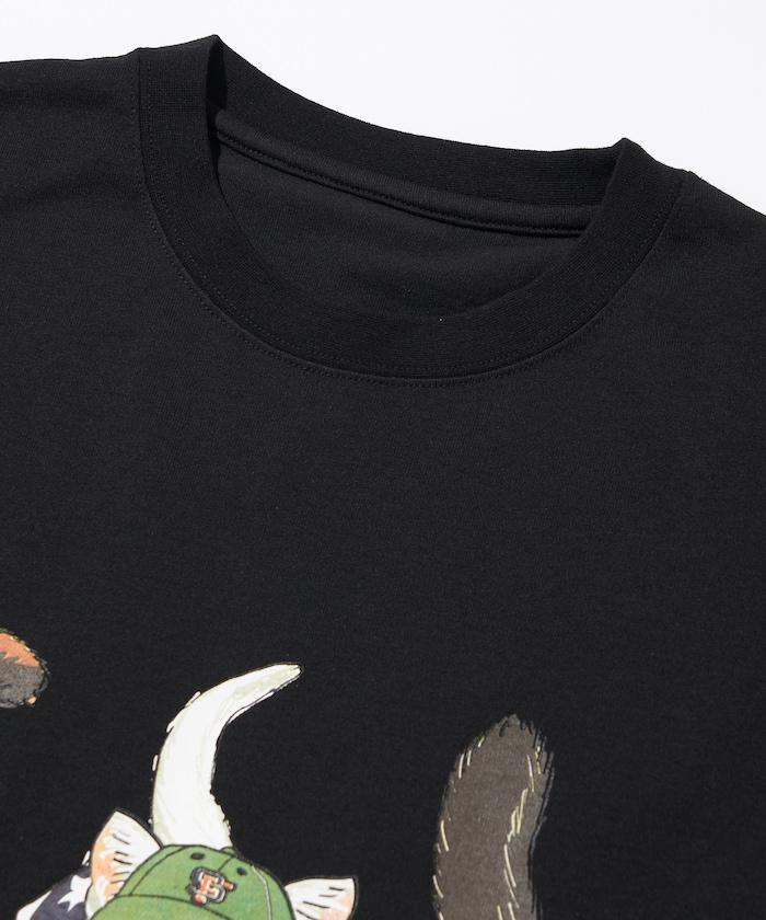 輕鬆休閒合身雙面印花圓領T恤 / 三隻貓