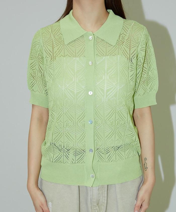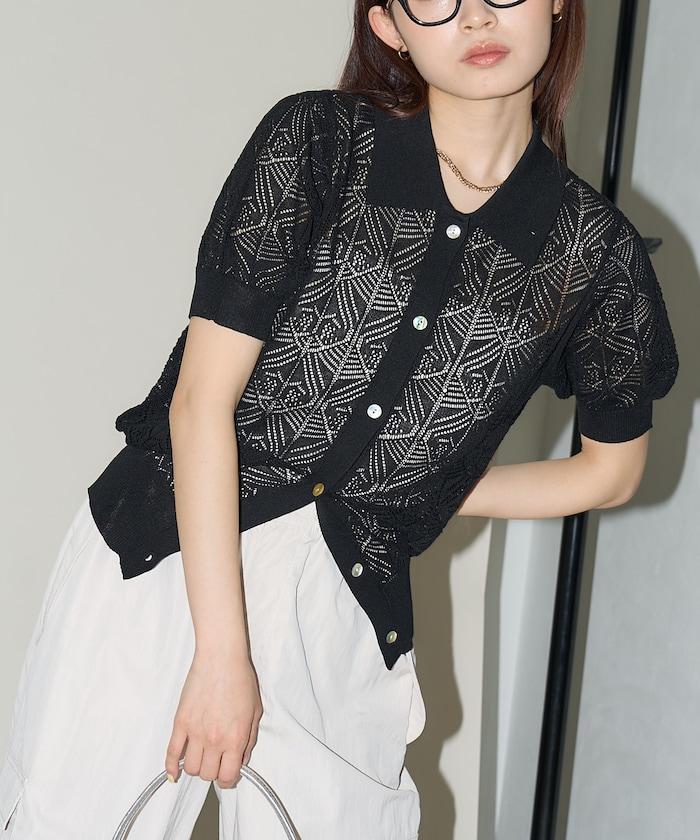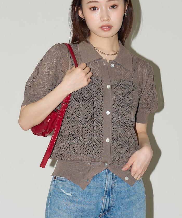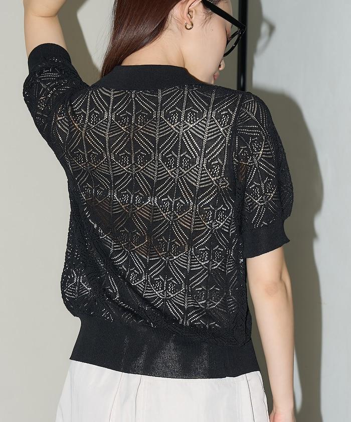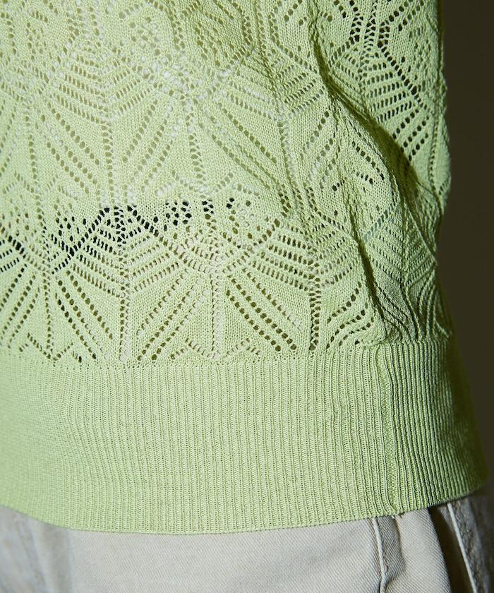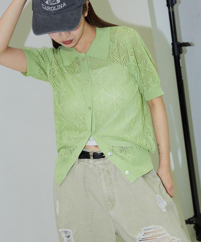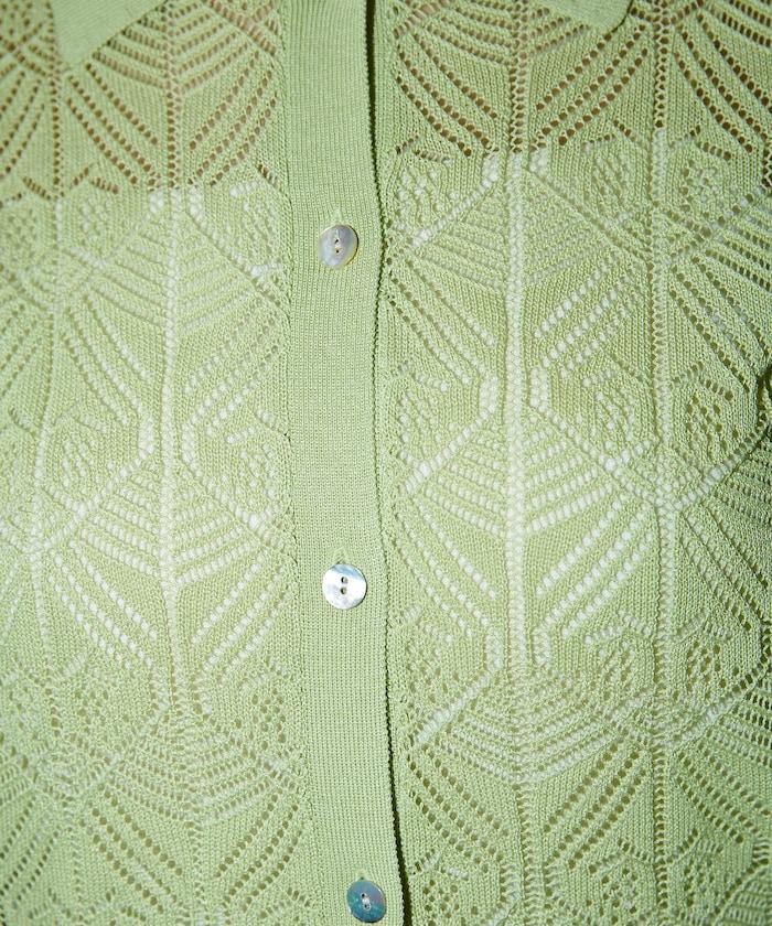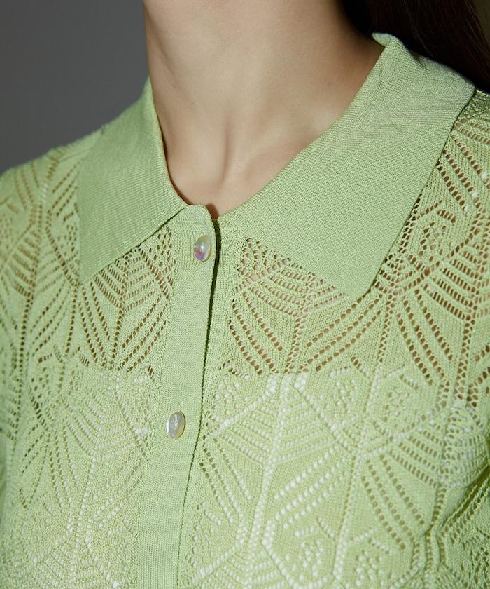 這款針織 polo 開衫採用了引人注目的鏤空設計。