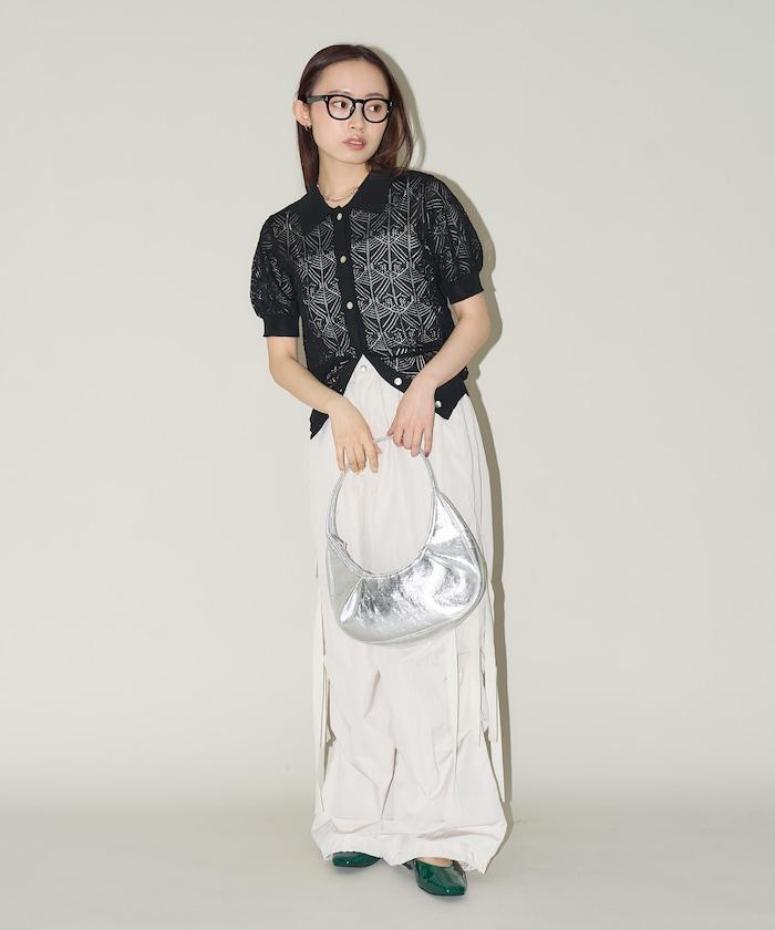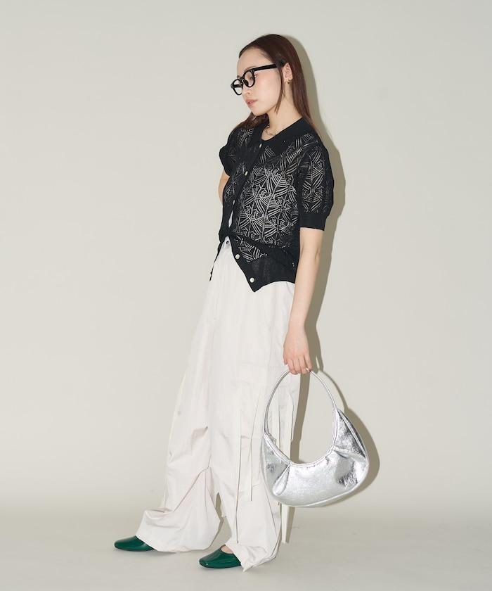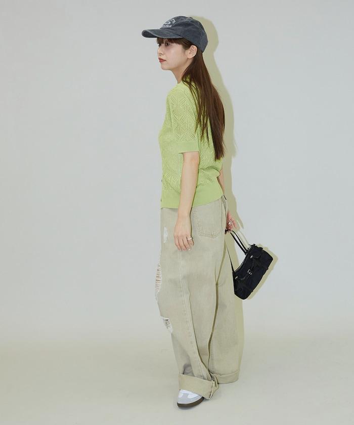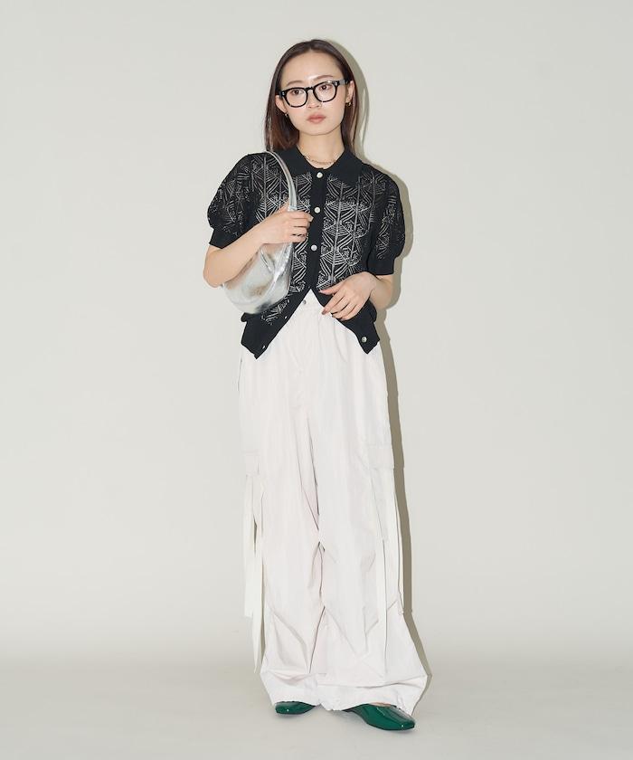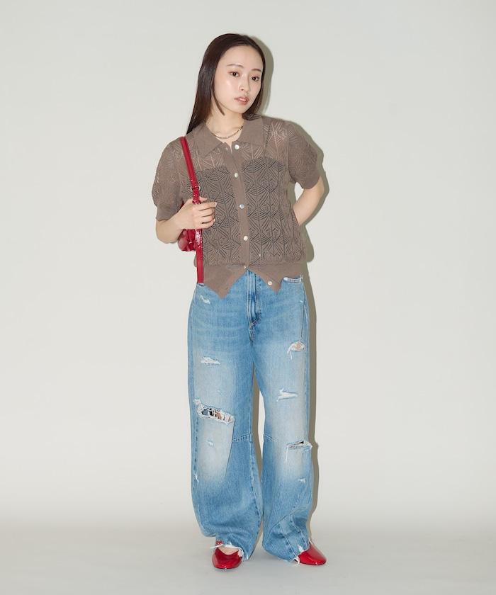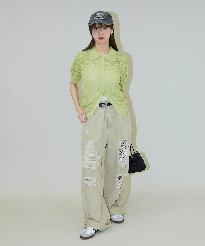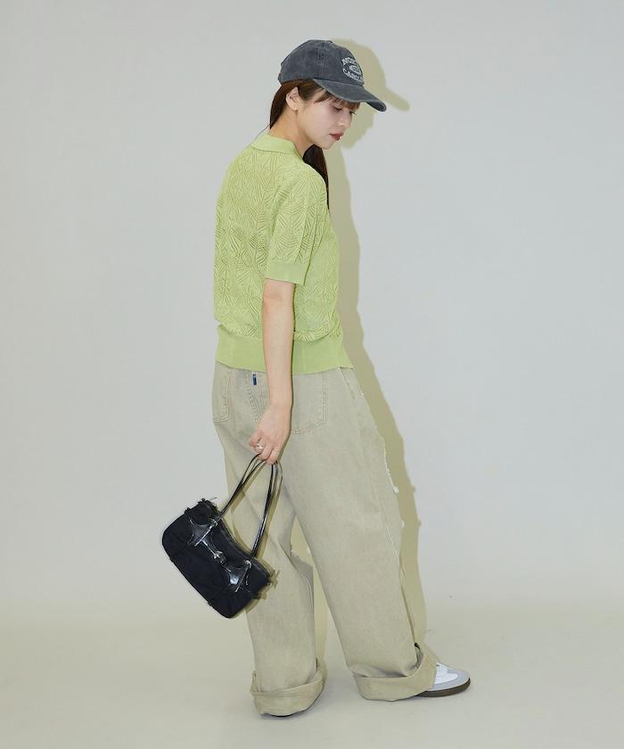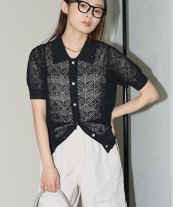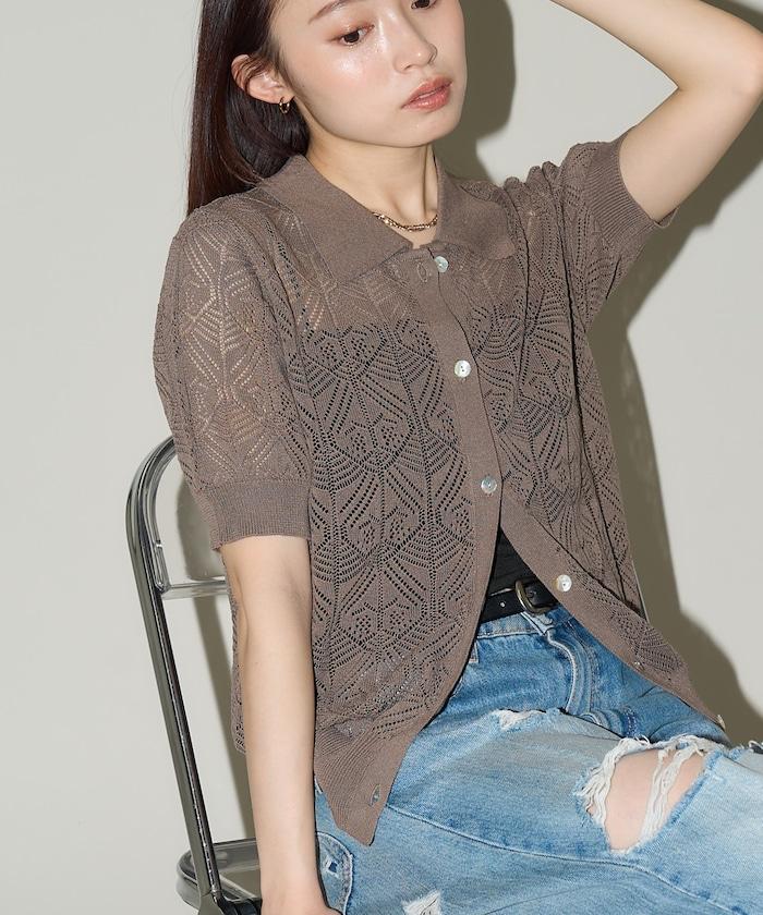 這款針織 polo 開衫採用了引人注目的鏤空設計。