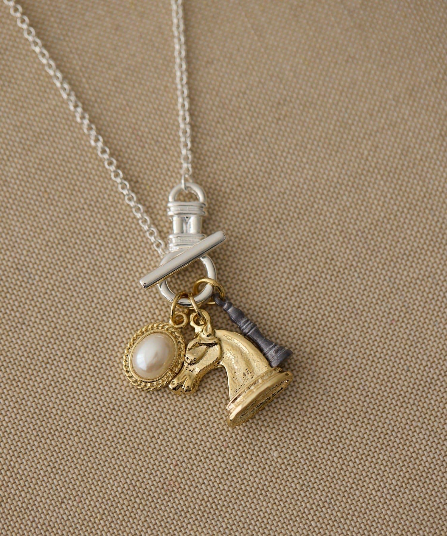 這條醒目的長項鍊以國際象棋棋子為裝飾。