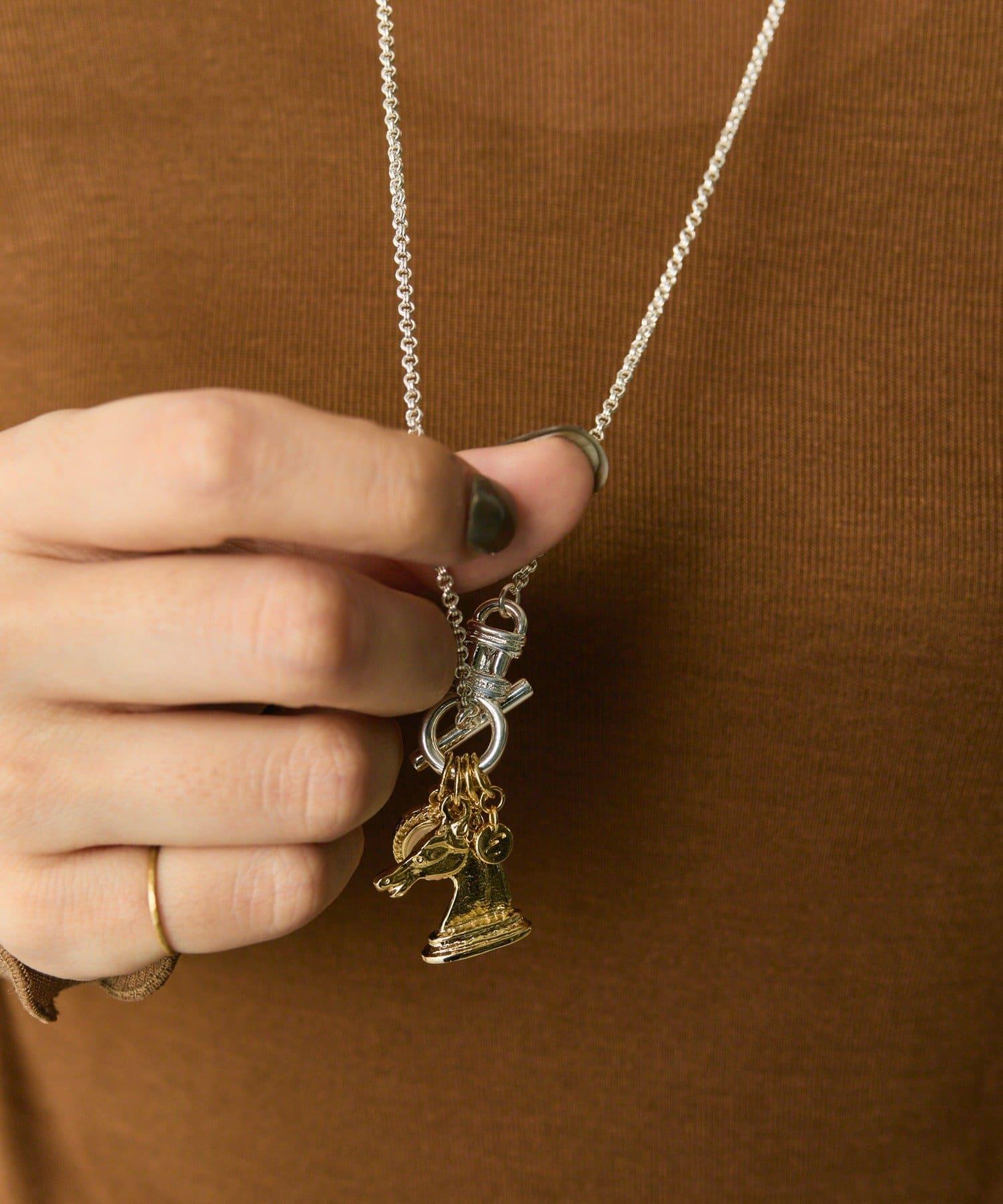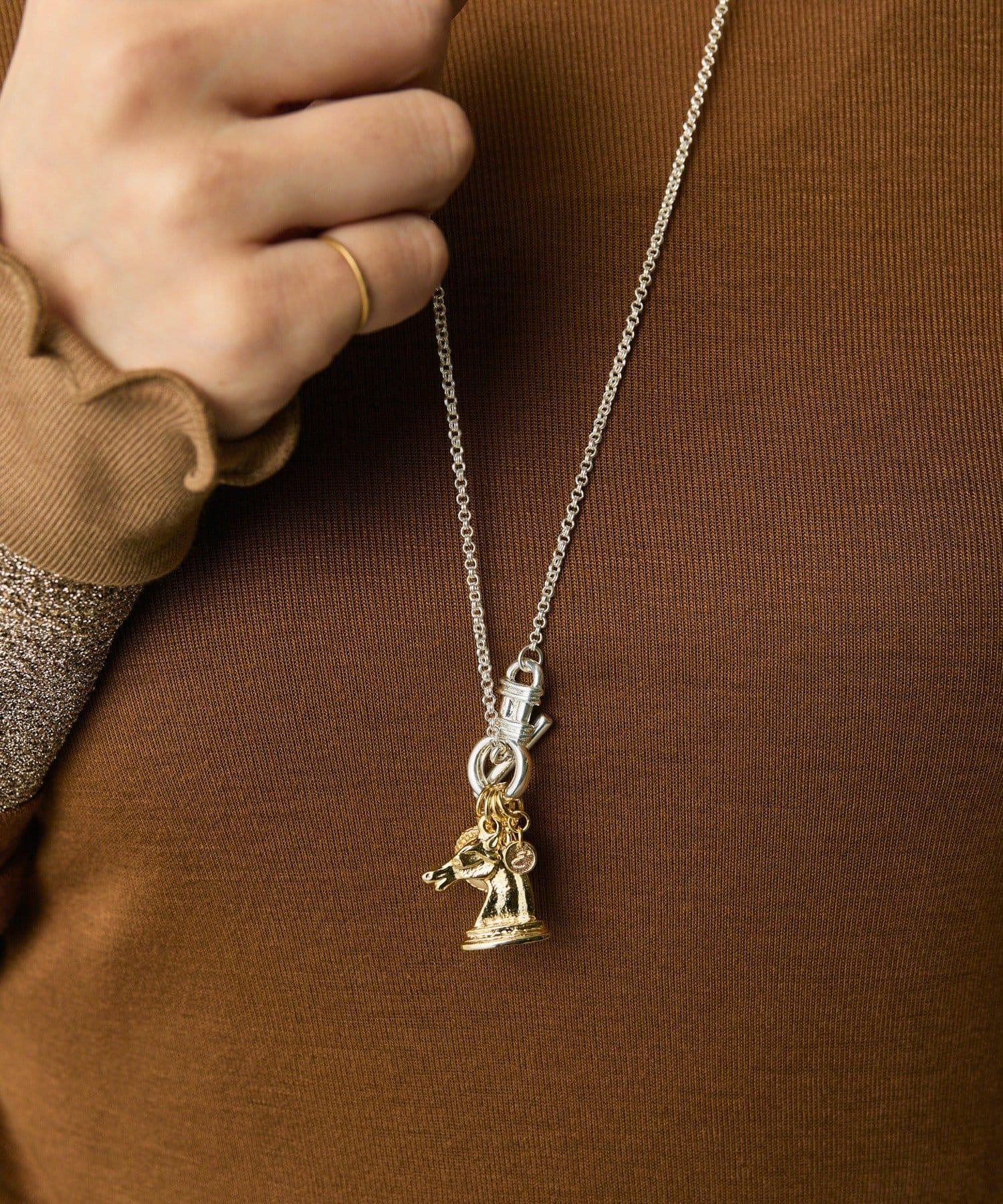 叮噹作響的棋子俏皮可愛,賦予項鍊英倫形象,但也可隨意佩戴。