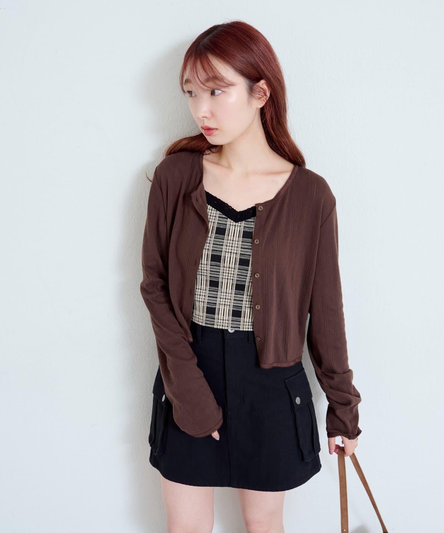 帶罩杯的格紋吊帶衫,可放心單穿。