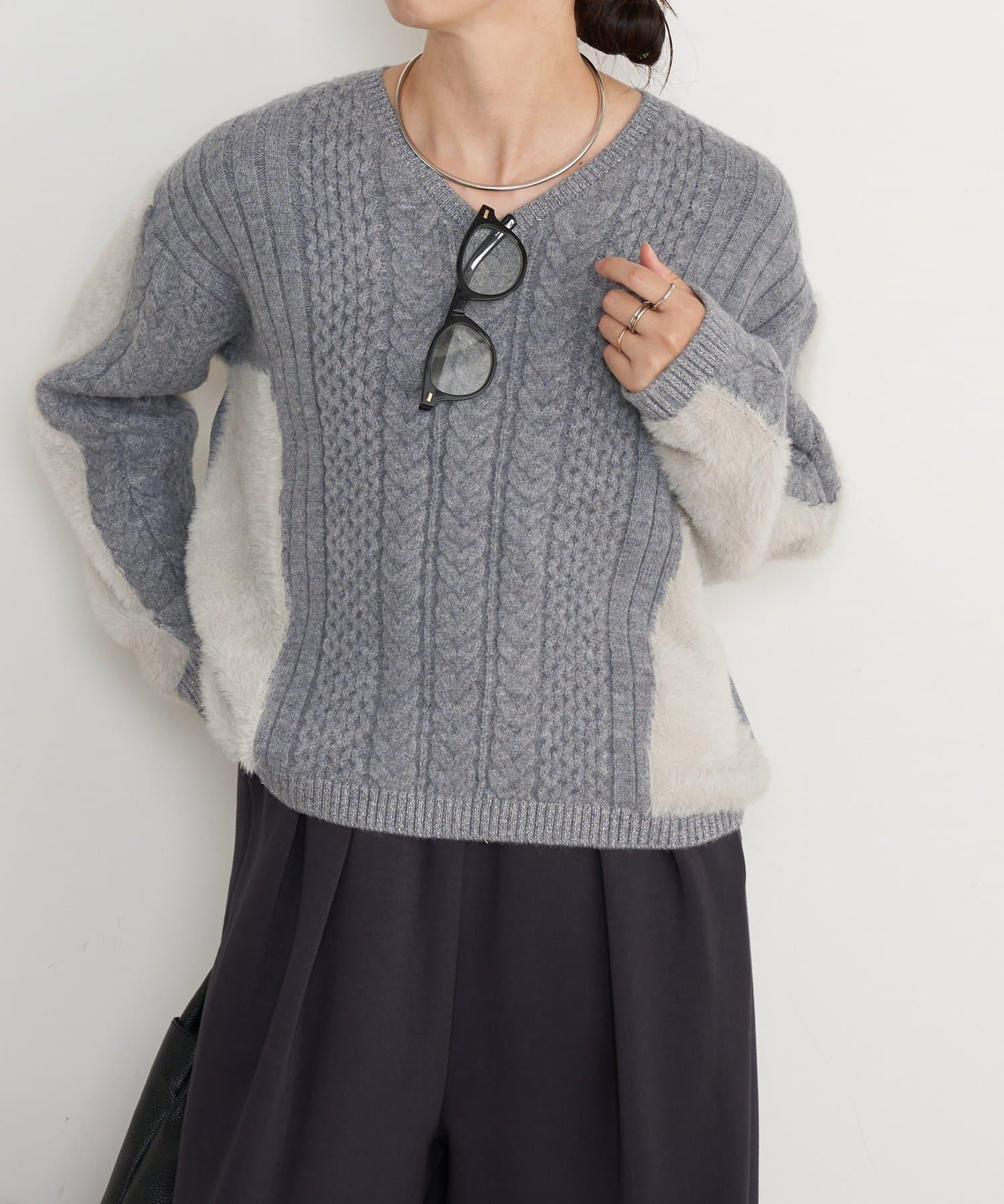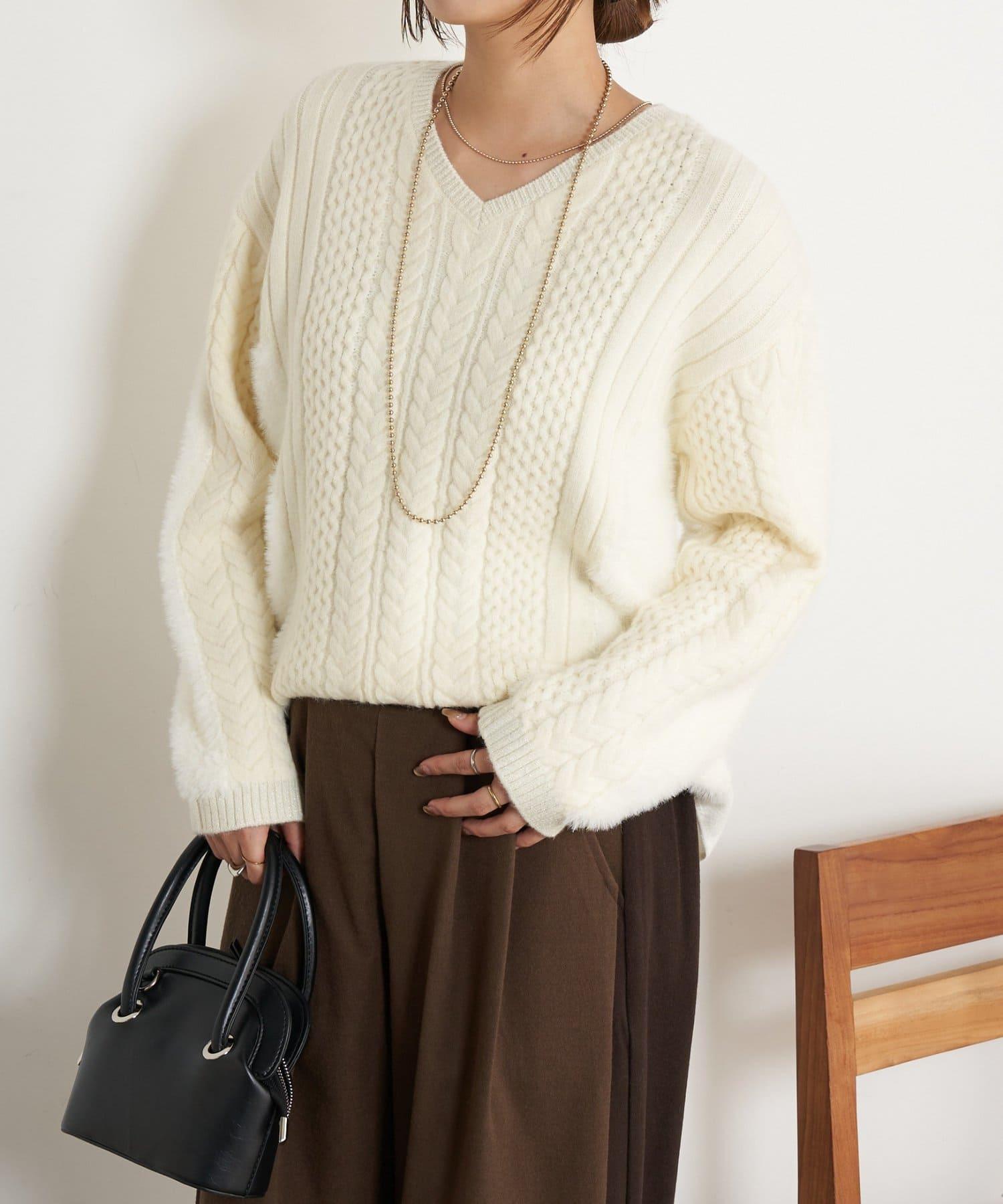 一款針織衫,採用電纜針織和薄片絨毛設計,讓您只穿一件就能盡顯華麗。