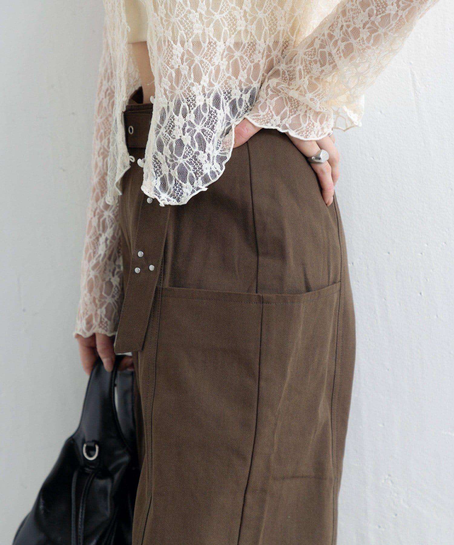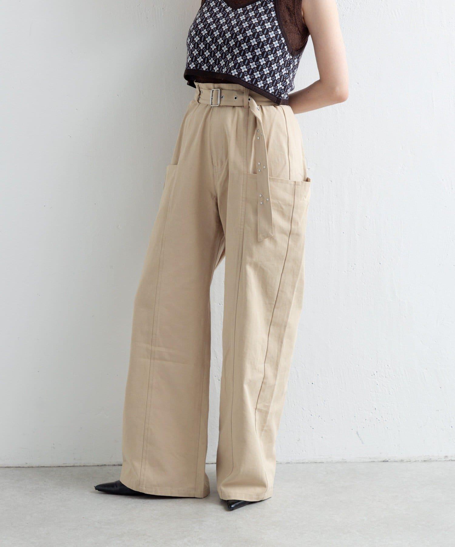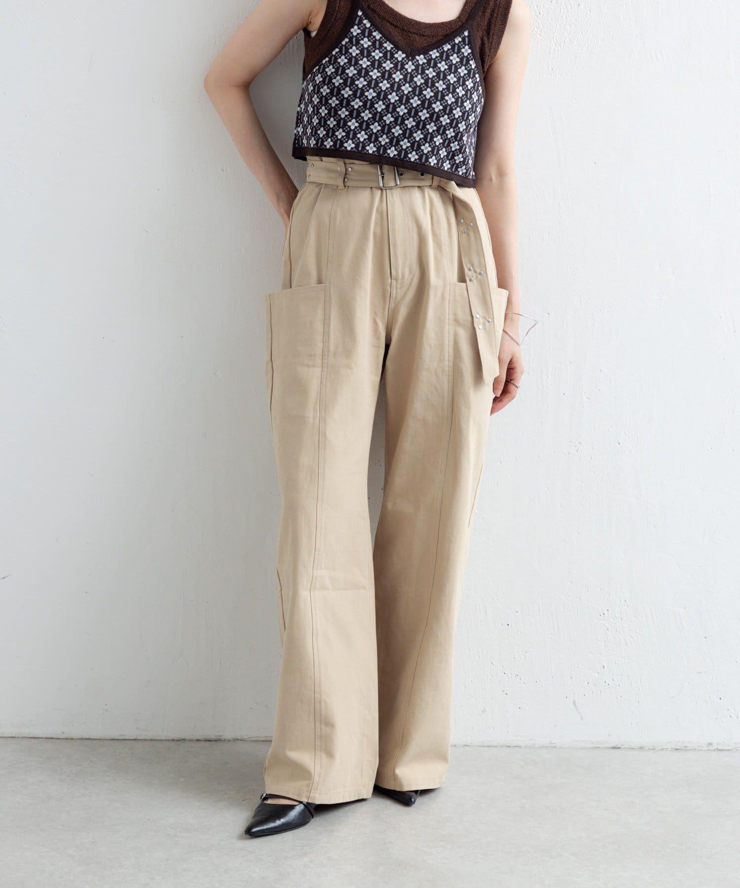腰帶上的鉚釘為簡潔的剪裁增添了時尚氣息。