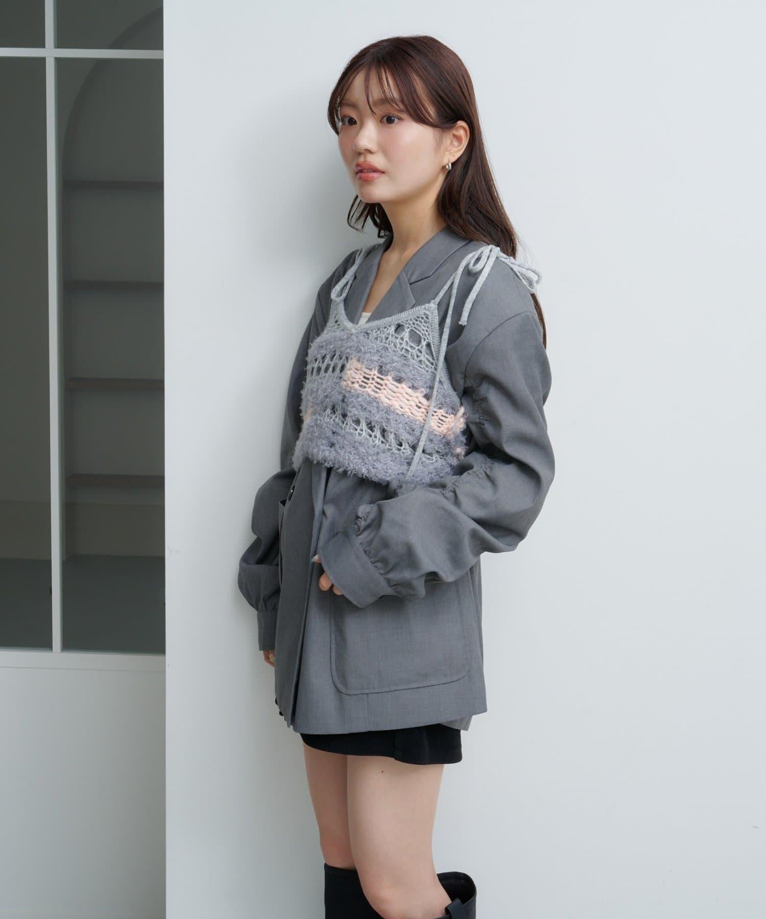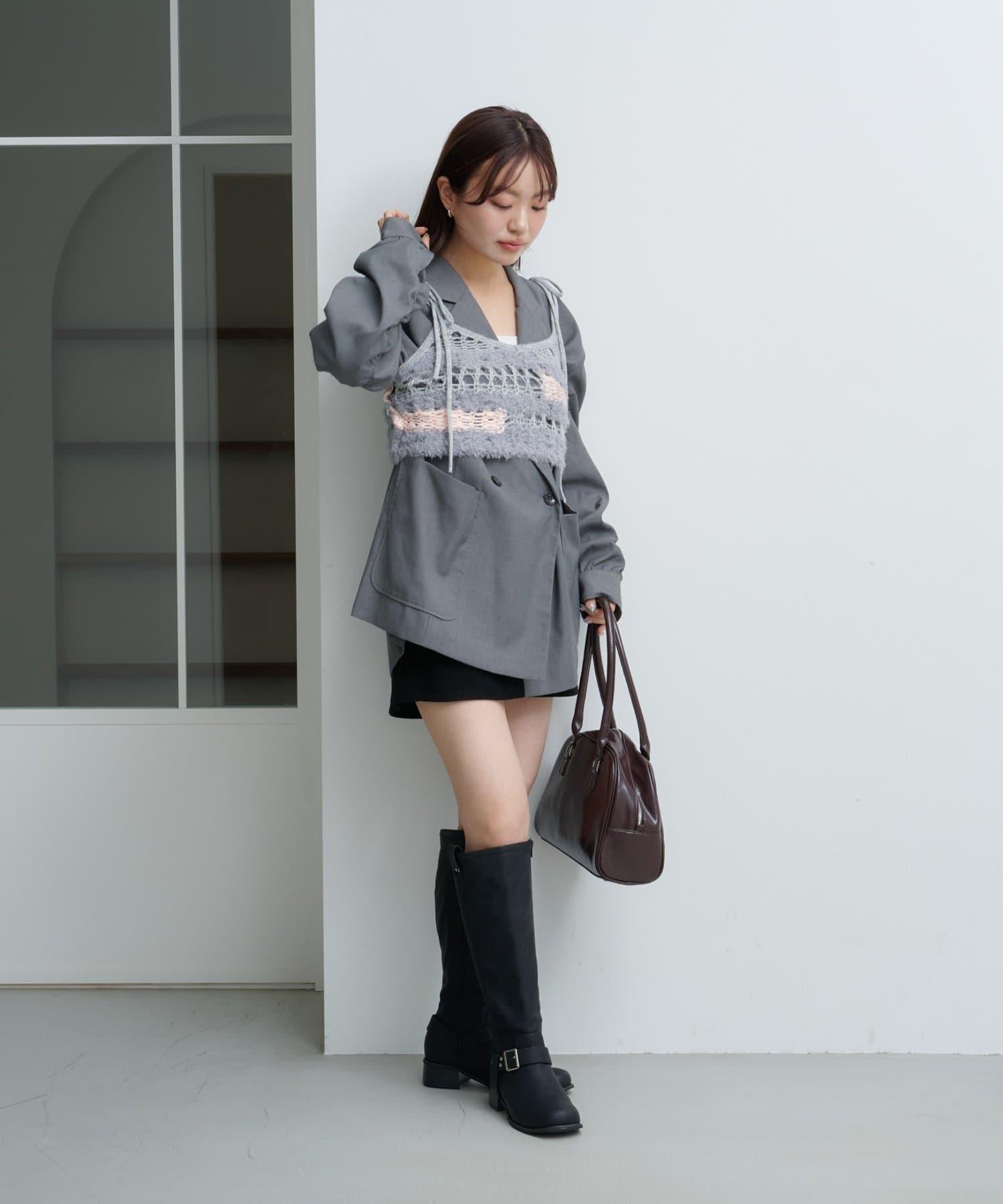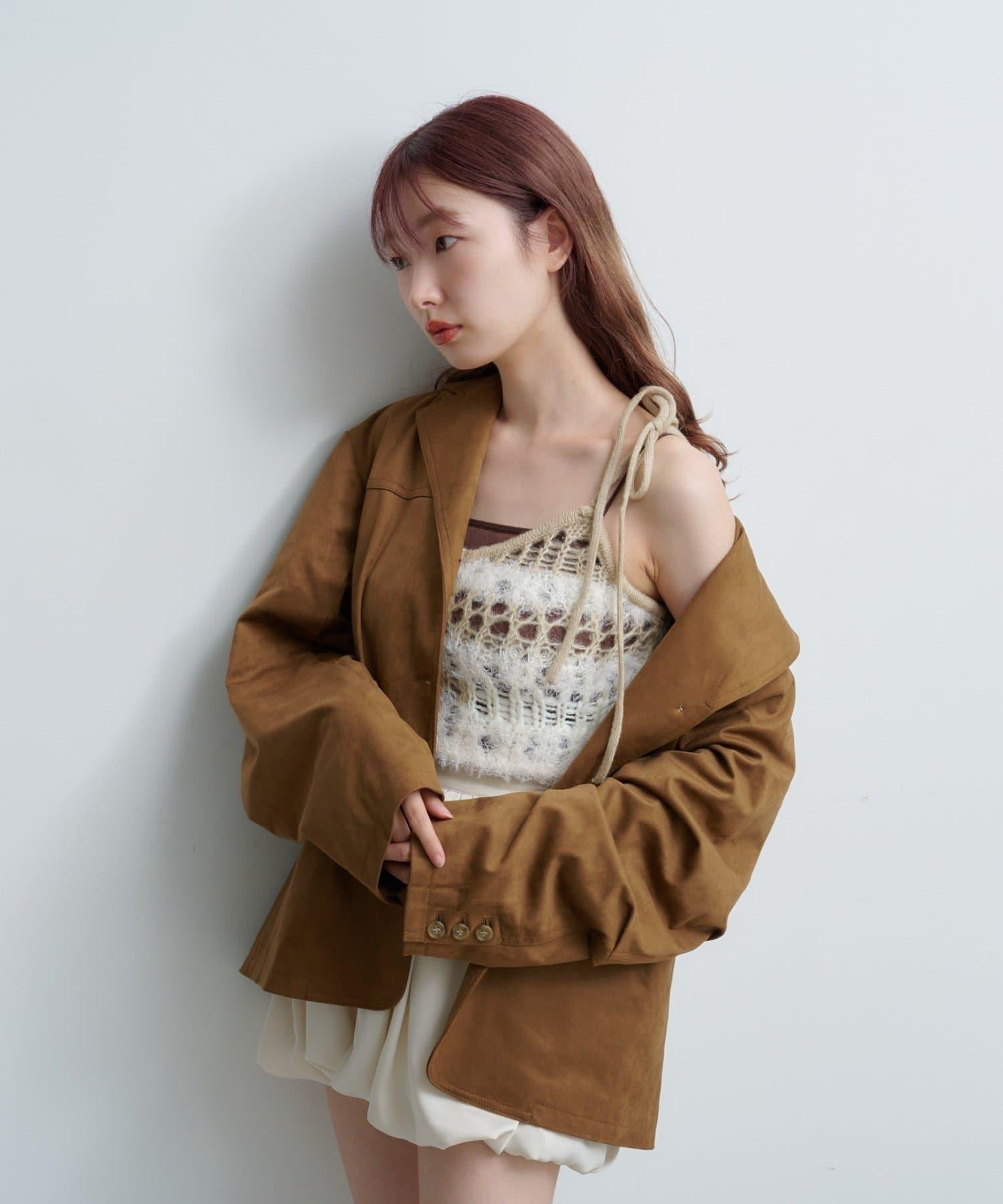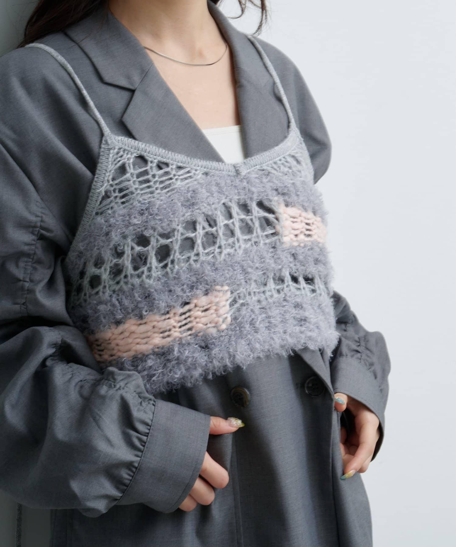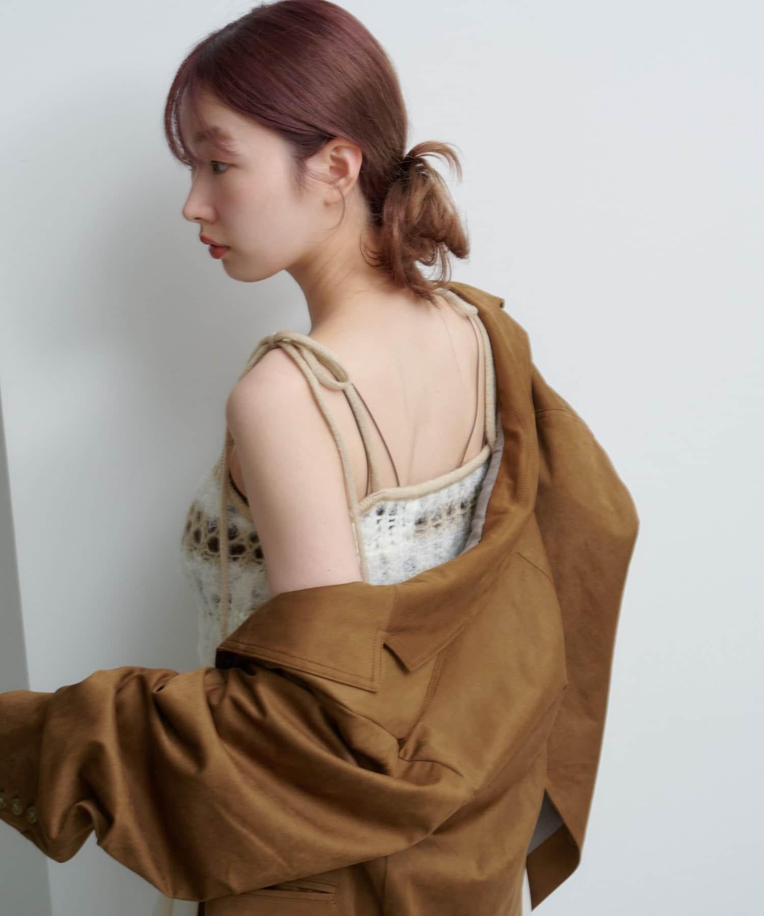 採用類似馬海毛的紗線製成,具有細膩的毛感和輕盈感。