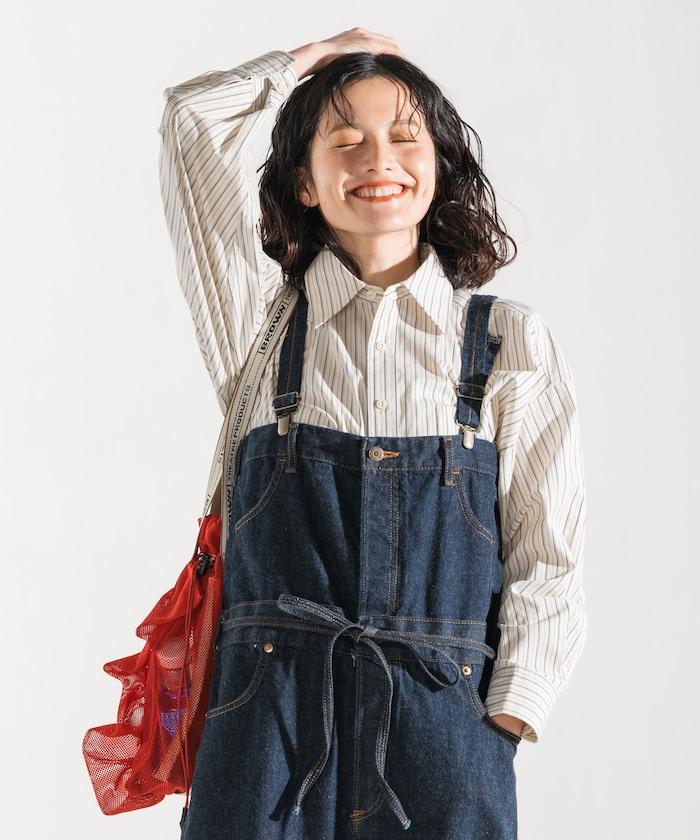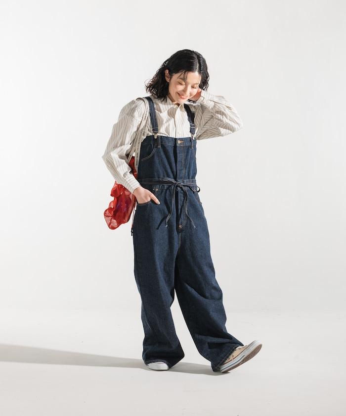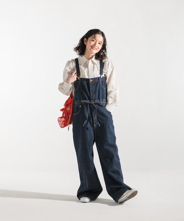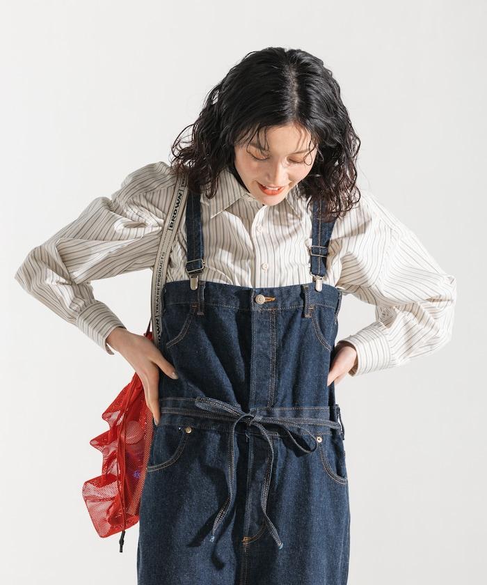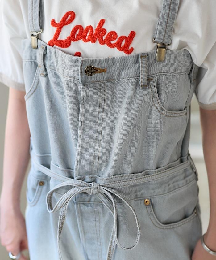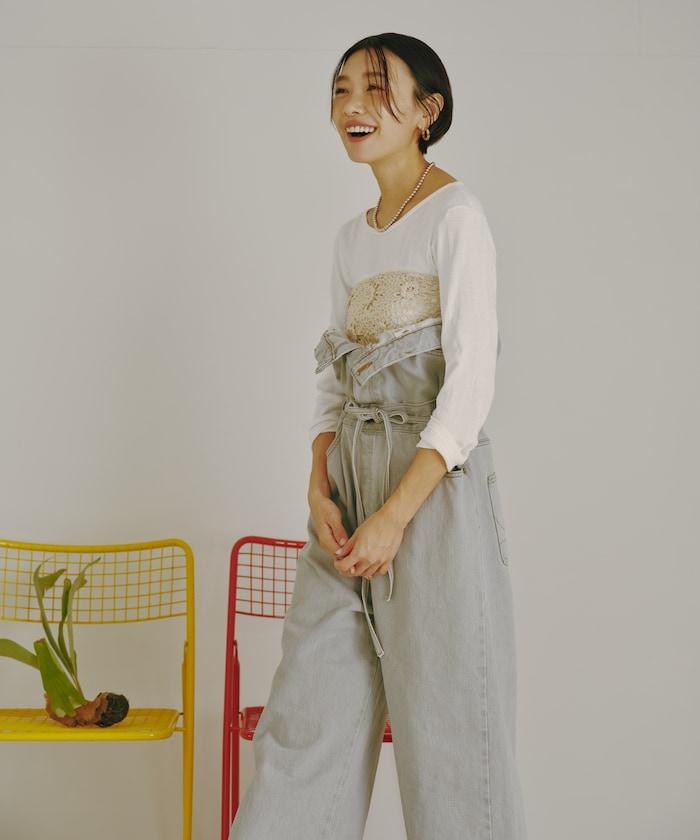 吊帶褲也可以當下裝穿,只要去掉吊帶,讓上半身垂下來,再用繩帶收緊腰部即可。