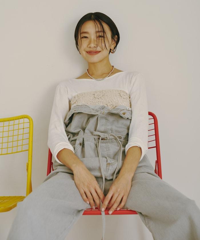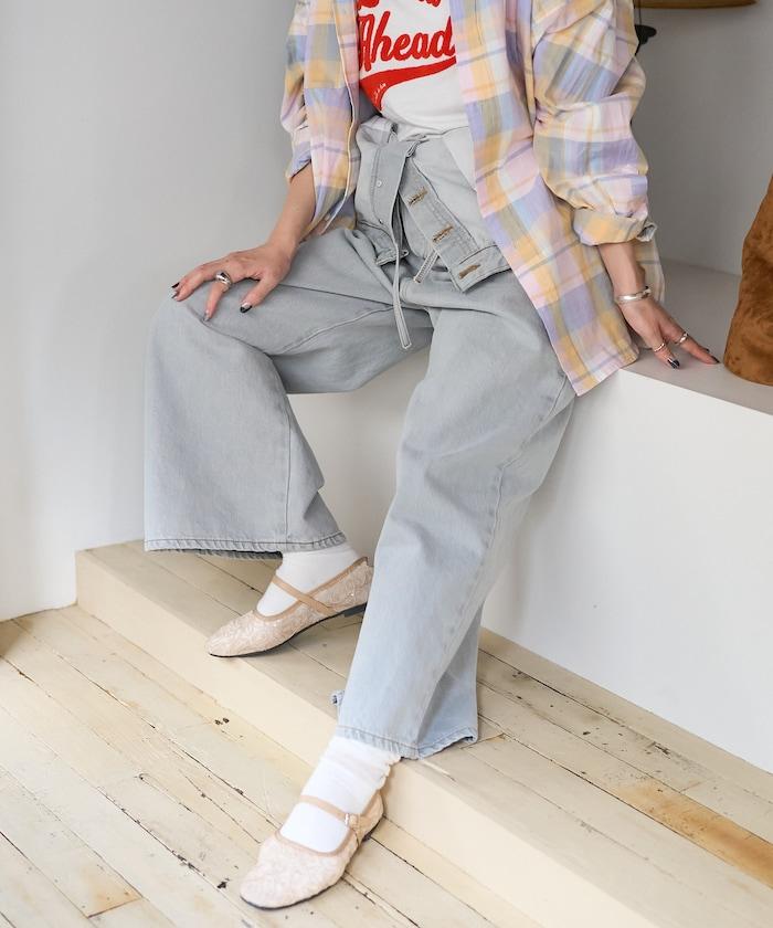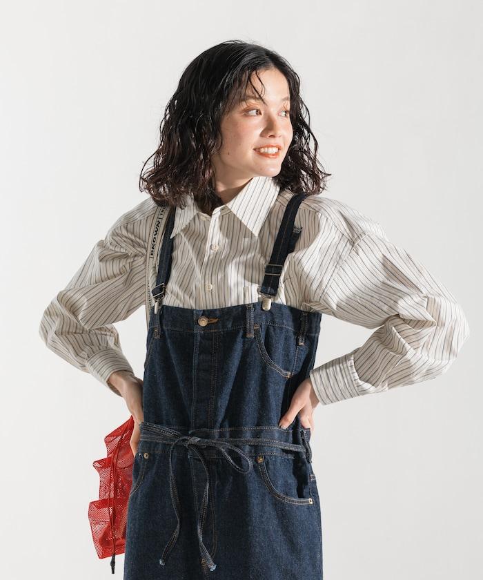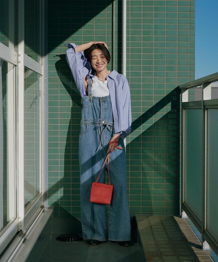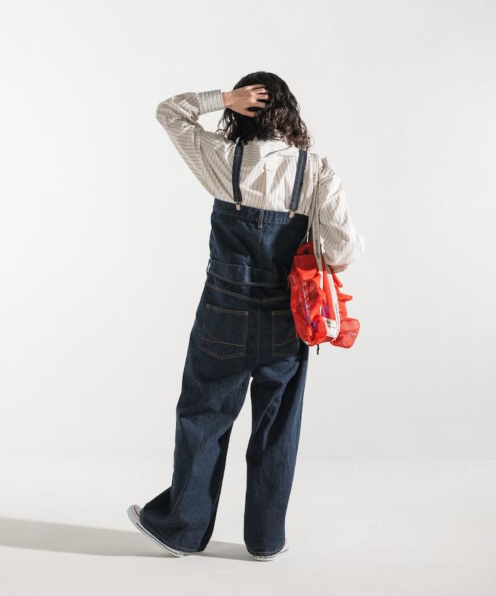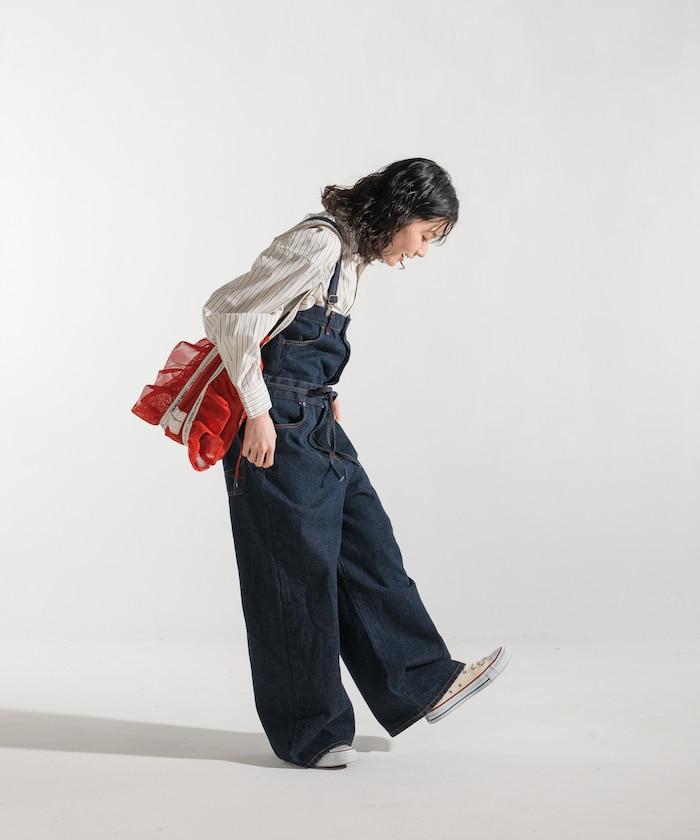 吊帶褲也可以當下裝穿,只要去掉吊帶,讓上半身垂下來,再用繩帶收緊腰部即可。