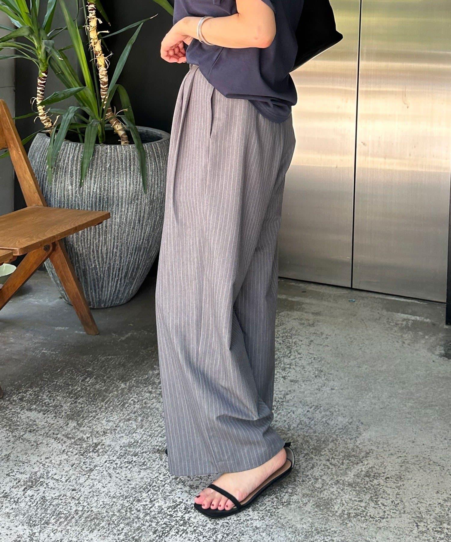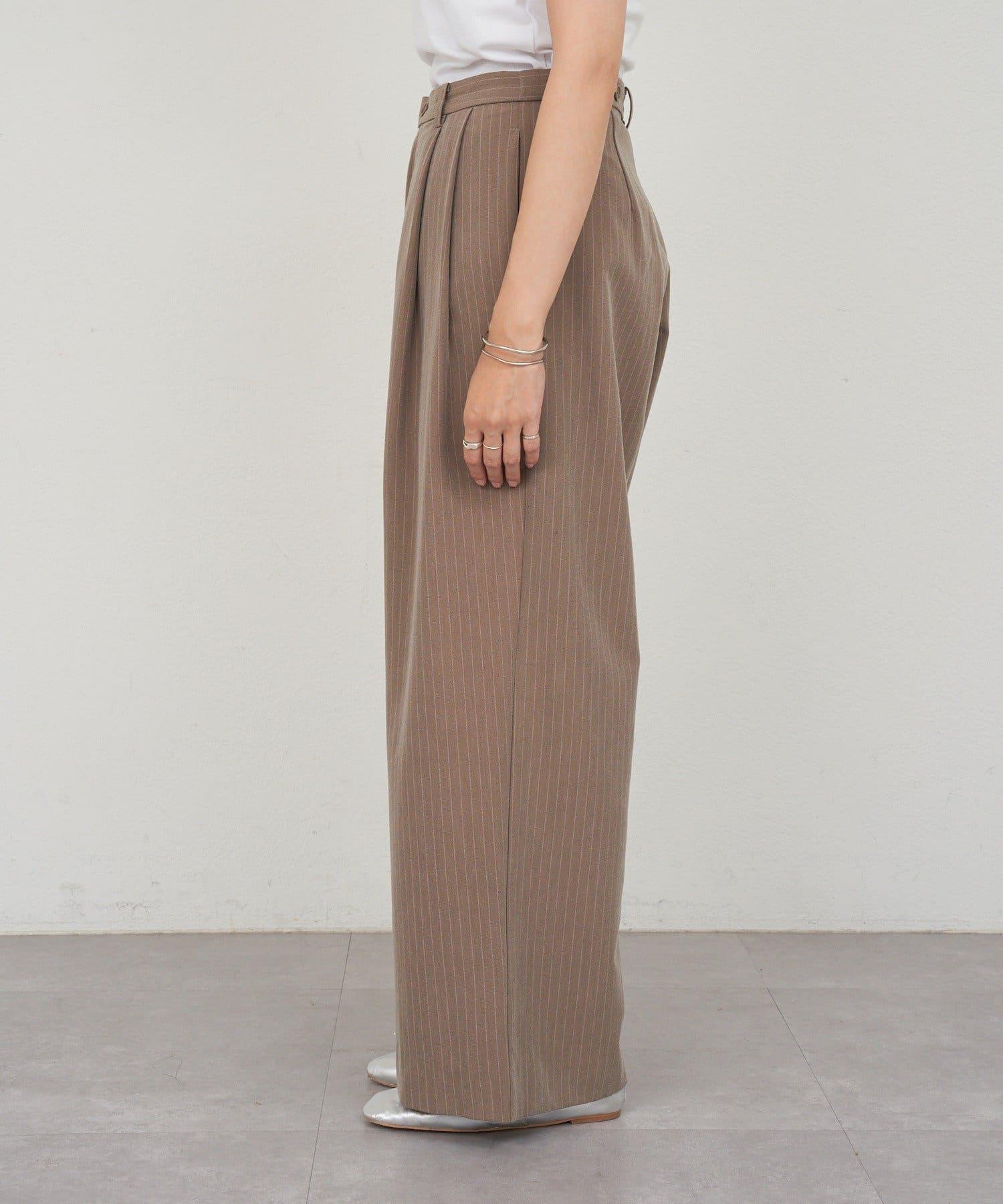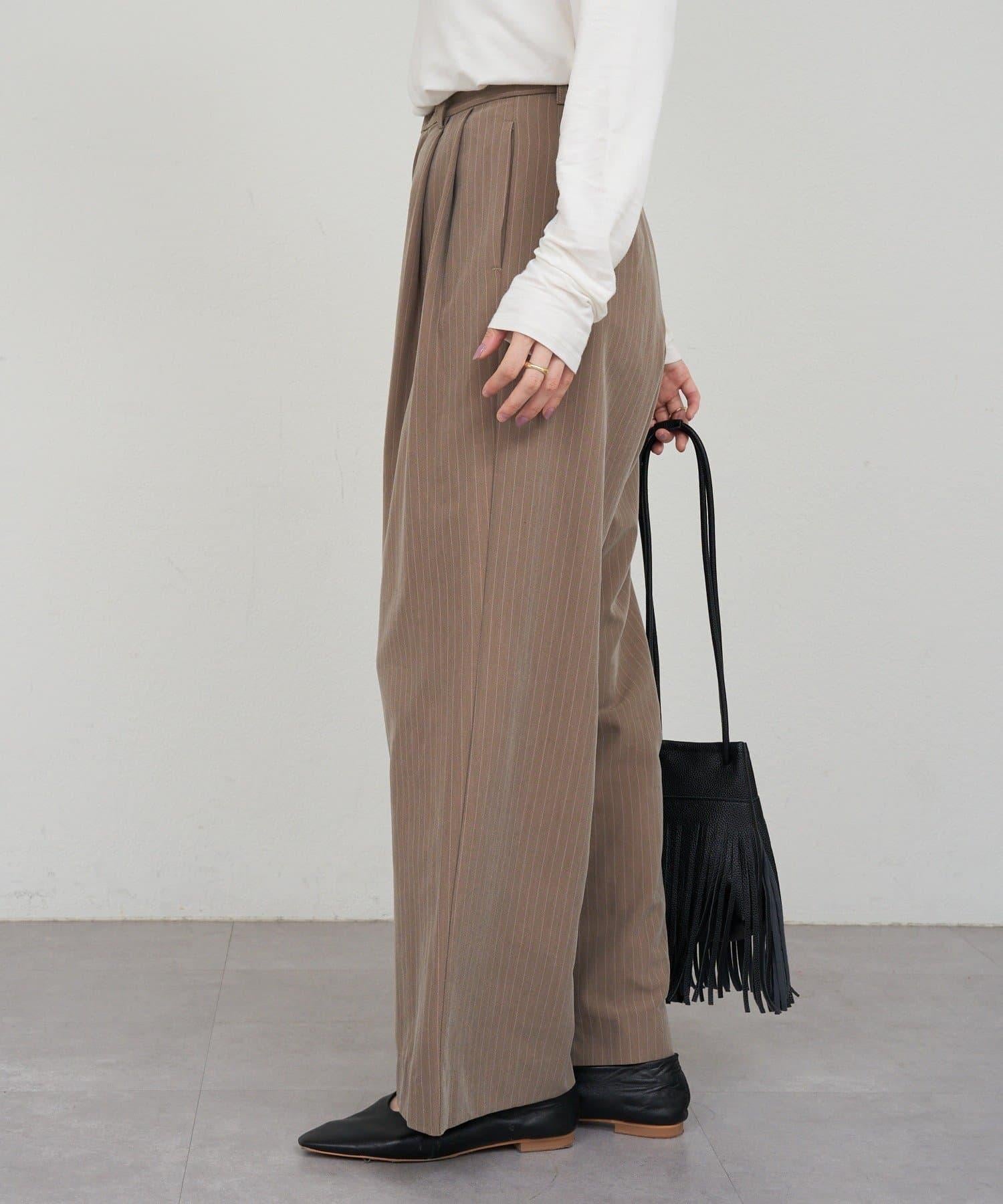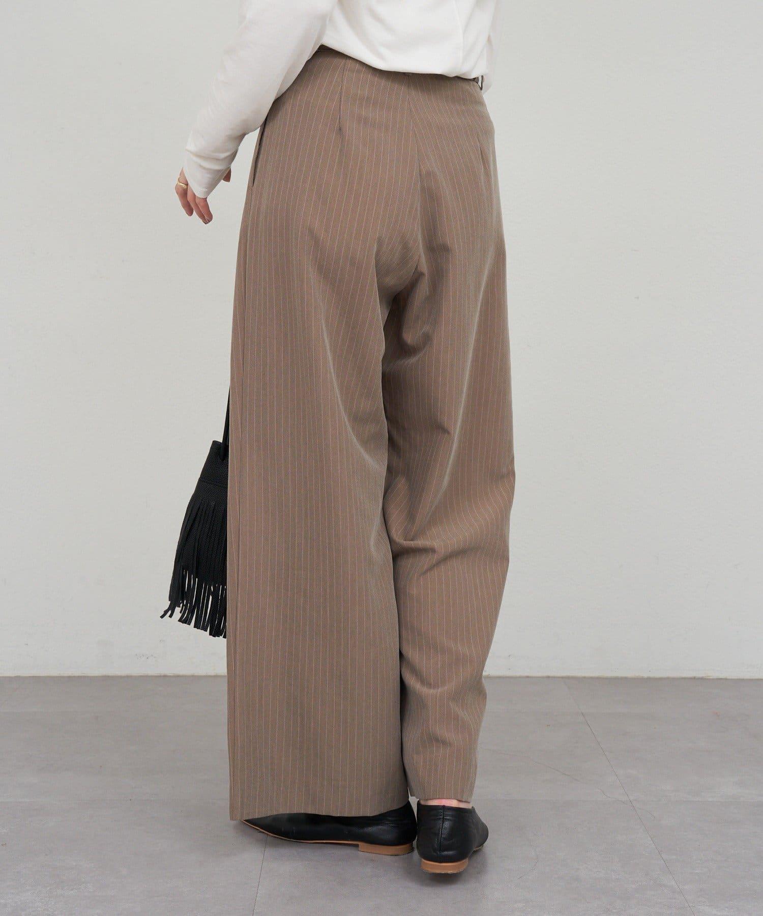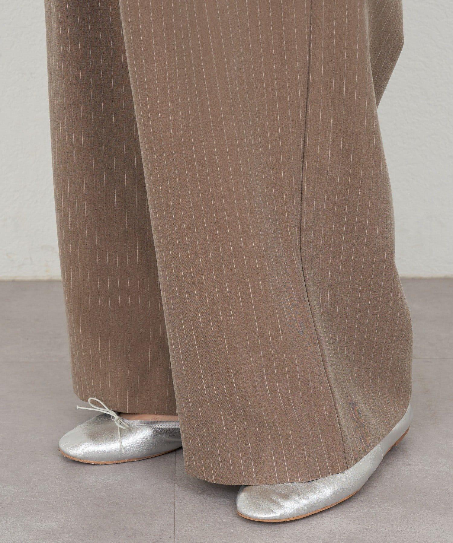 雙褶條紋寬腿褲