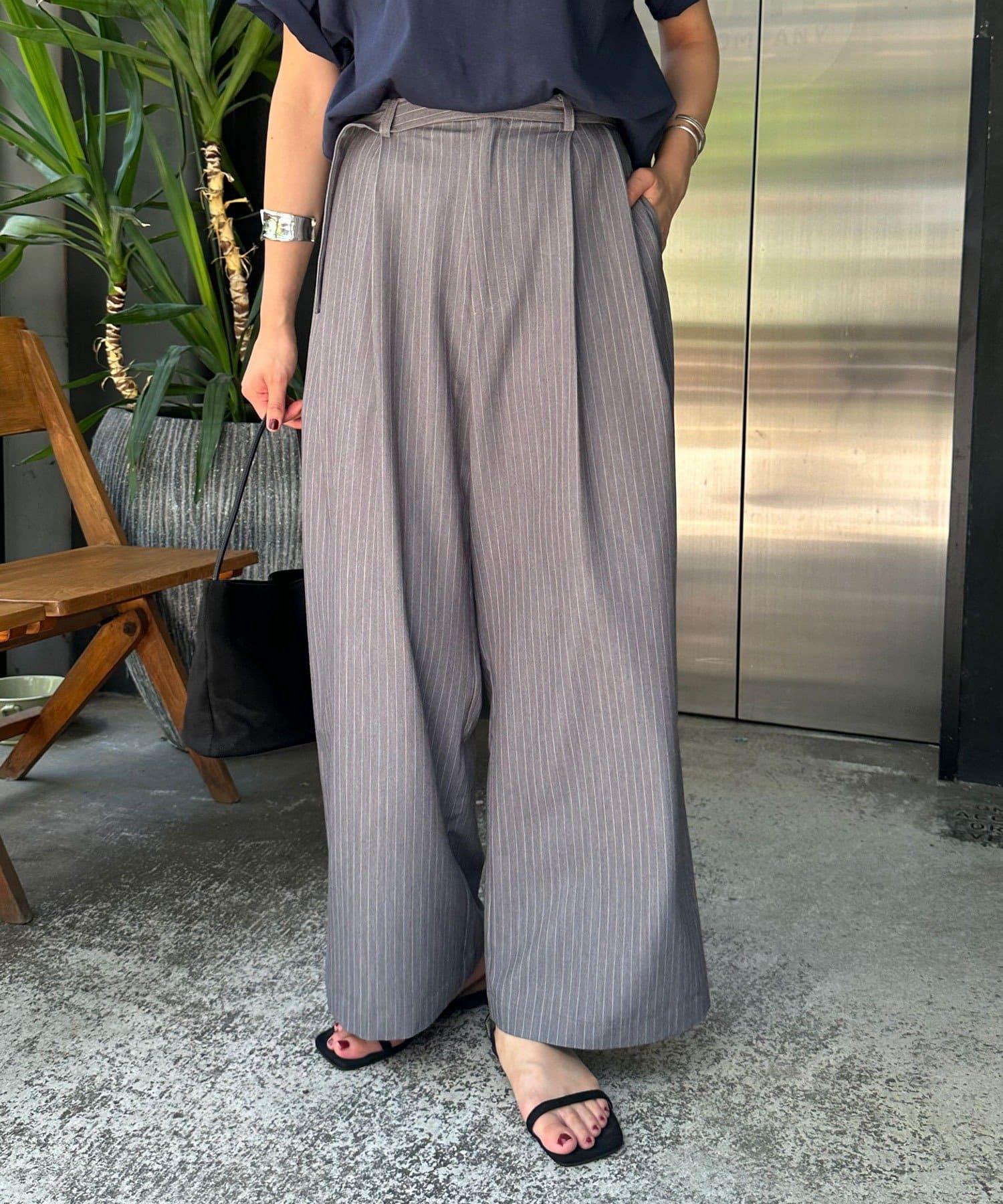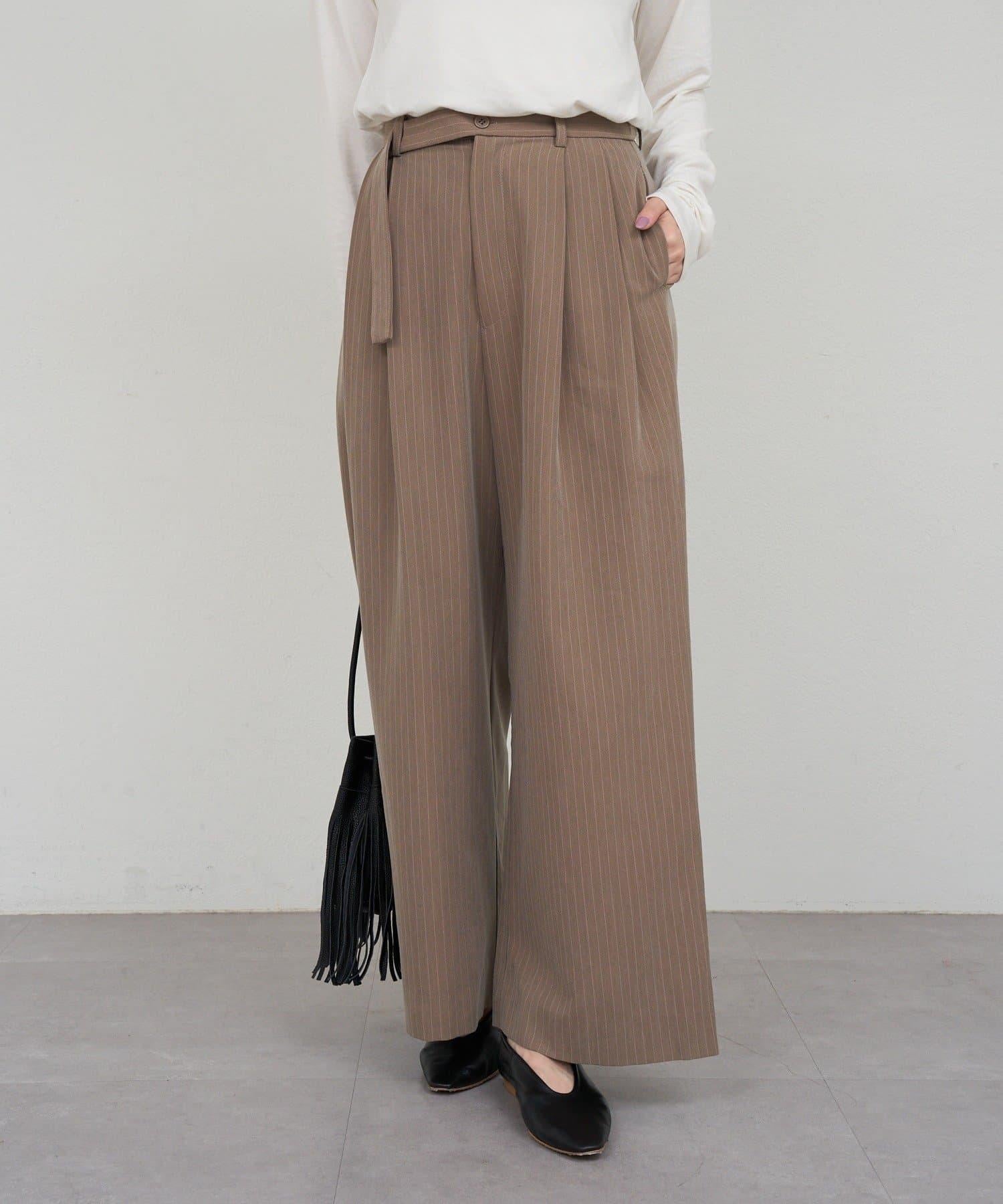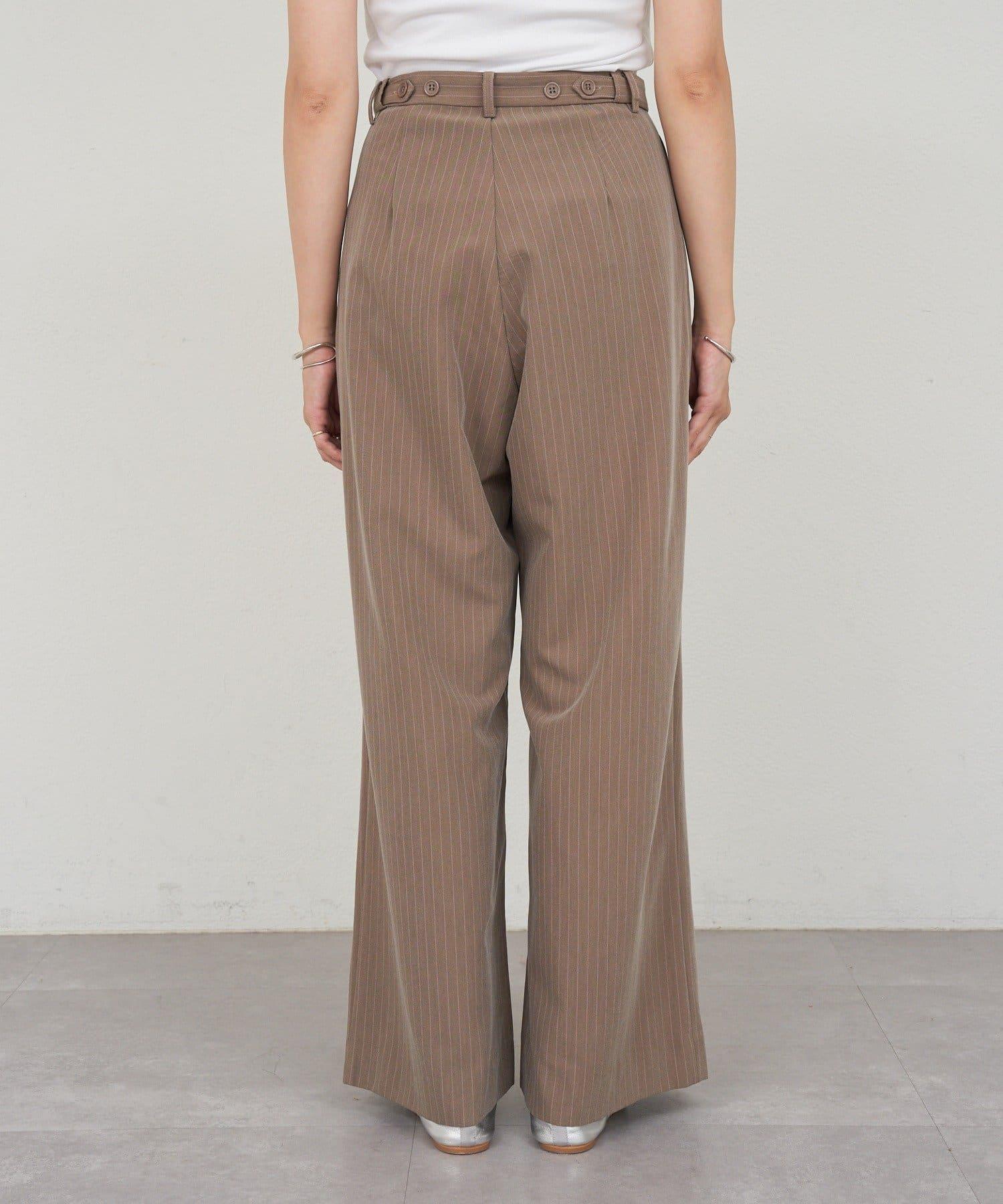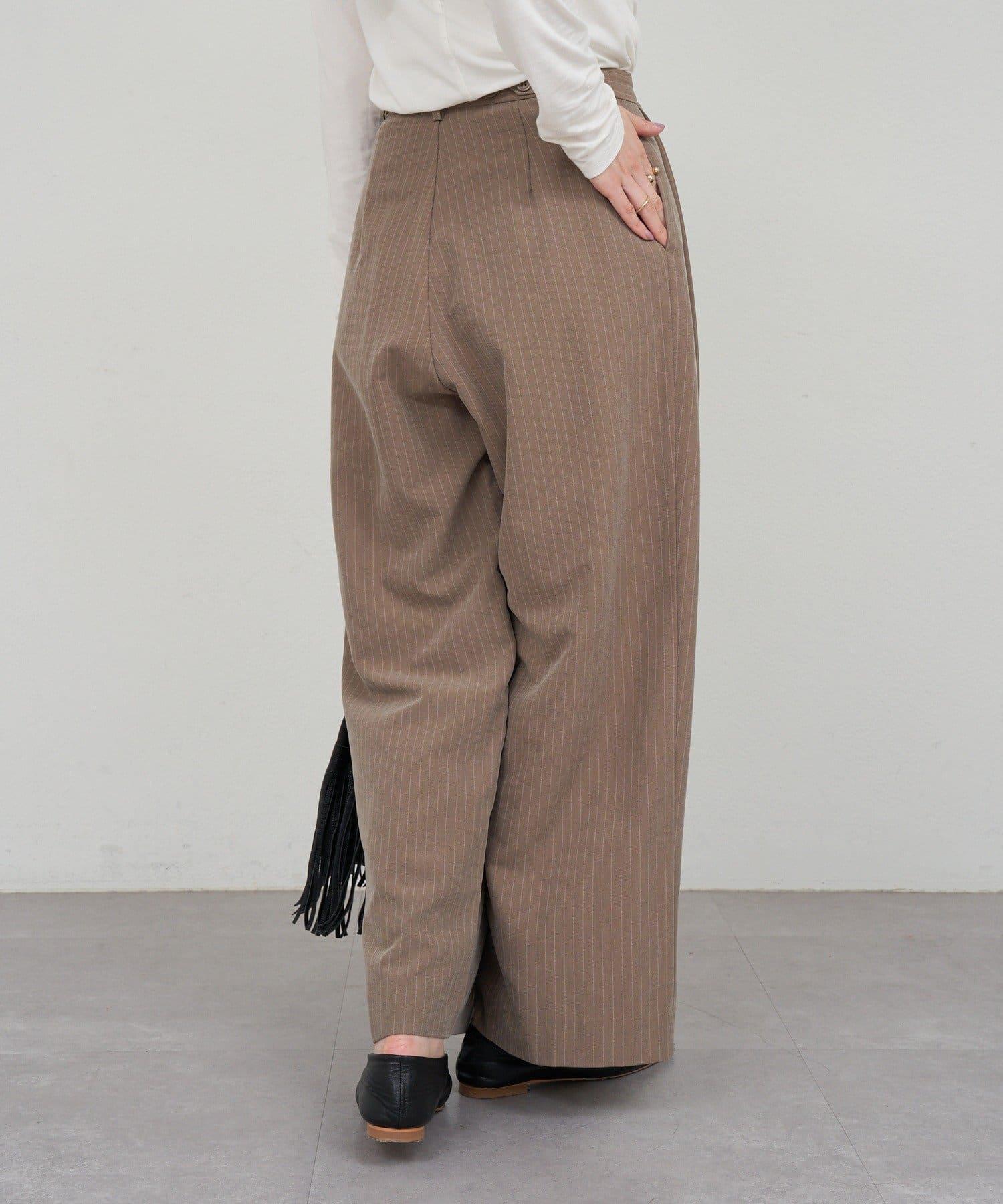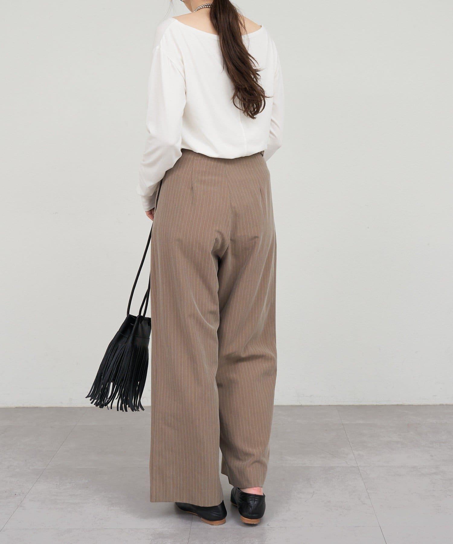 雙褶條紋寬腿褲