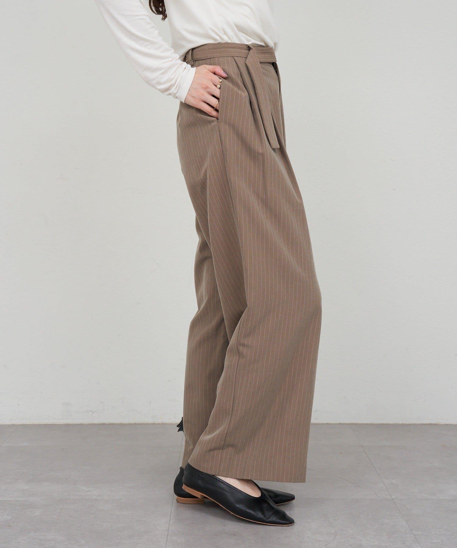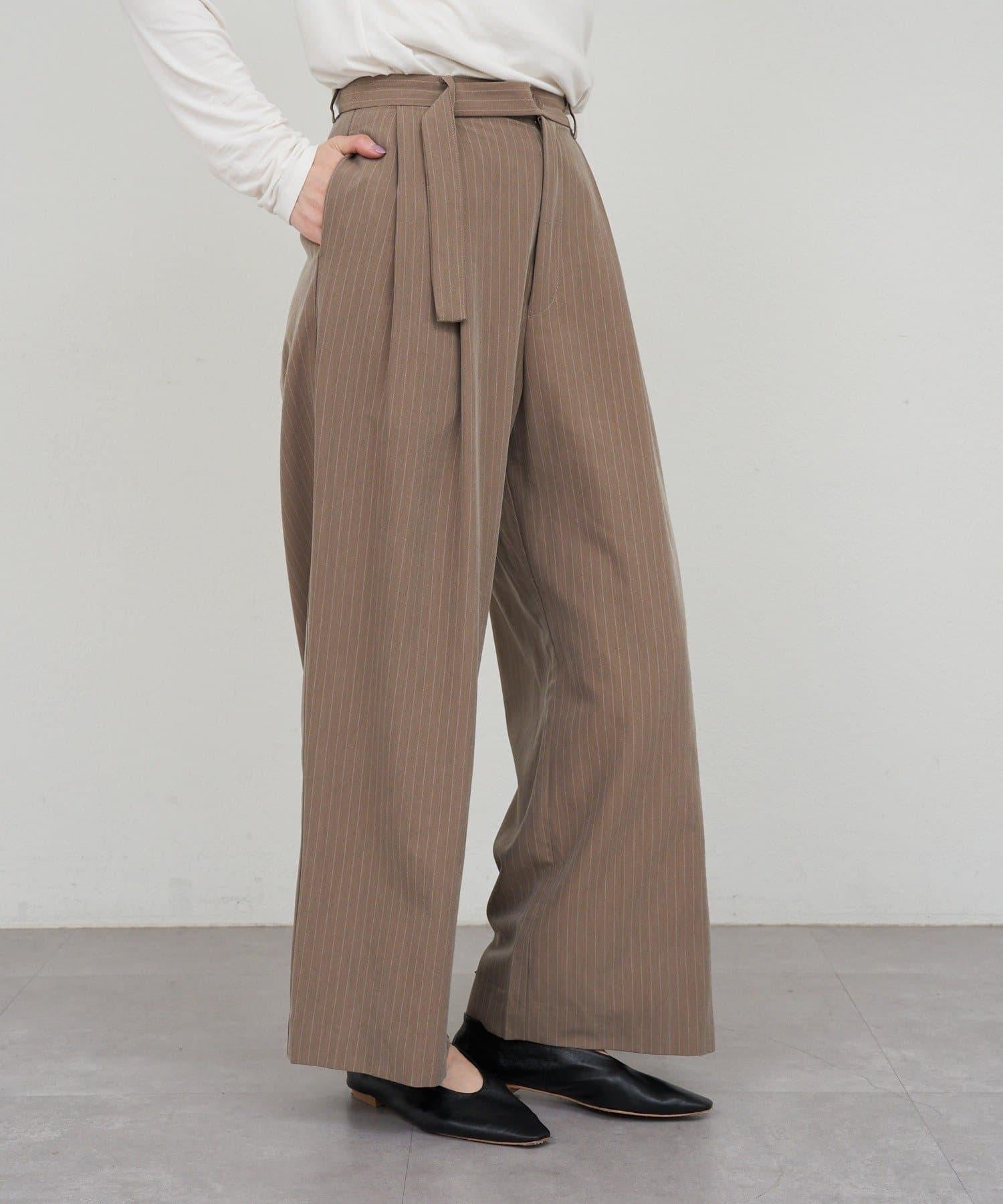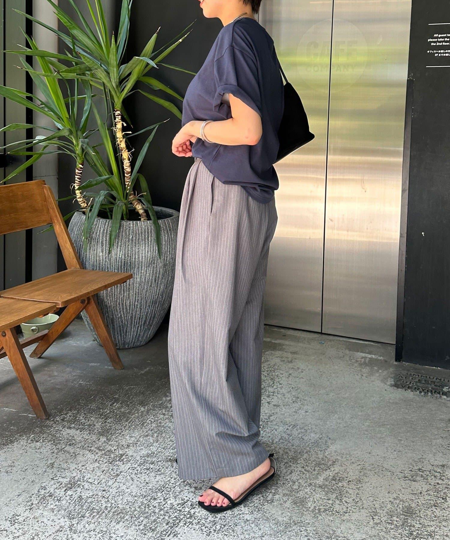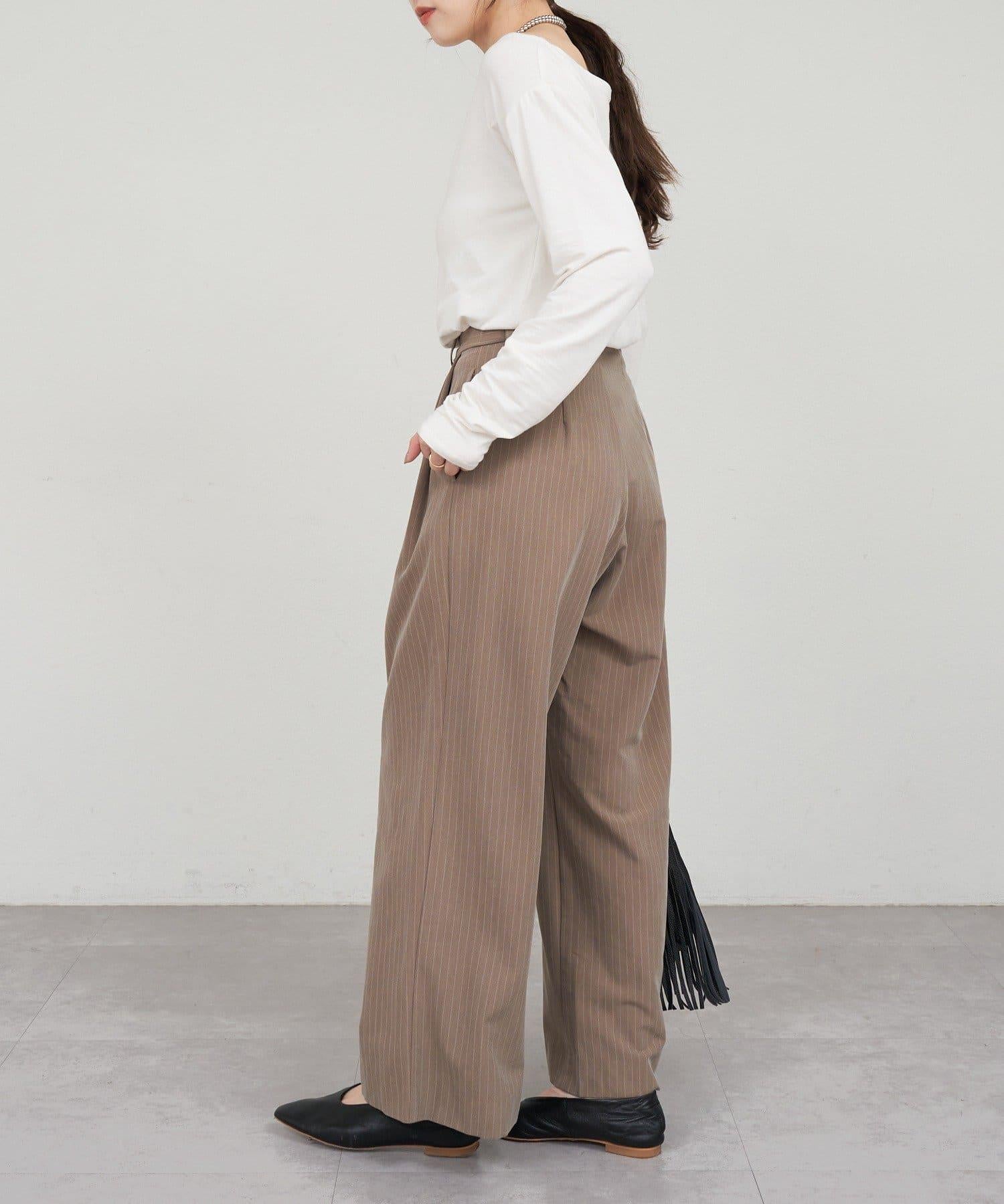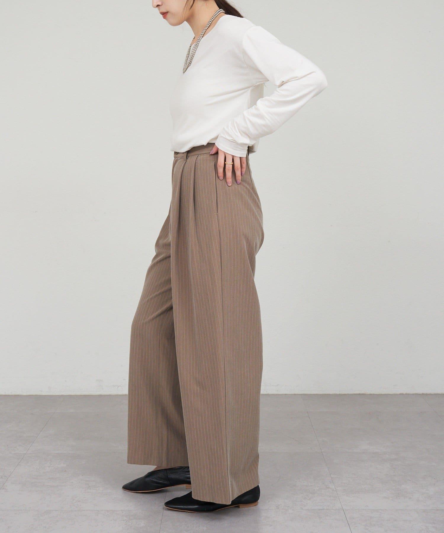 雙褶條紋寬腿褲