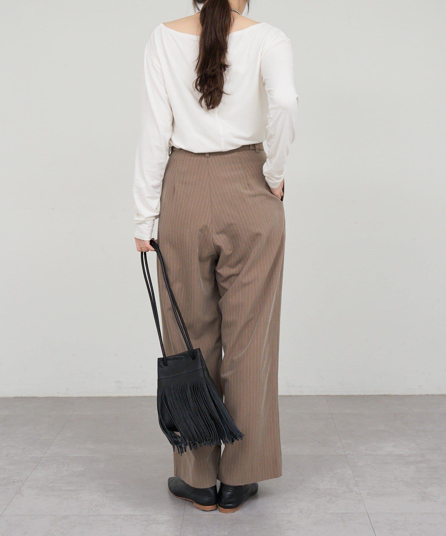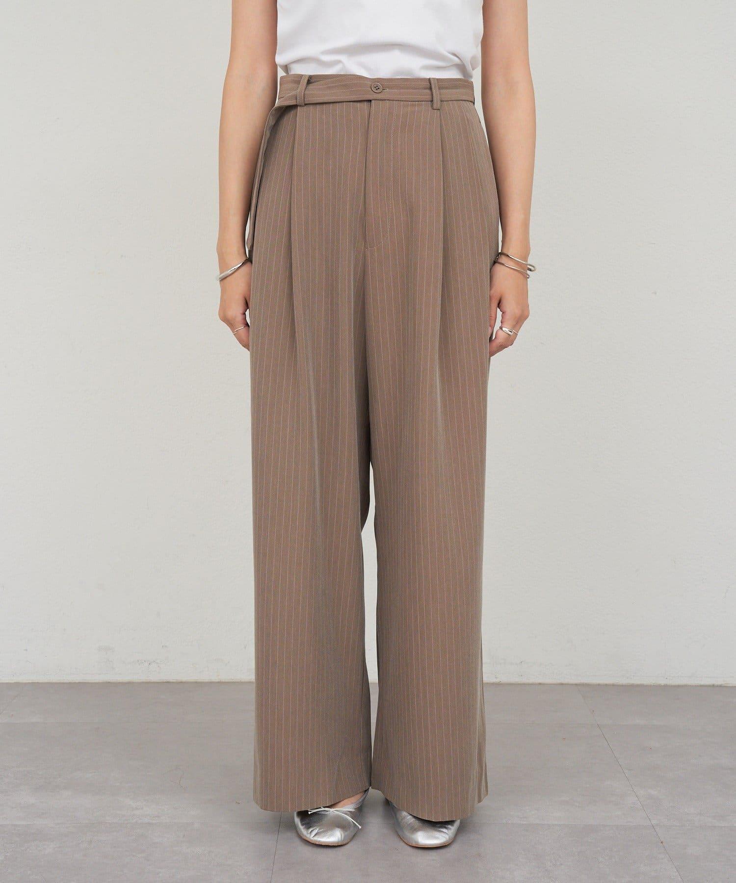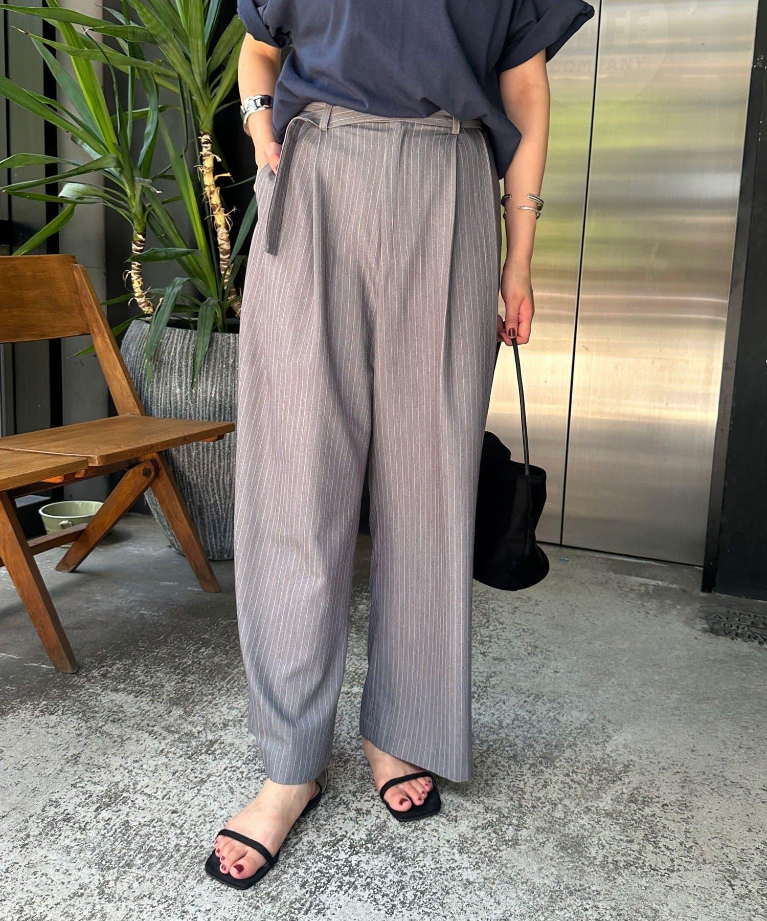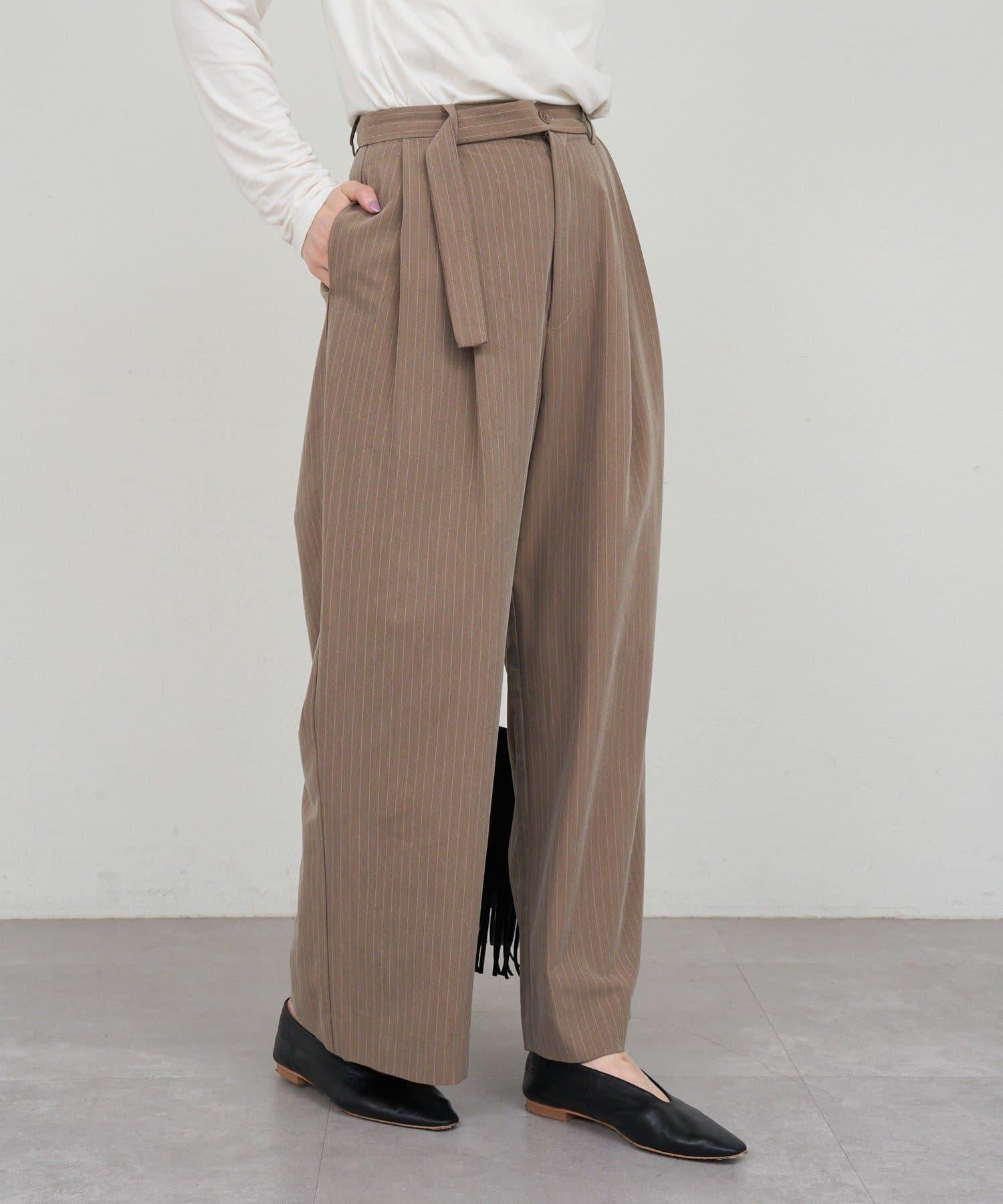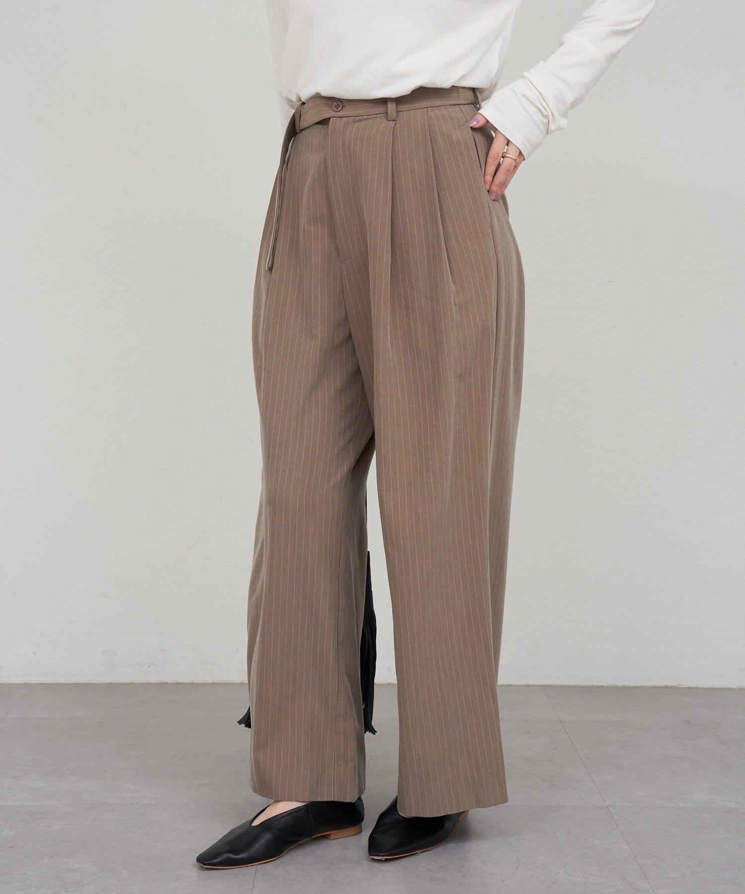 雙褶條紋寬腿褲